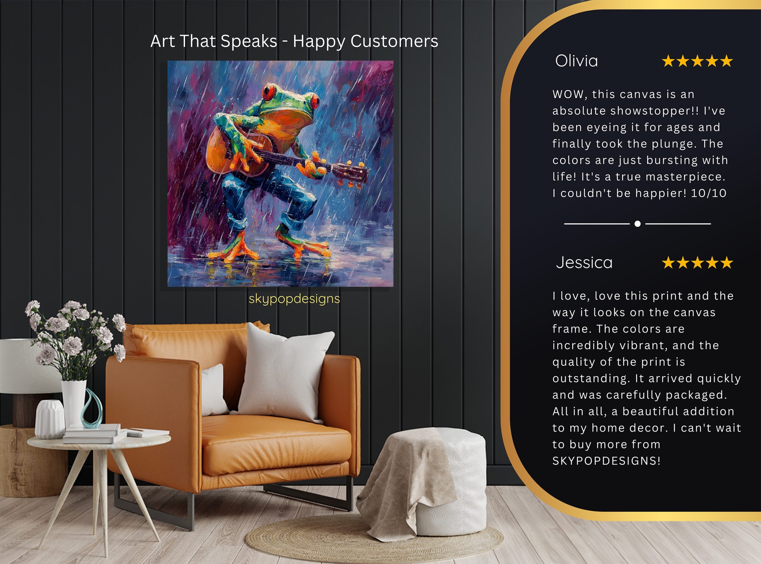 At SKYPOPDESIGNS, we specialize in high-quality canvas and poster prints designed to bring sophistication and style to your space. Please note that our designs are not created with 3D textures or as original oil, acrylic, or watercolor paintings; they are instead HD reproductions of original artwork. This approach allows us to offer these visually stunning pieces at competitive prices, ensuring you receive top-tier, maintenance-free art that’s easy to enjoy.