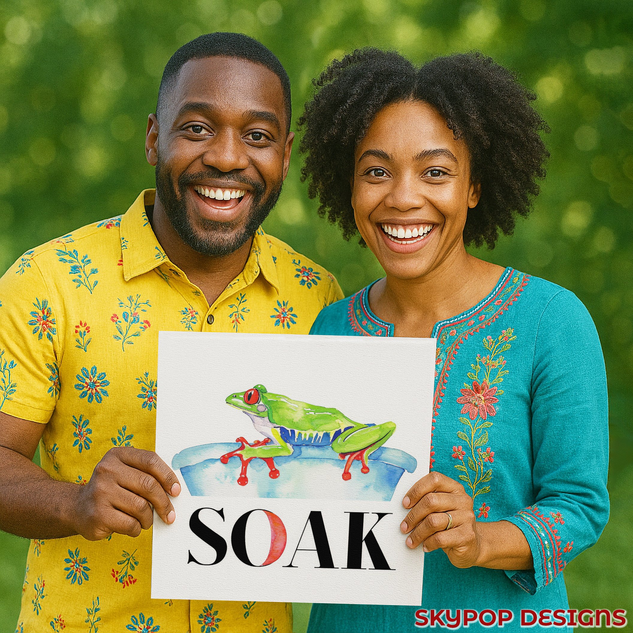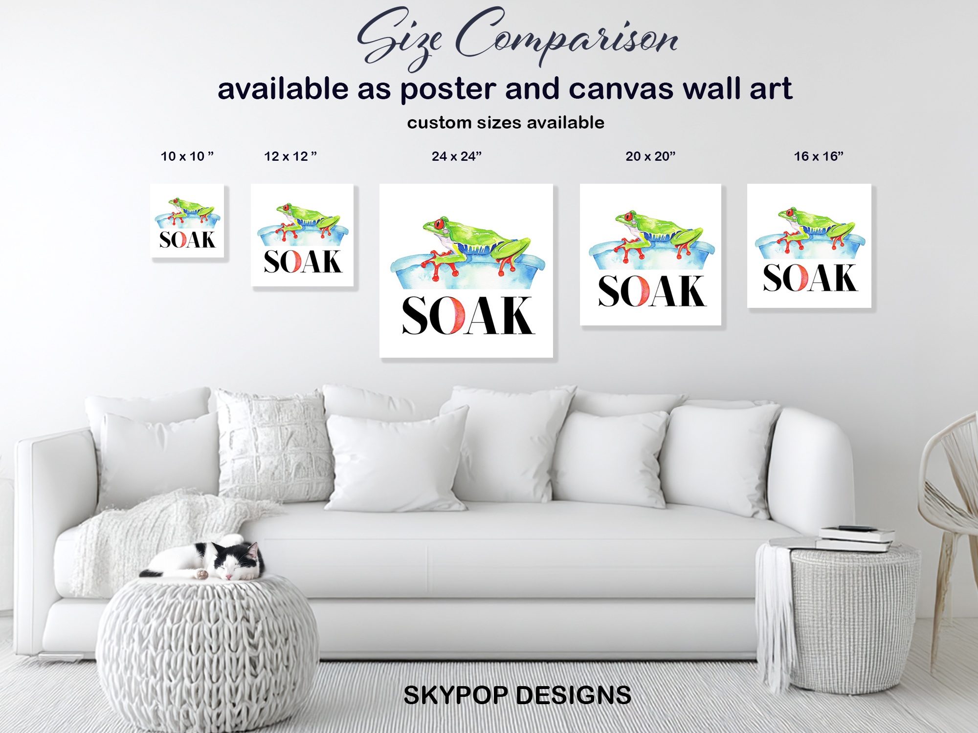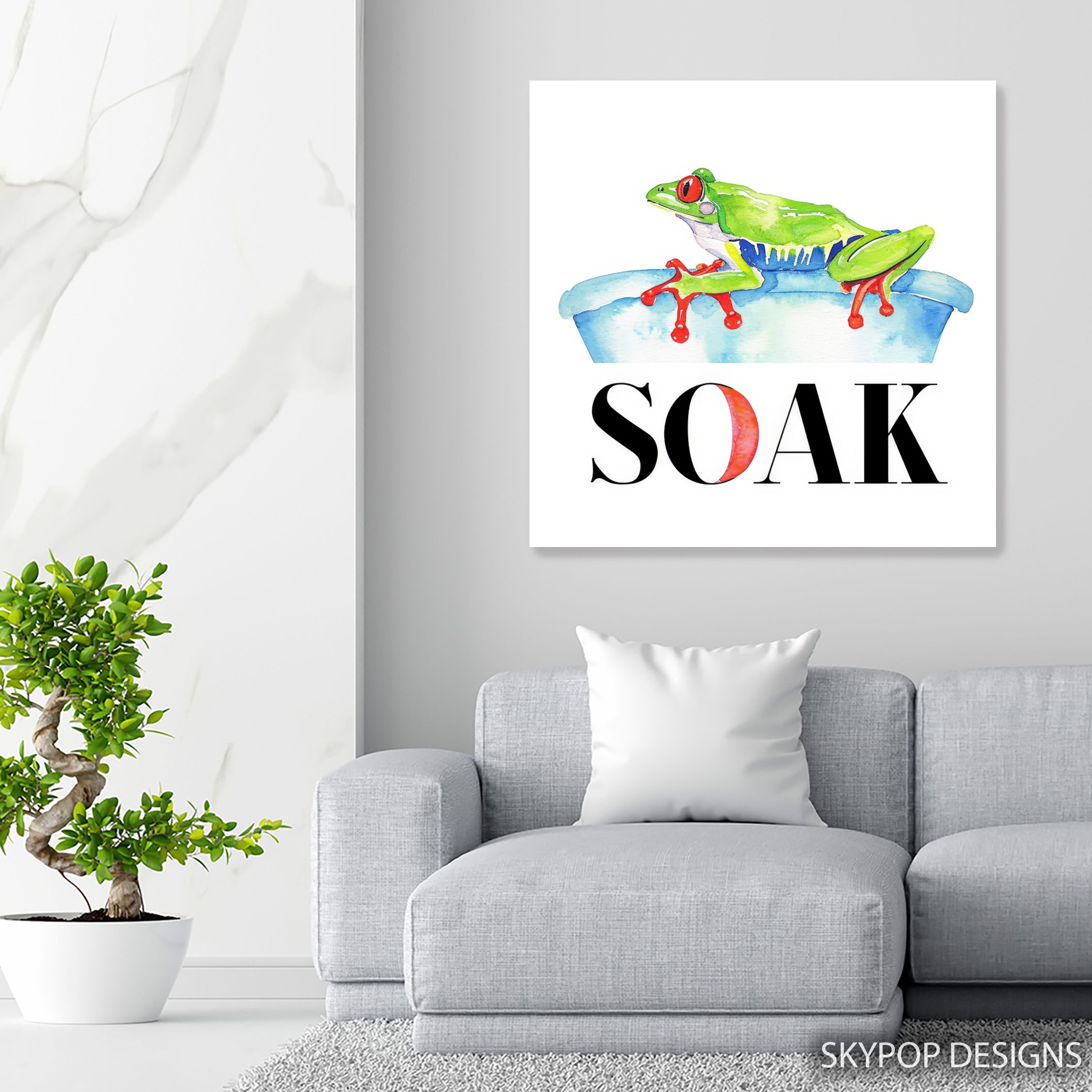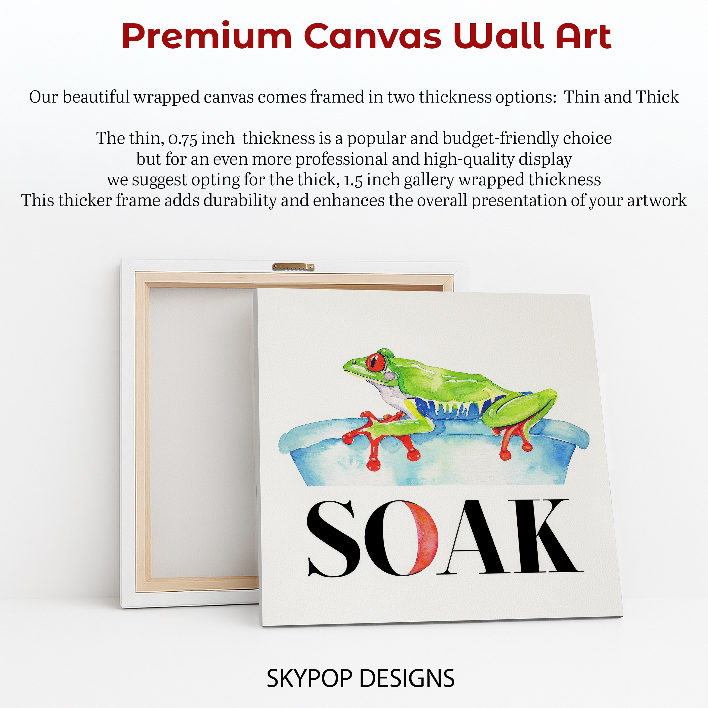 Keywords: Frog Art, Canvas Wall Art, Whimsical Decor, Animal Print, Nature Art, Bathroom Art, Living Room Decor, Bedroom Decor, Kitchen Poster, Green Art, Blue Art, Red Accents, Watercolor Art, Modern Art, Minimalist Decor, Contemporary Art, Frog Soak Art, Cute Animal Art, Quirky Home Decor, Unique Wall Art, Housewarming Gift, Birthday Gift, Holiday Gift, Relaxation Vibes, Playful Art, Frog Poster, Home Decor, Wall Decor, Art Print, Charming Art