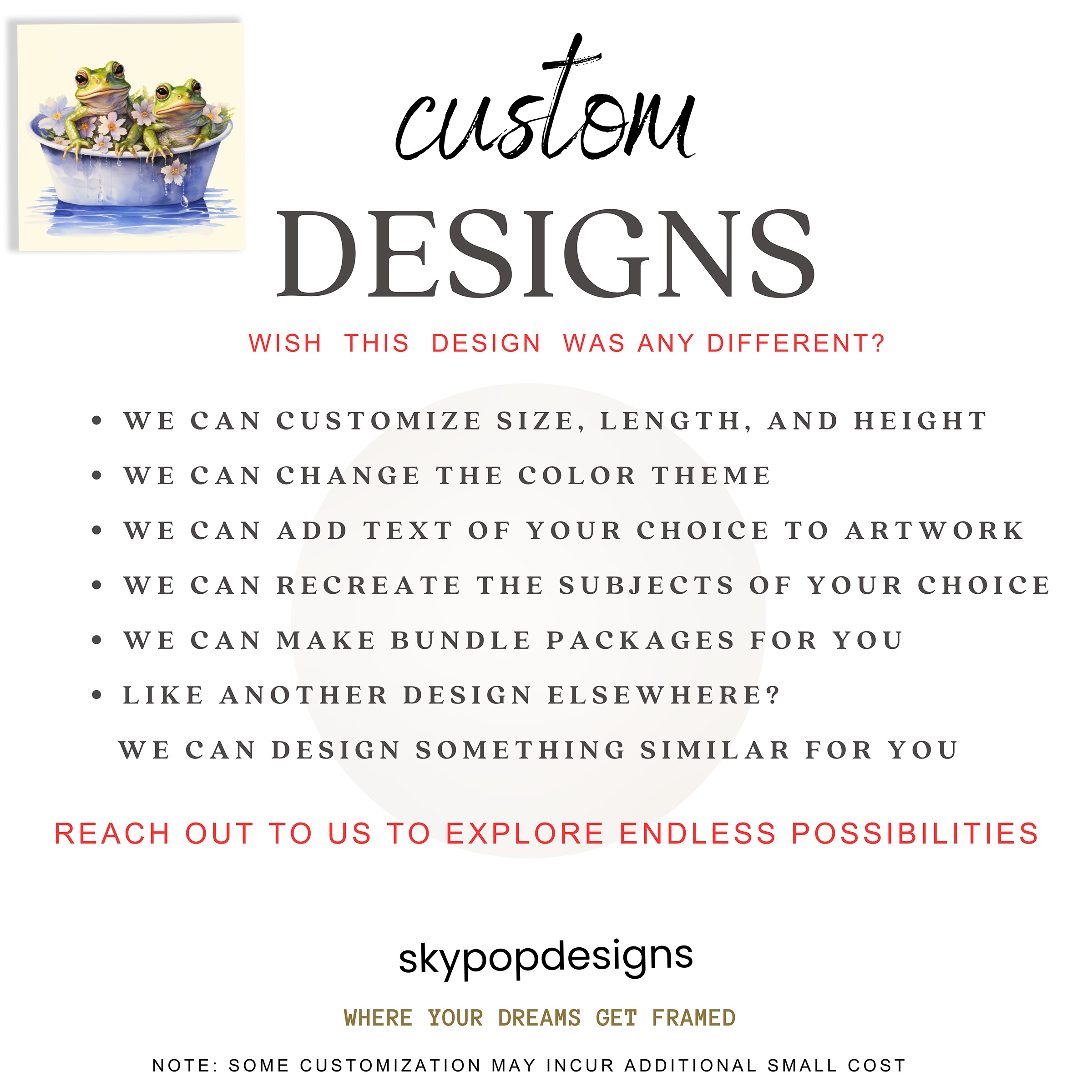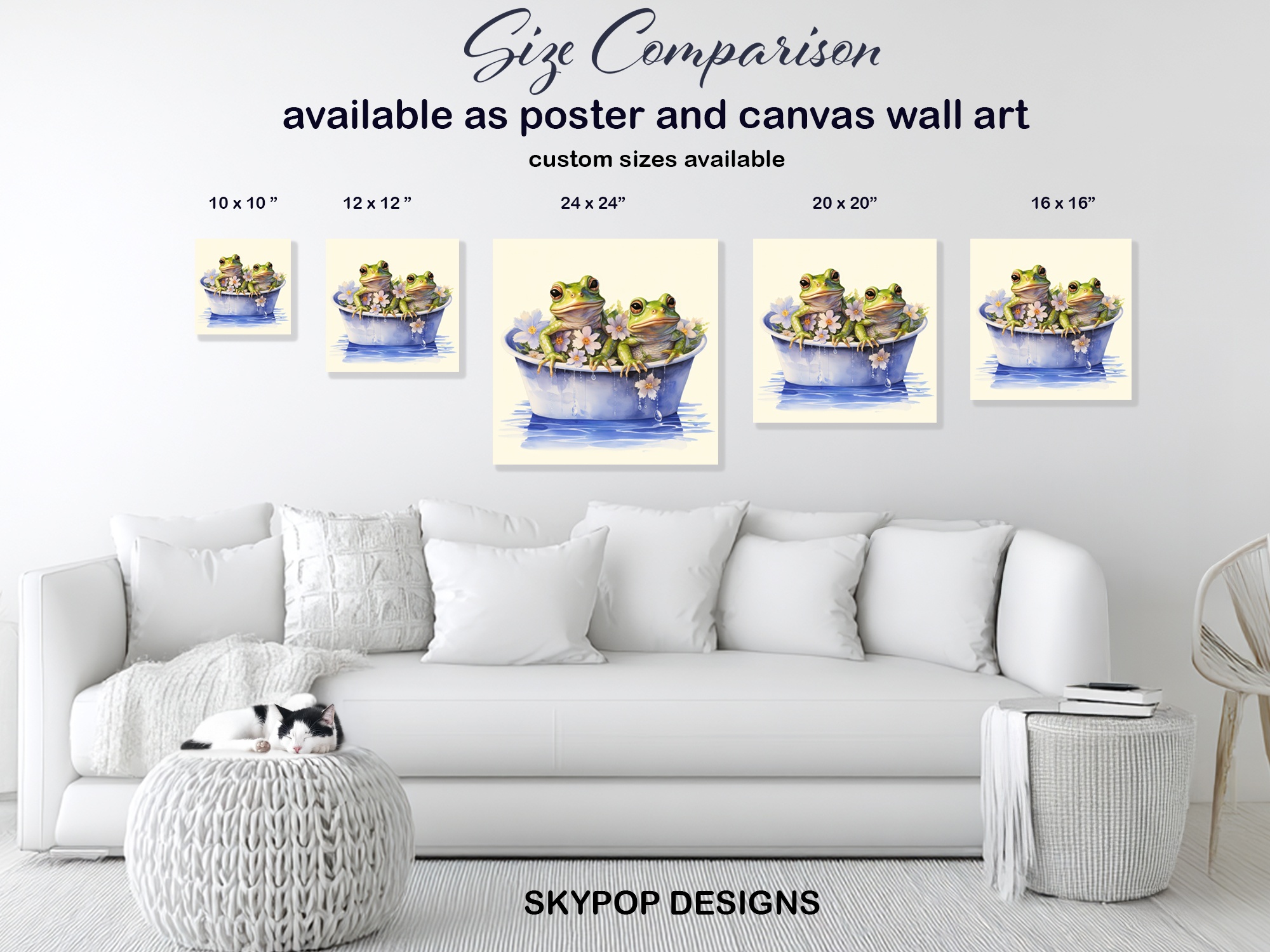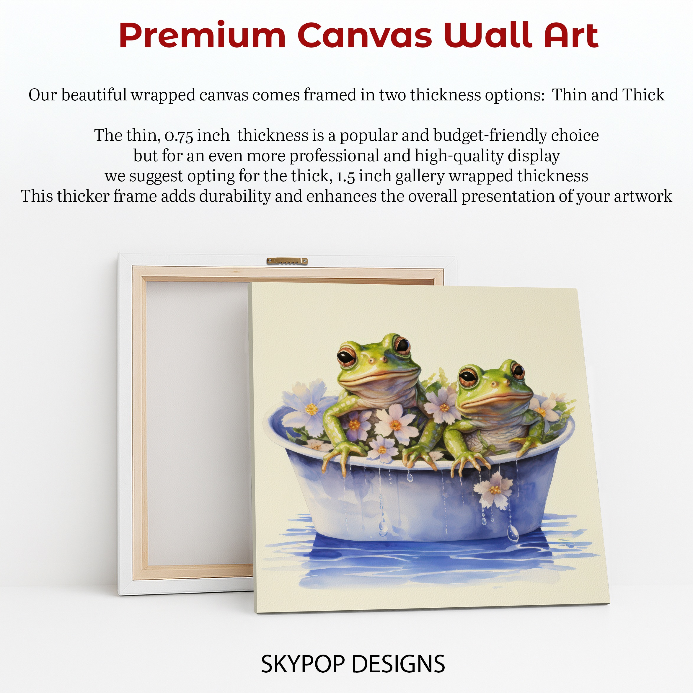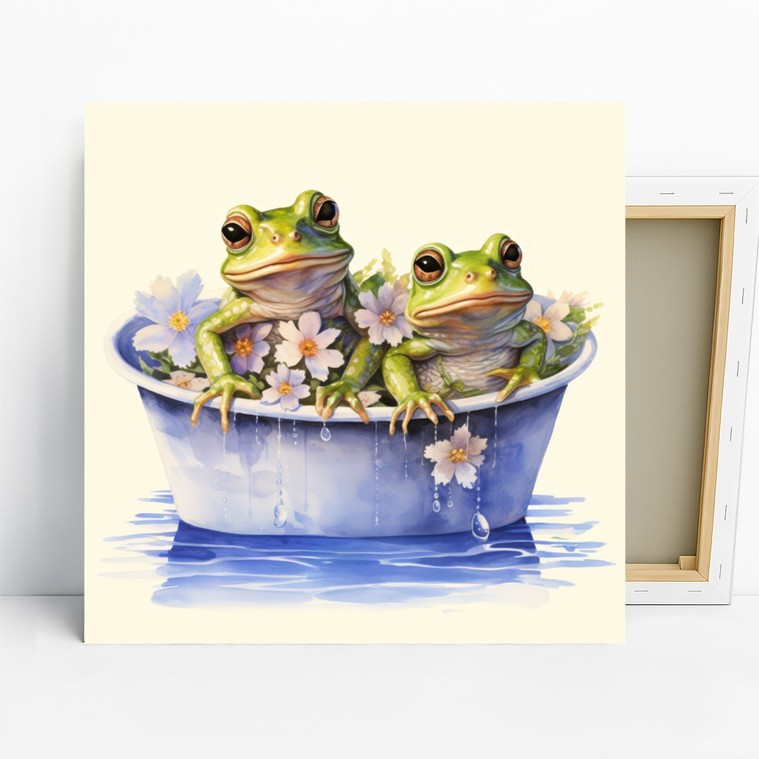 Keywords: Frog Wall Art, Canvas Print, Whimsical Art, Nature Art, Animal Art, Froggy Bath Time, Bohemian Decor, Contemporary Decor, Farmhouse Decor, Living Room Art, Bedroom Decor, Kids Room Art, Bathroom Art, Green Art, Blue Art, Multicolor Art, White Art, Frog Art, Watercolor Art, Playful Charm, Home Decor, Wall Decor, Gift for Her, Housewarming Gift, Birthday Gift, Holiday Gift, Relaxation Art, Joyful Art, Peaceful Atmosphere, Unique Artwork
