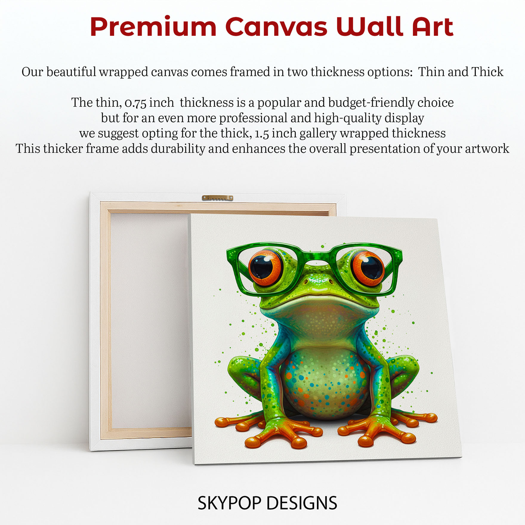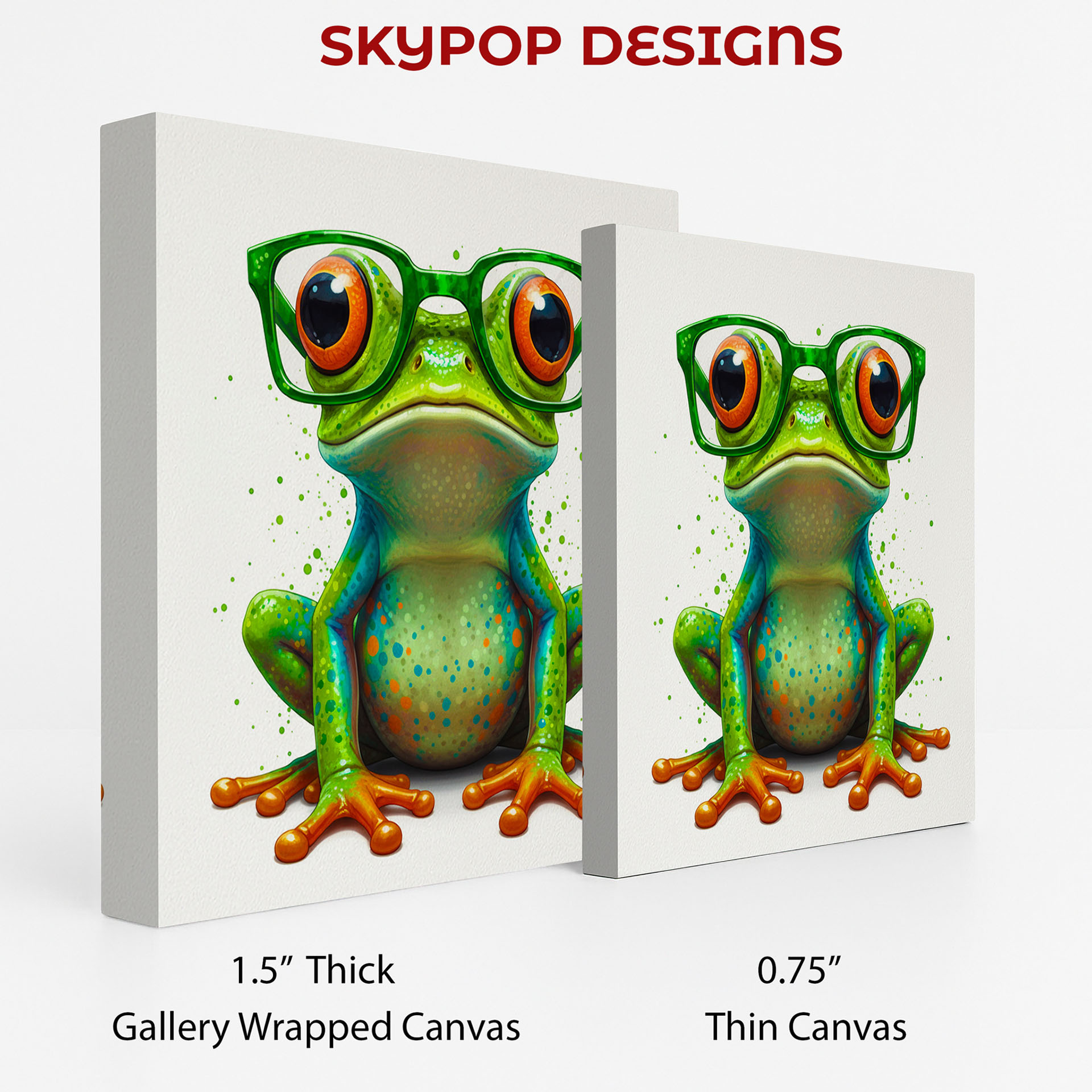 Add a touch of whimsy and charm with this vibrant frog canvas wall art, featuring a cool frog wearing stylish green glasses. This striking poster or canvas wall art is perfect for transforming any living room into a playful yet sophisticated space. The artwork’s contemporary feel makes it an ideal choice for modern decor, while its vibrant green and orange hues bring a fresh, energetic vibe. It’s a fantastic way to add personality to an office or a child’s room, sparking creativity and smiles. This animal art piece features a uniquely dressed frog, making it a captivating focal point that is sure to start conversations. The splash of green paint splatter adds an artistic and dynamic touch, enhancing its modern appeal. Ideal for bohemian enthusiasts seeking unique wall art or a coastal-themed room needing a splash of color. This poster or canvas wall art is a delightful way to express individuality and bring a sense of lighthearted fun into your home. High-quality printing ensures the rich colors and intricate details of the frog’s expressions are captured perfectly. Perfect for gifting to animal lovers or as a unique housewarming present to brighten someone’s day. Elevate your home decor with this fun, eye-catching frog artwork and bring a bit of whimsical wisdom to your walls. Celebrate nature with a playful twist and make this adorable frog a part of your curated wall art collection. This frog canvas wall art is a unique addition for anyone looking for memorable and cheerful home decor.