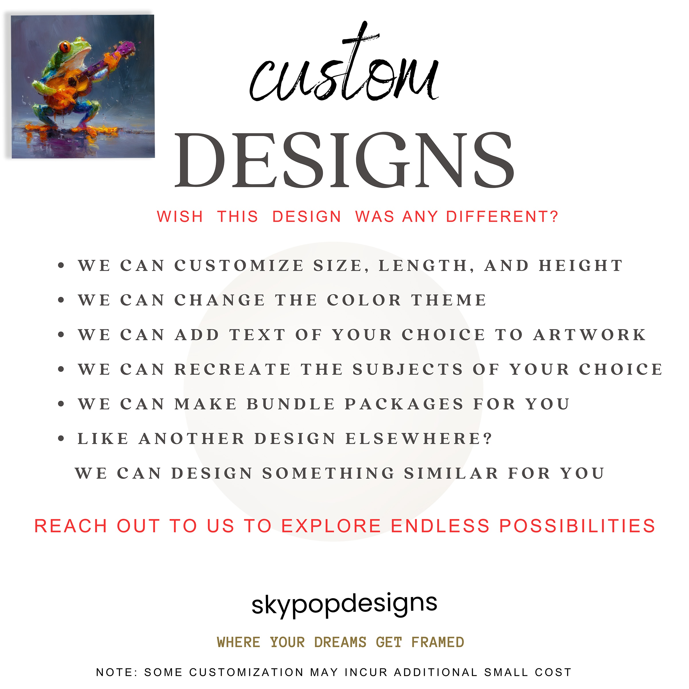 At SKYPOPDESIGNS, we specialize in high-quality canvas and poster prints designed to bring sophistication and style to your space. Please note that our designs are not created with 3D textures or as original oil, acrylic, or watercolor paintings; they are instead HD reproductions of original artwork. This approach allows us to offer these visually stunning pieces at competitive prices, ensuring you receive top-tier, maintenance-free art that’s easy to enjoy.