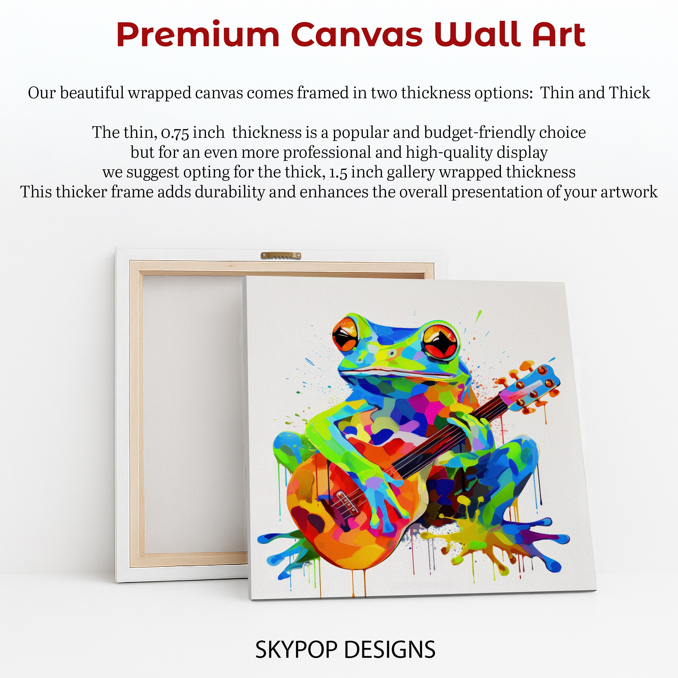 Elevate your space with this vibrant frog canvas wall art, featuring a whimsical frog playing a guitar in a pop art style. This striking poster is perfect for transforming any room into a lively focal point. The bold colors and dynamic splatters of paint create an energetic and captivating piece that adds personality to your walls.ideal for modern living rooms, eclectic bedrooms, or creative offices, this artwork is sure to spark joy and conversation. The playful depiction of the frog and its musical instrument brings a cheerful mood, making it excellent wall decor for those who appreciate unique and expressive art. This canvas wall art is not just a decoration; it’s a mood enhancer, using a symphony of colors to inspire happiness and creativity. It’s a fantastic gift for music lovers, art collectors, or anyone looking to add a splash of color to their home decor. Whether you choose it as a print or a canvas, its high-quality finish ensures the vibrant colors and intricate details pop. This versatile piece complements bohemian and contemporary decor styles flawlessly. Amp up your interior design with this delightful musical frog artwork today.