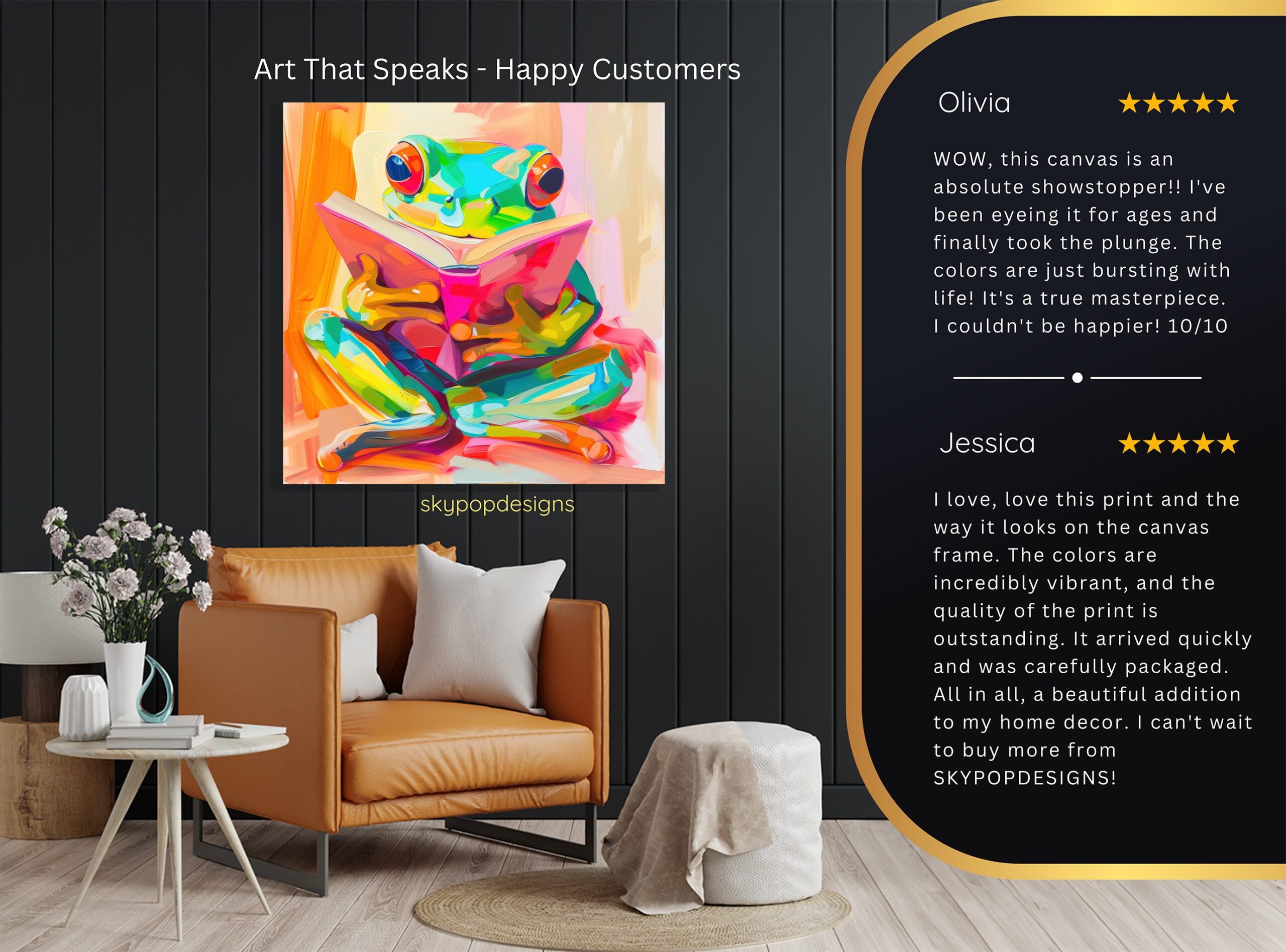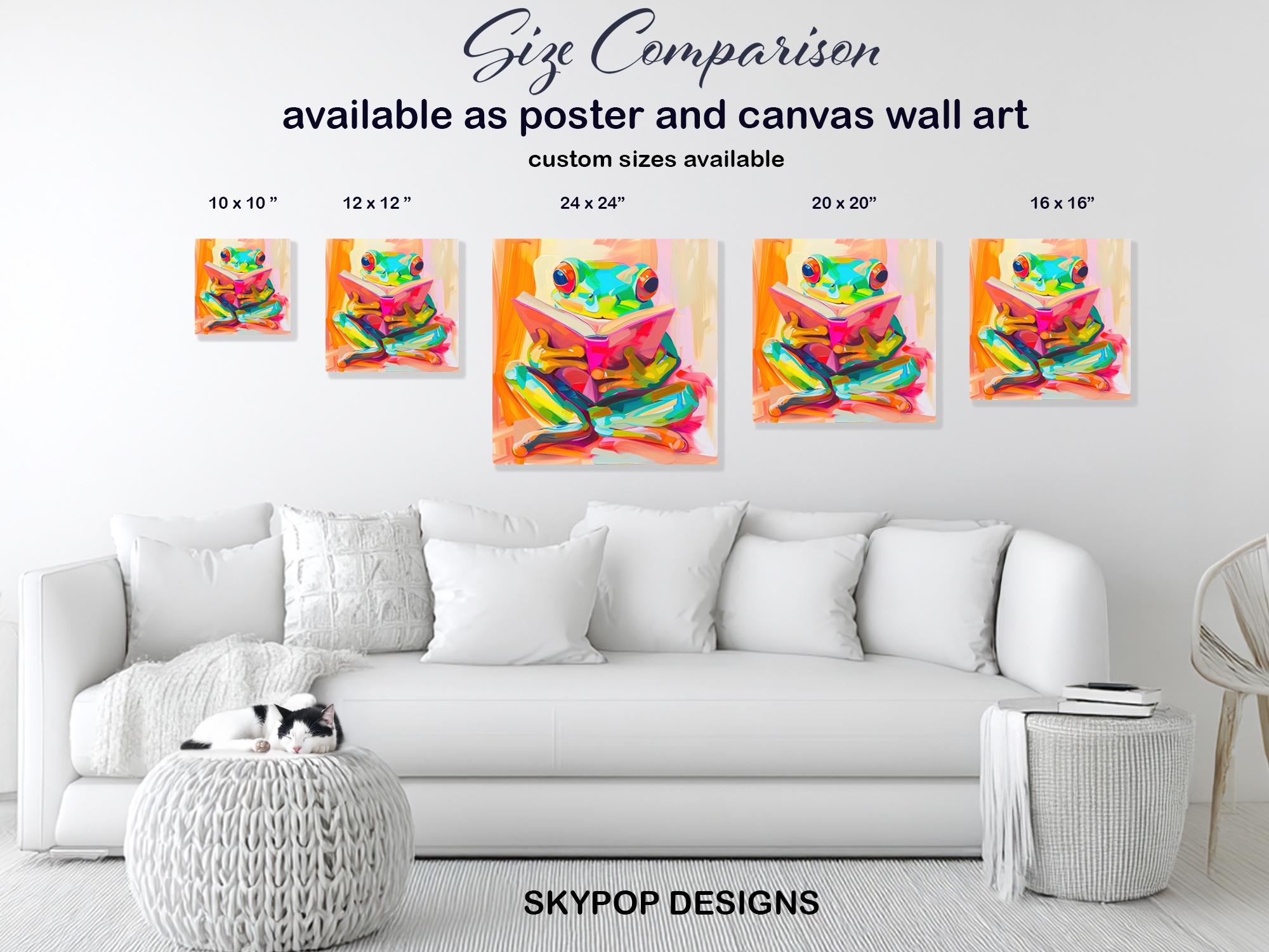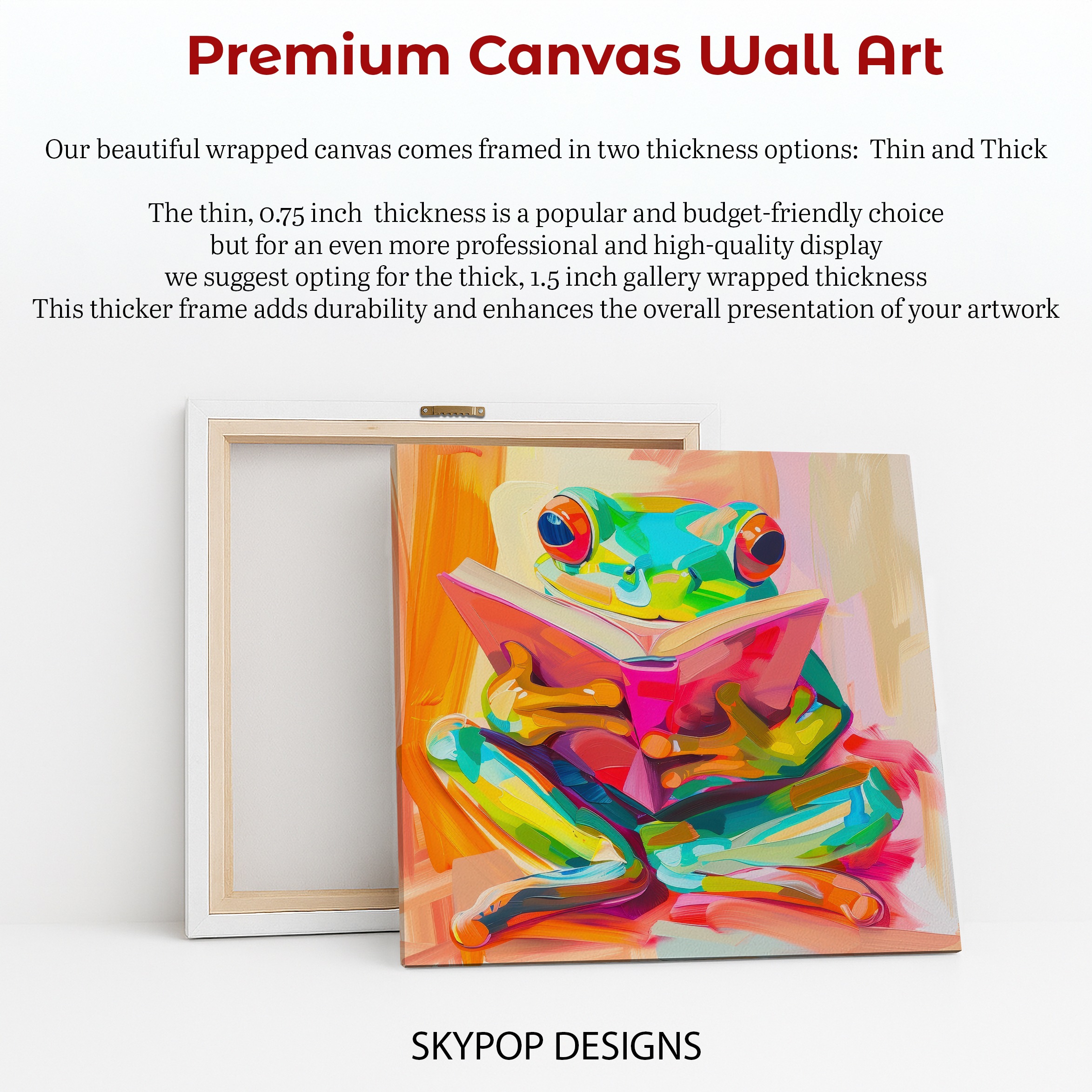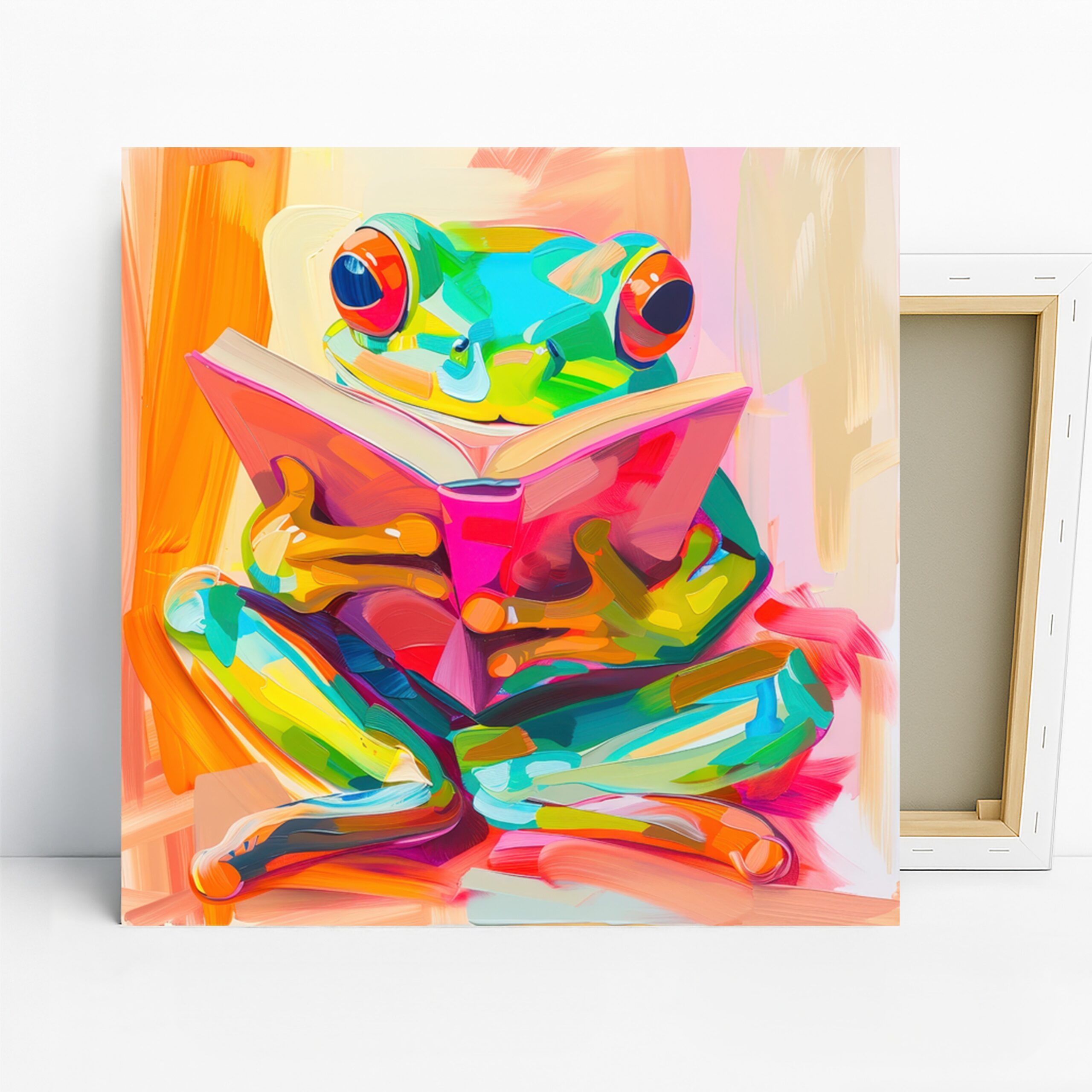 Keywords: Frog Art, Reading Frog, Canvas Wall Art, Living Room Decor, Children’s Room Art, Bedroom Wall Decor, Office Art, Bohemian Decor, Contemporary Art, Modern Decor, Impressionism Art, Whimsical Art, Animal Art, Multicolor Art, Orange Art, Pink Art, Green Art, Colorful Frog, Wall Poster, Home Decor, Unique Wall Art, Nursery Decor, Book Lovers Gift, Art Enthusiast Gift, Housewarming Gift, Birthday Gift, Holiday Gift, Nature Art, Vibrant Colors, Textured Art