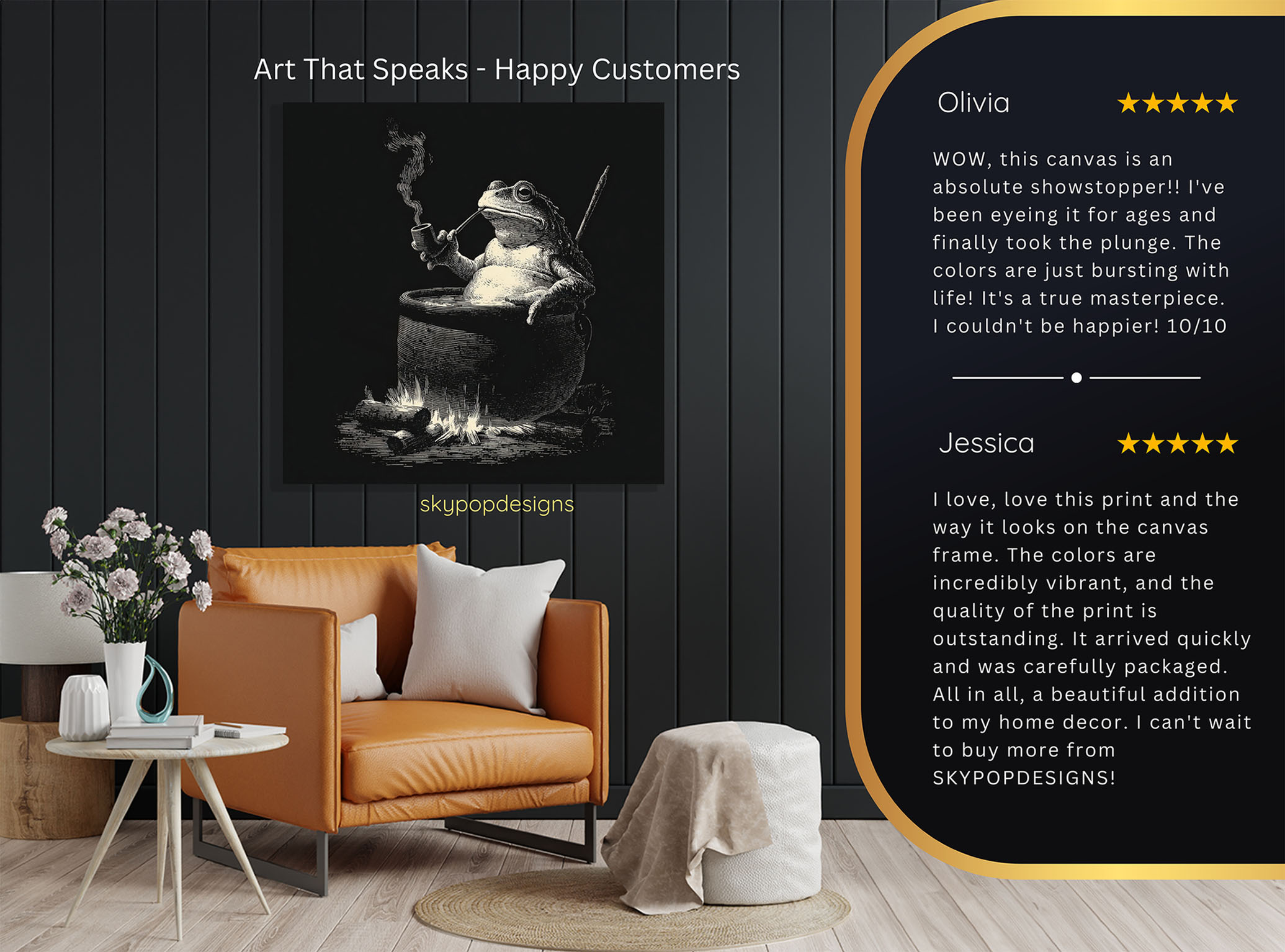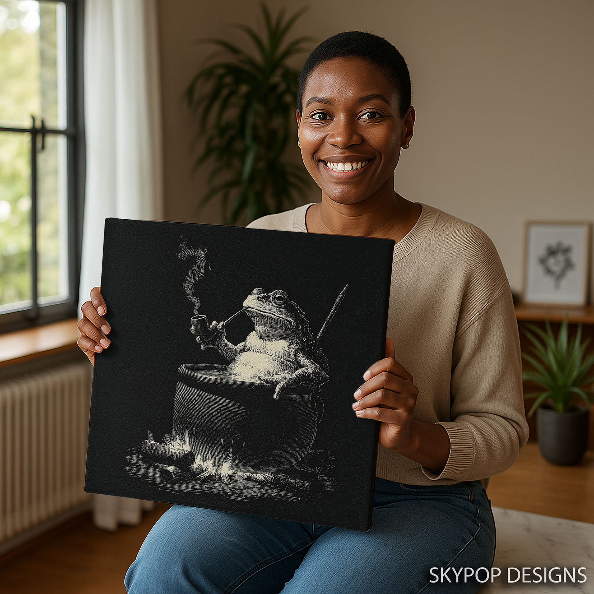 Transform your space with this captivating frog canvas wall art, featuring a whimsical frog enjoying a pipe in a vintage style. This striking poster or canvas wall art is perfect for adding a unique touch to your living room decor or personalizing your office space. The classic black and white palette with earthy brown tones creates a sophisticated yet playful atmosphere, ideal for bohemian or eclectic decor styles. This animal art piece brings personality and intrigue to any entryway or game room, sparking conversations and smiles. The retro aesthetic of this artwork makes it a stand-out choice for vintage lovers and those who appreciate quirky art. High-quality printing ensures the intricate details of the frog and its surroundings are beautifully rendered, making this poster a true statement piece. Whether you’re looking for a distinctive addition to your wall art collection or a memorable gift, this frog canvas wall art delivers. It adds a charming and unexpected element to modern homes, celebrating individuality and artistic expression. Elevate your home’s character with this unique artwork that blends retro charm with imaginative storytelling today. This versatile piece is ideal for creating a focal point in any room, bringing a touch of unexpected delight to your everyday.