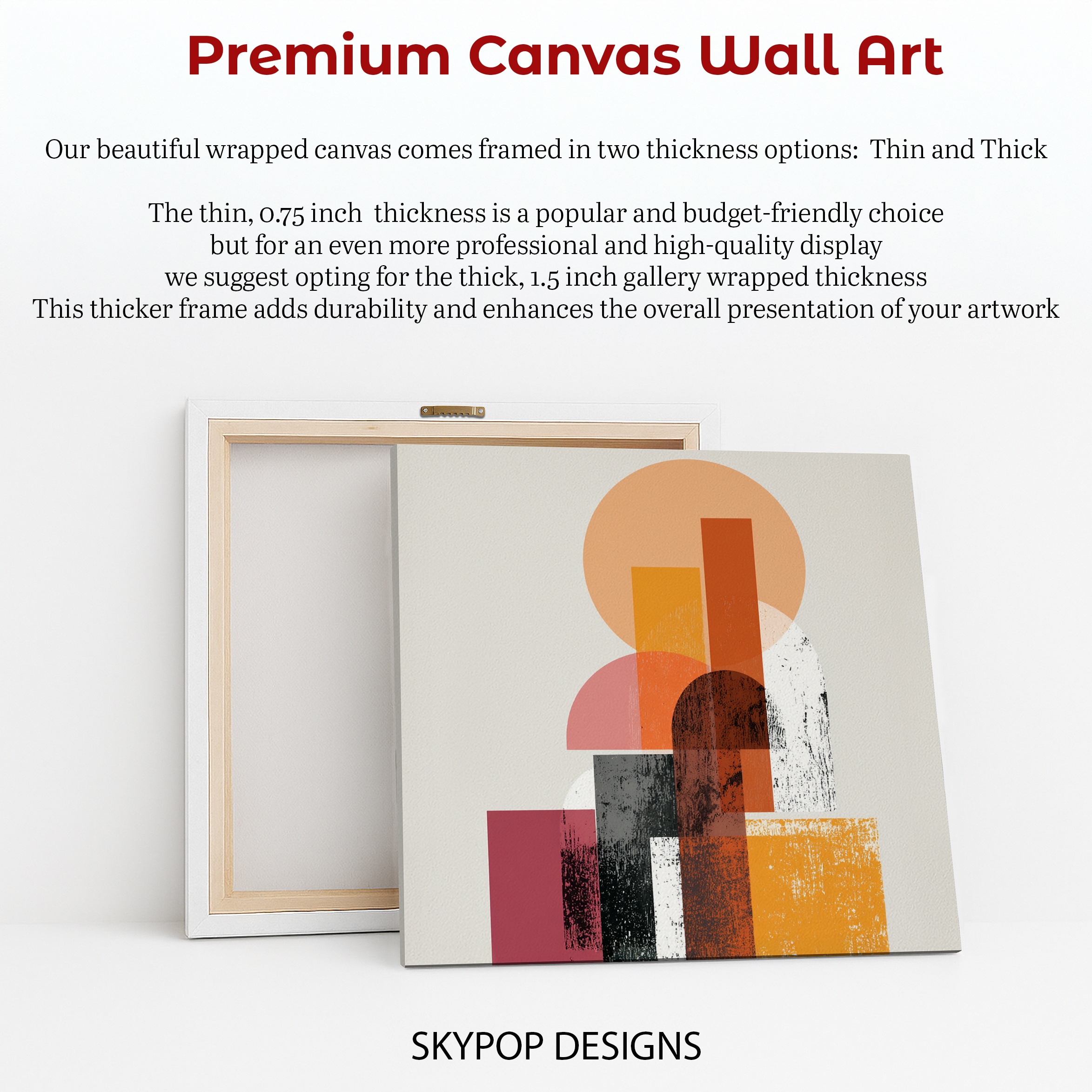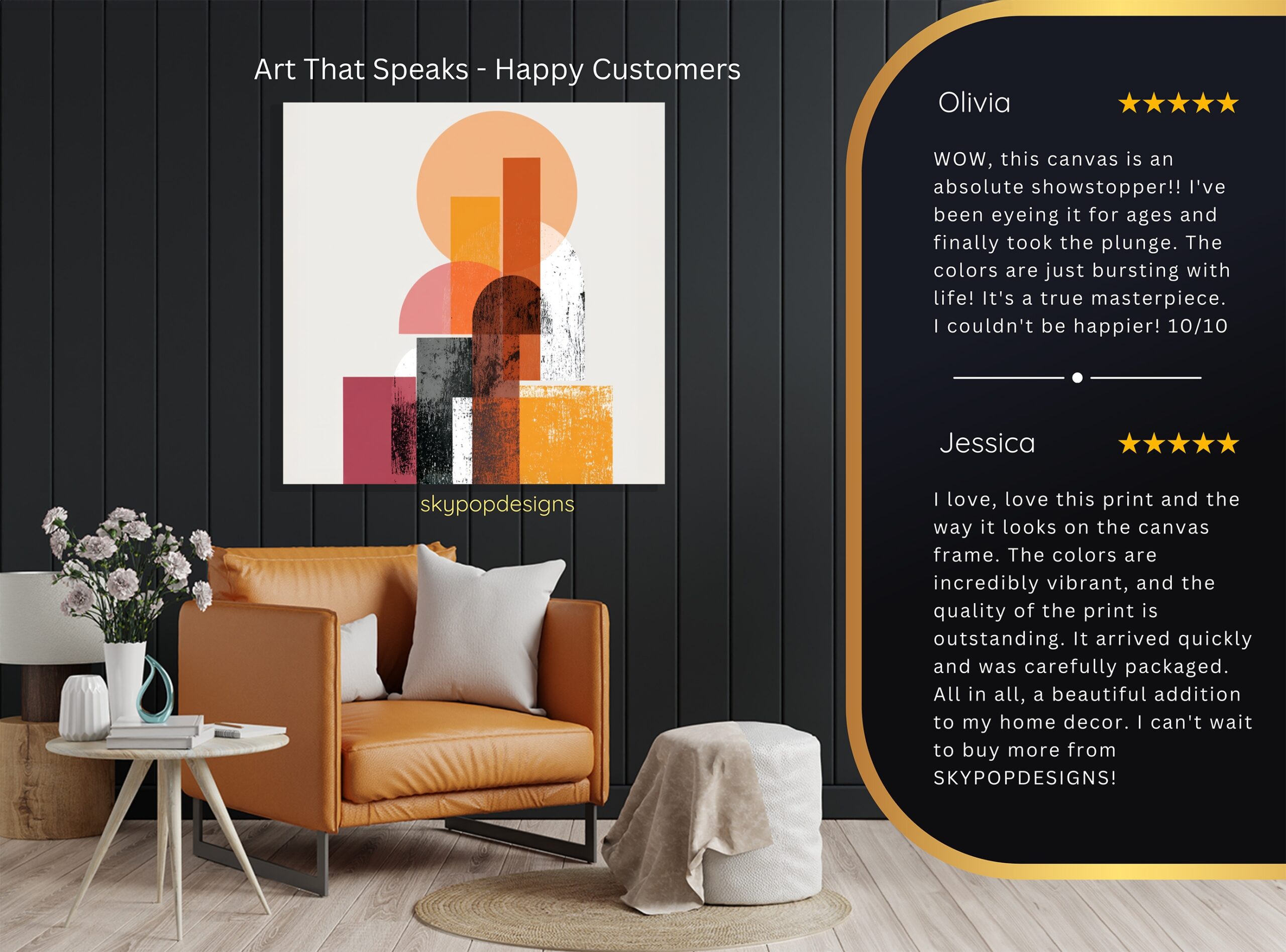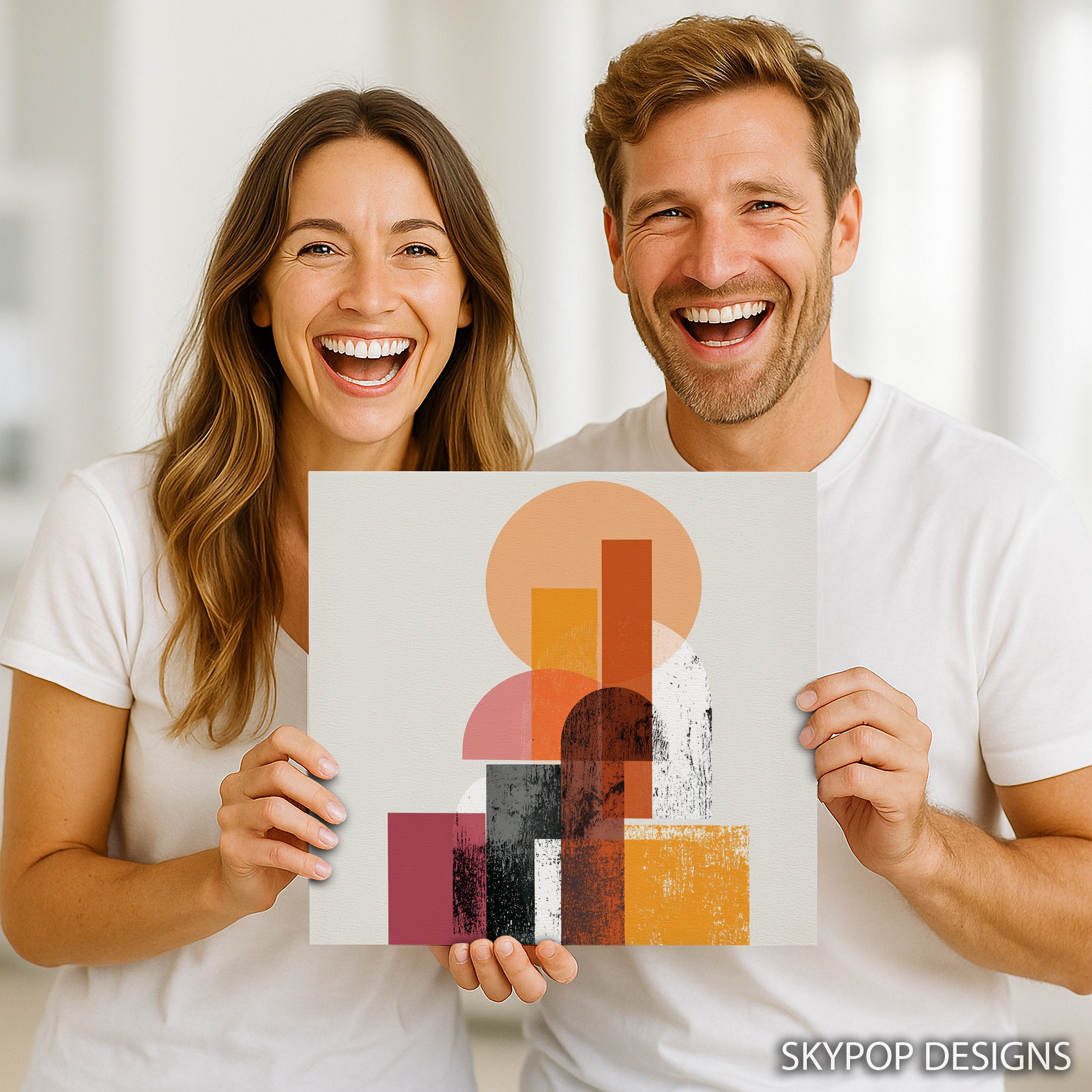 Transform your space with this striking geometric abstract canvas wall art, featuring warm sunset hues and bold shapes. This contemporary poster captures the essence of a modern cityscape bathed in golden light. Perfect for elevating mid-century modern living rooms or adding a touch of sophistication to minimalist offices, this artwork seamlessly blends form and color. The vibrant oranges and yellows evoke a sense of energy and warmth, while the clean lines and geometric composition create a calming balance. Ideal for those seeking to enhance their Scandinavian-inspired decor, this piece serves as a focal point that sparks conversation and admiration. The textured brushstrokes and layered shapes add depth and interest, ensuring this canvas art remains captivating from every angle. Whether displayed in a cozy bedroom or a sleek dining area, this versatile wall art adapts effortlessly to various interior styles. The high-quality printing process ensures rich, long-lasting colors that maintain their vibrancy over time. This abstract canvas is more than just decor; it’s a mood-enhancing addition that brings a sense of warmth and creativity to any room. Available in multiple sizes, it’s easy to find the perfect fit for your space. Elevate your home’s aesthetic and create a modern, artful atmosphere with this eye-catching geometric abstract wall art today.