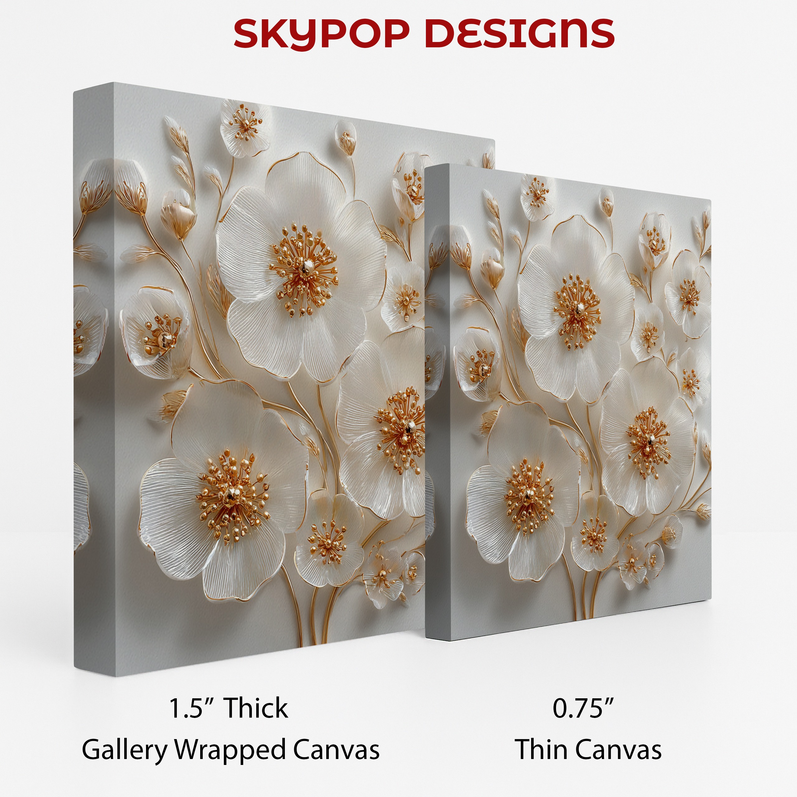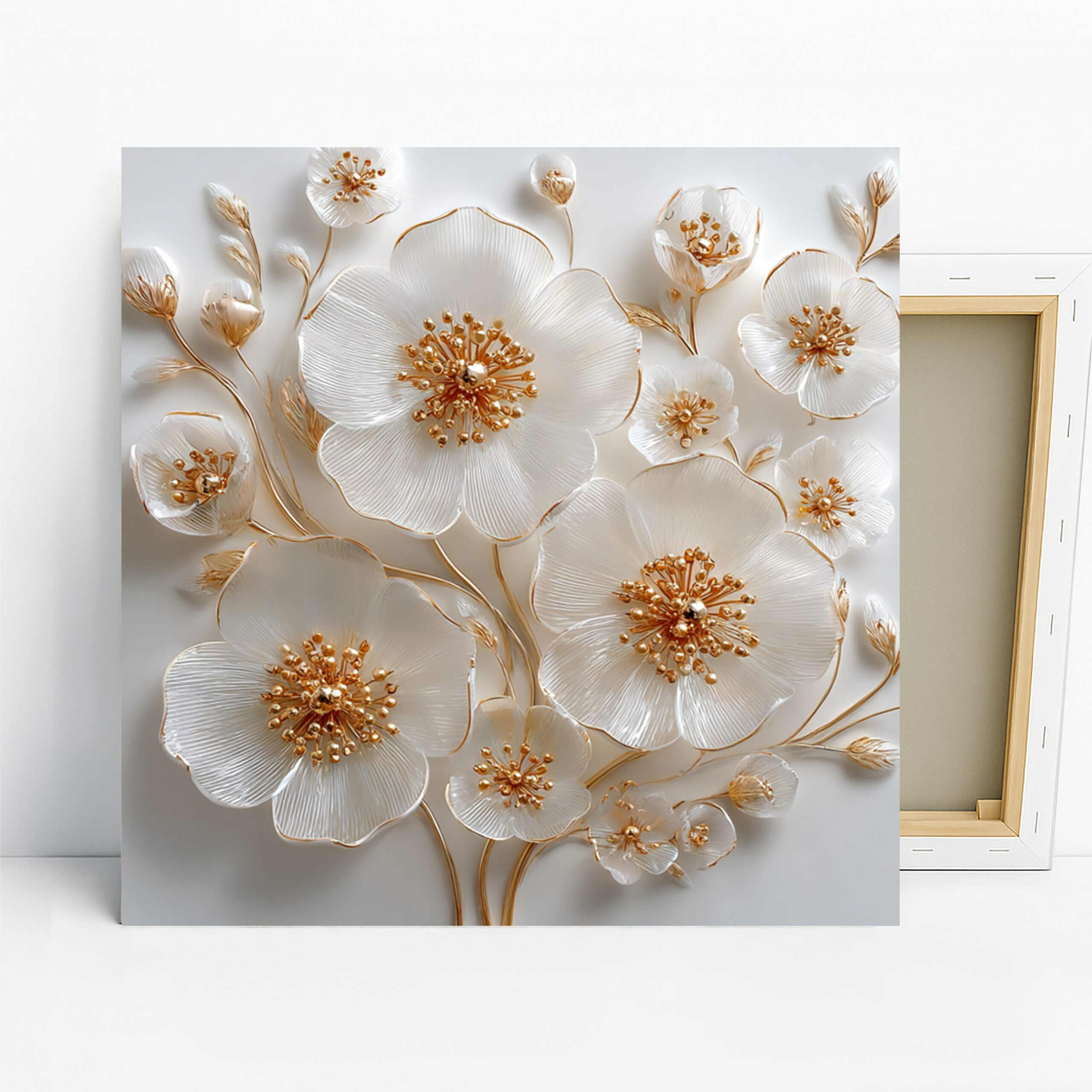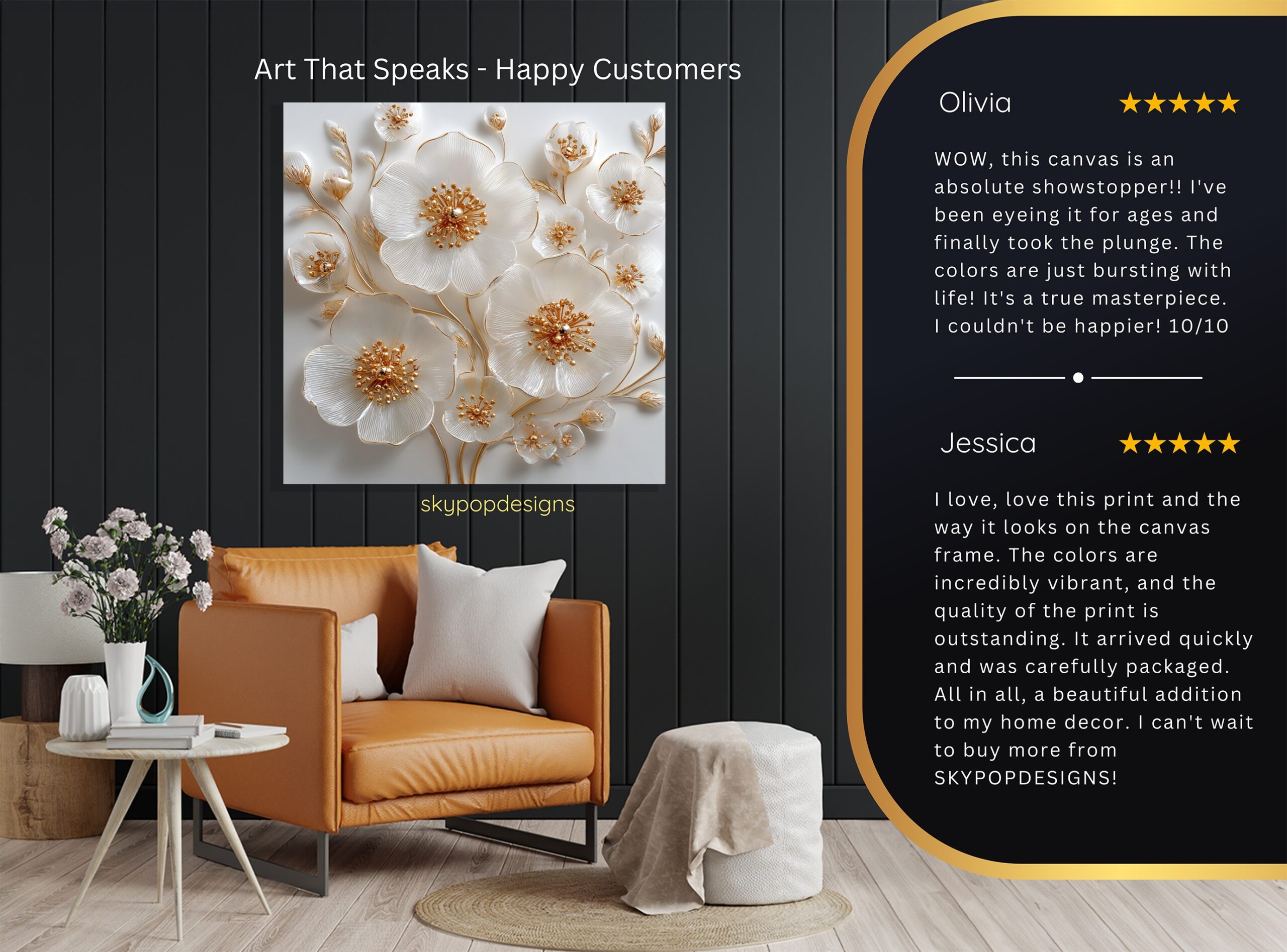 Keywords: Floral wall art, Gold floral art, White and gold art, Canvas wall art, Gilded blossom art, Art Nouveau decor, Contemporary floral art, Modern wall art, Glam decor, Living room art, Bedroom wall art, Dining room art, Entryway decor, Luxury wall art, Elegant art, High-end decor, Floral poster, Statement wall art, Home decor art, Interior design art, Housewarming gift, Birthday gift, Timeless art, Chic wall art, Opulent decor, Tranquil art, Flower art, Art for home, Decorative art, Sophisticated art