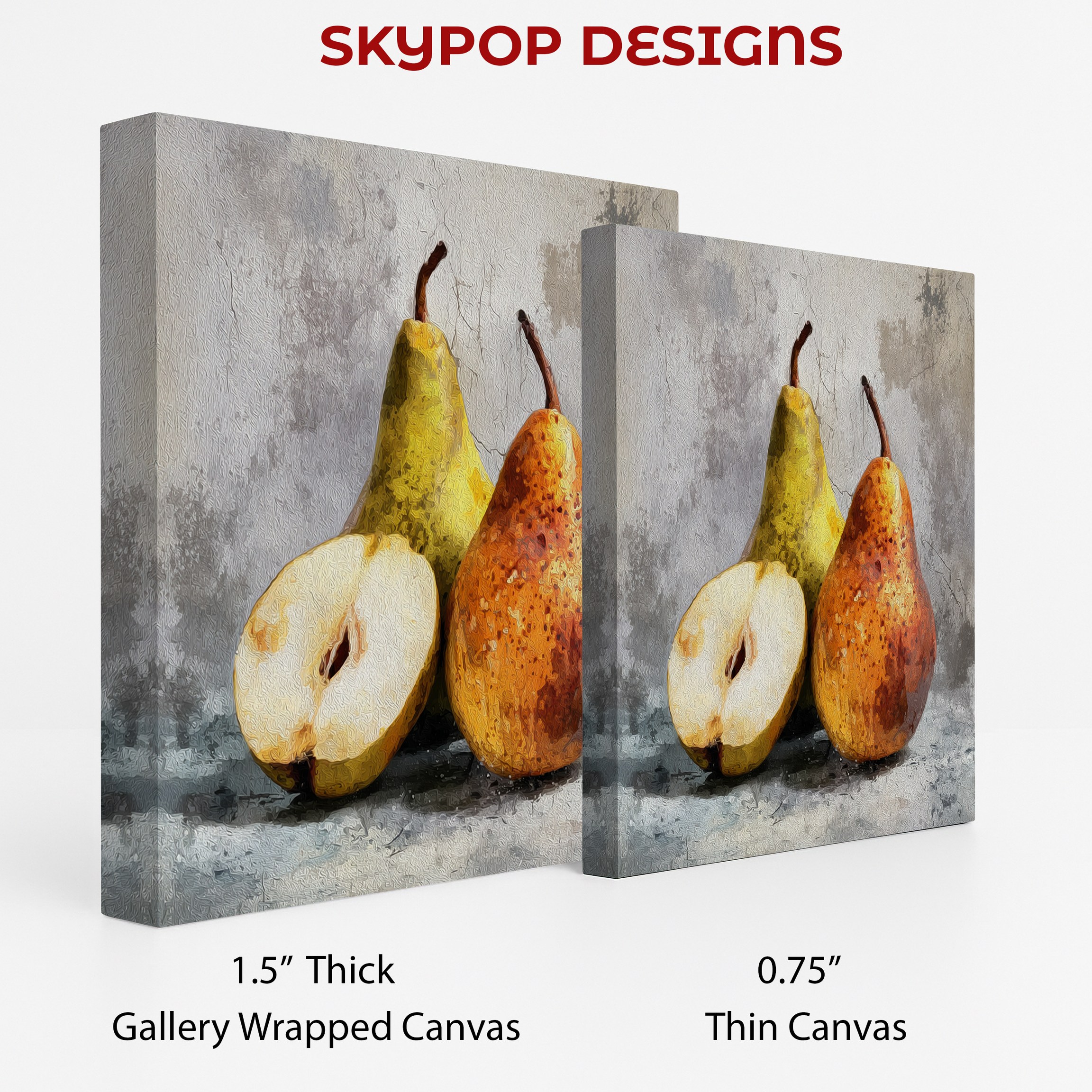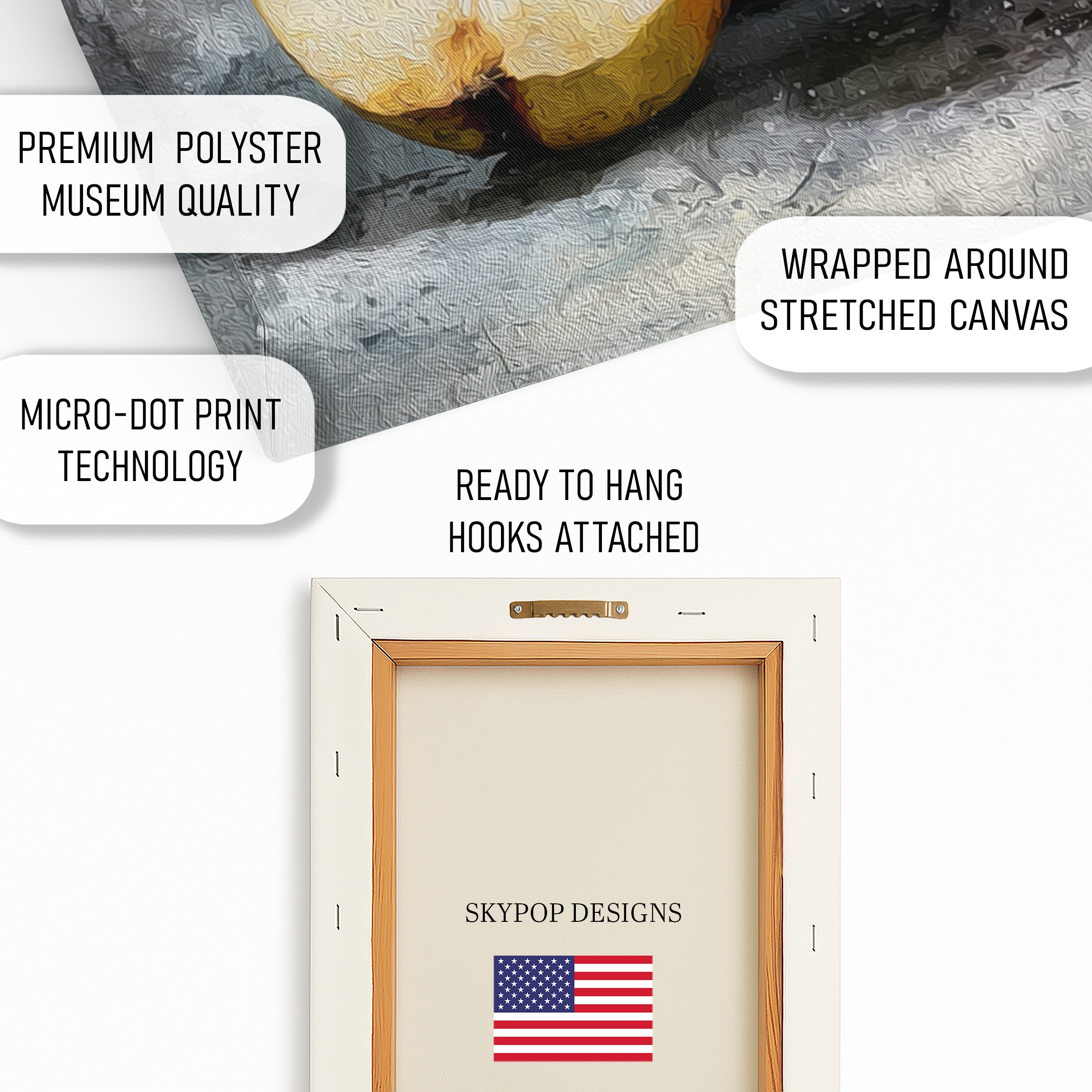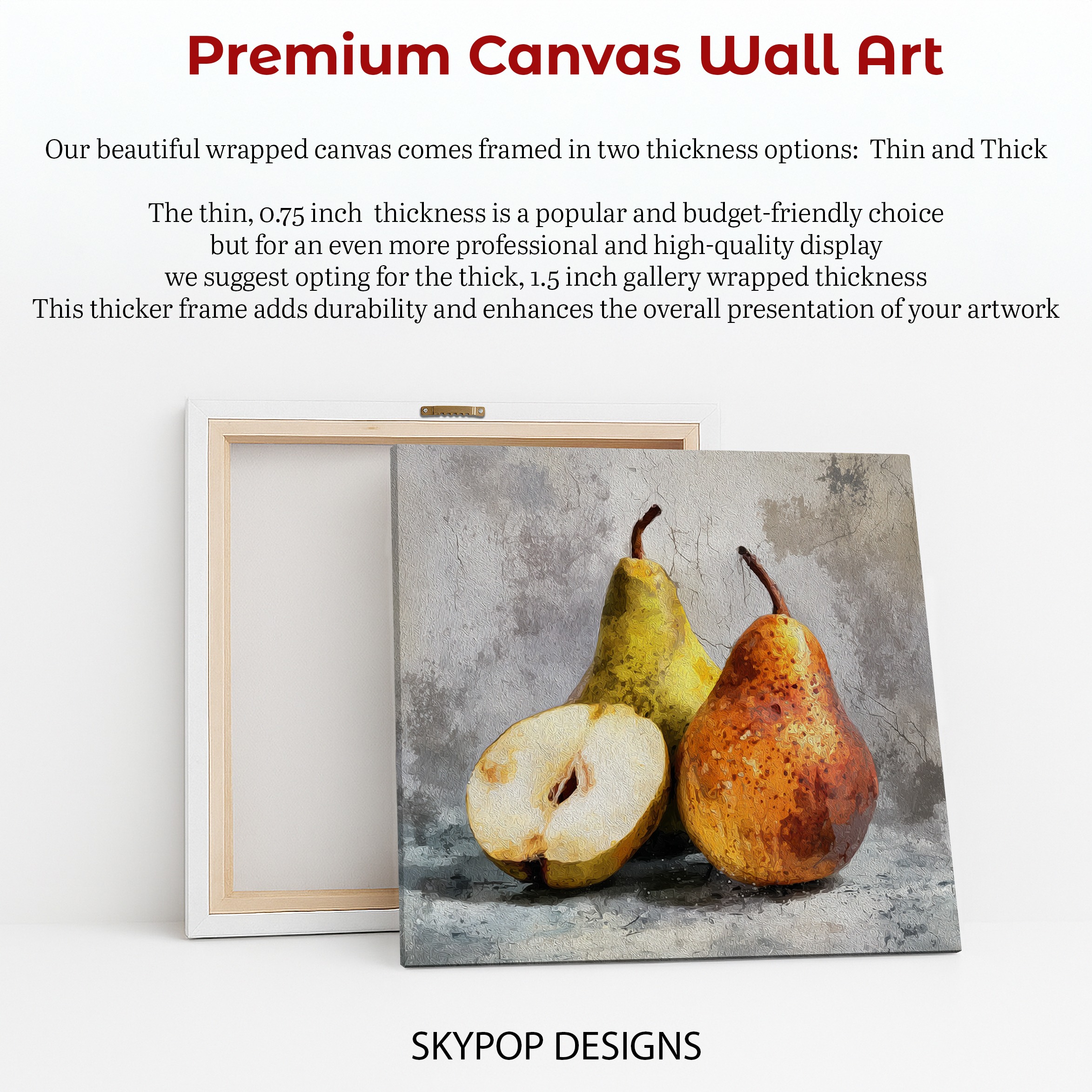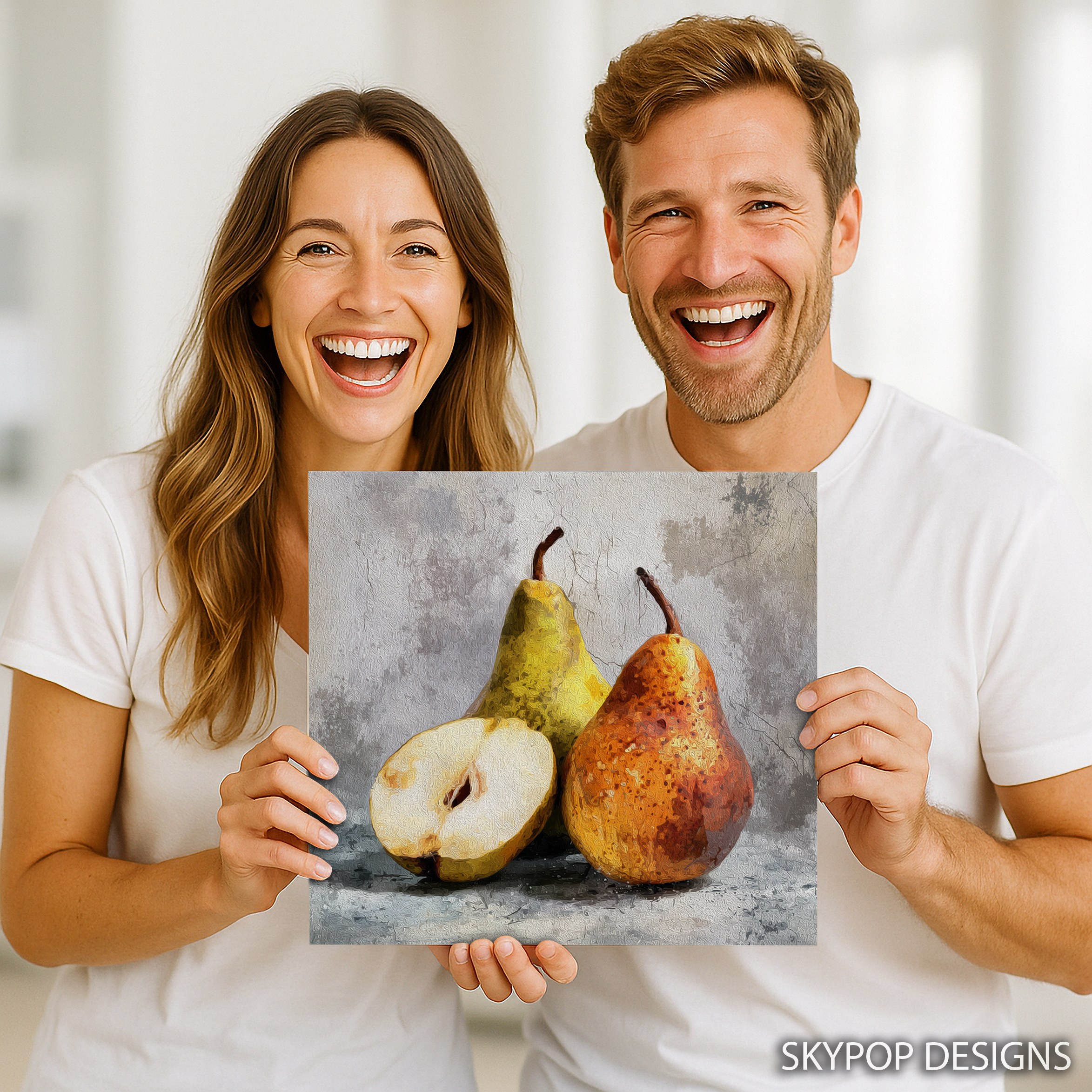 Elevate your space with this stunning pear canvas wall art, showcasing the beauty of nature’s simple pleasures. This vibrant still life poster captures two ripe pears in rich, golden hues, perfect for adding a touch of warmth to any room. The contemporary style and minimalist composition make it an ideal choice for modern kitchen decor or as a statement piece in a dining area. The textured brushstrokes bring depth and character to the canvas, creating a lifelike representation that almost beckons you to reach out and touch. This versatile wall art seamlessly blends with various decor styles, from rustic farmhouse to sleek contemporary spaces. The golden yellows and deep oranges evoke feelings of abundance and comfort, making it a perfect addition to living rooms or offices seeking a touch of natural elegance. High-quality printing ensures every detail is captured, from the pears’ subtle blemishes to the soft shadows they cast. Whether you’re a fruit lover or simply appreciate fine art, this pear-themed canvas will brighten your walls and lift your mood. Suitable for various sizes, this artwork adapts to different spaces, making it an excellent housewarming gift or a treat for yourself. Transform your home with this appetizing and aesthetically pleasing pear wall art today.