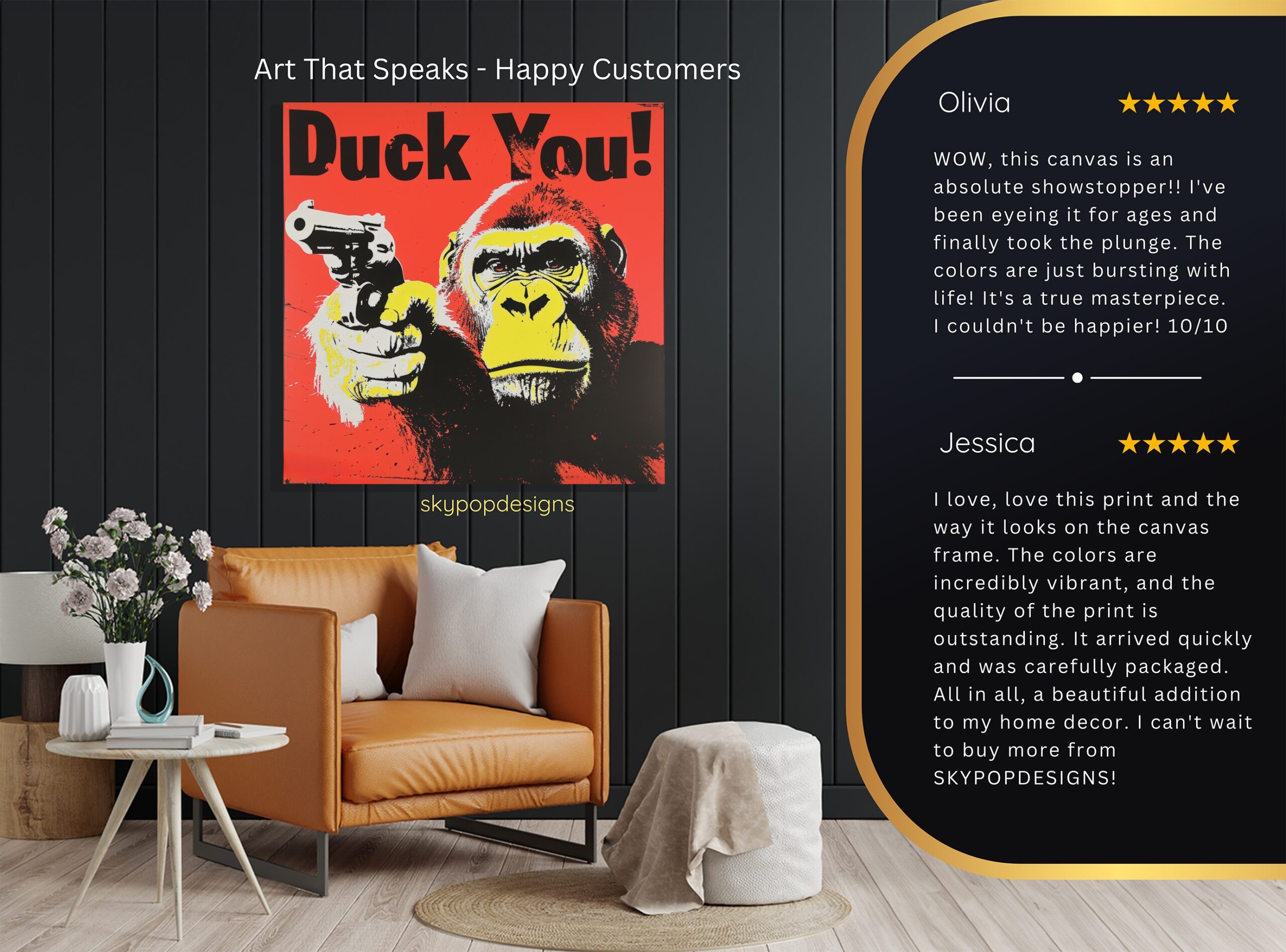 Keywords: Gorilla Canvas Art, Pop Art Decor, Graffiti Wall Art, Street Art Print, Contemporary Living Room, Modern Office Art, Glam Bar Decor, Multicolor Wall Art, Red Yellow Black Art, Gorilla with Gun, Animal Canvas Poster, Bold Wall Decor, Urban Cool Art, Statement Piece, Home Bar Art, Entertainment Space Art, Unique Wall Art, Modern Art Print, High Contrast Colors, Edgy Sophistication, Street Art Influences, Powerful Statement, Personalized Decor, Birthday Gift Art, Housewarming Gift, Unforgettable Art, Modern Wall Decor, Eye-catching Art, Art for Men, High-Quality Canvas