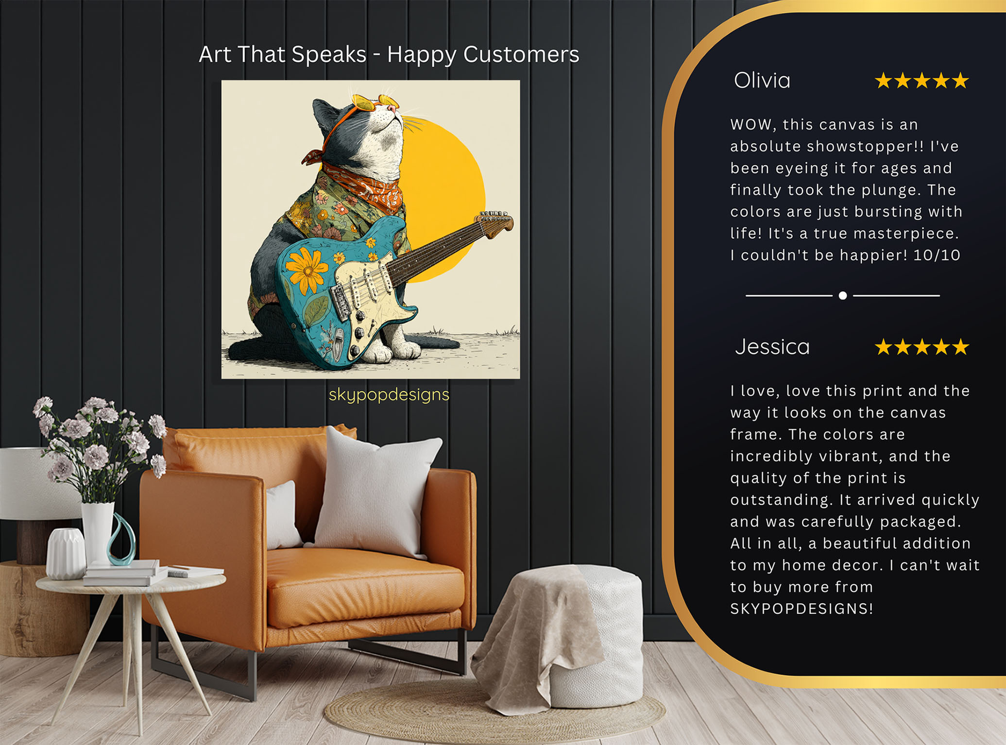 Channel your inner rockstar with this vibrant cat canvas wall art, a perfect poster to inject fun and personality into your space.