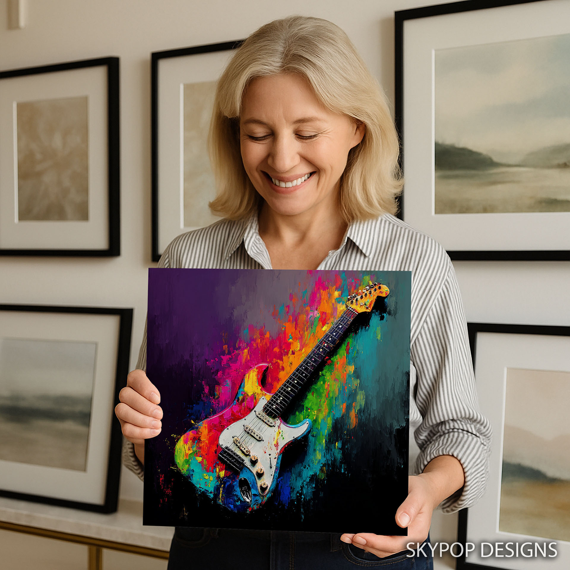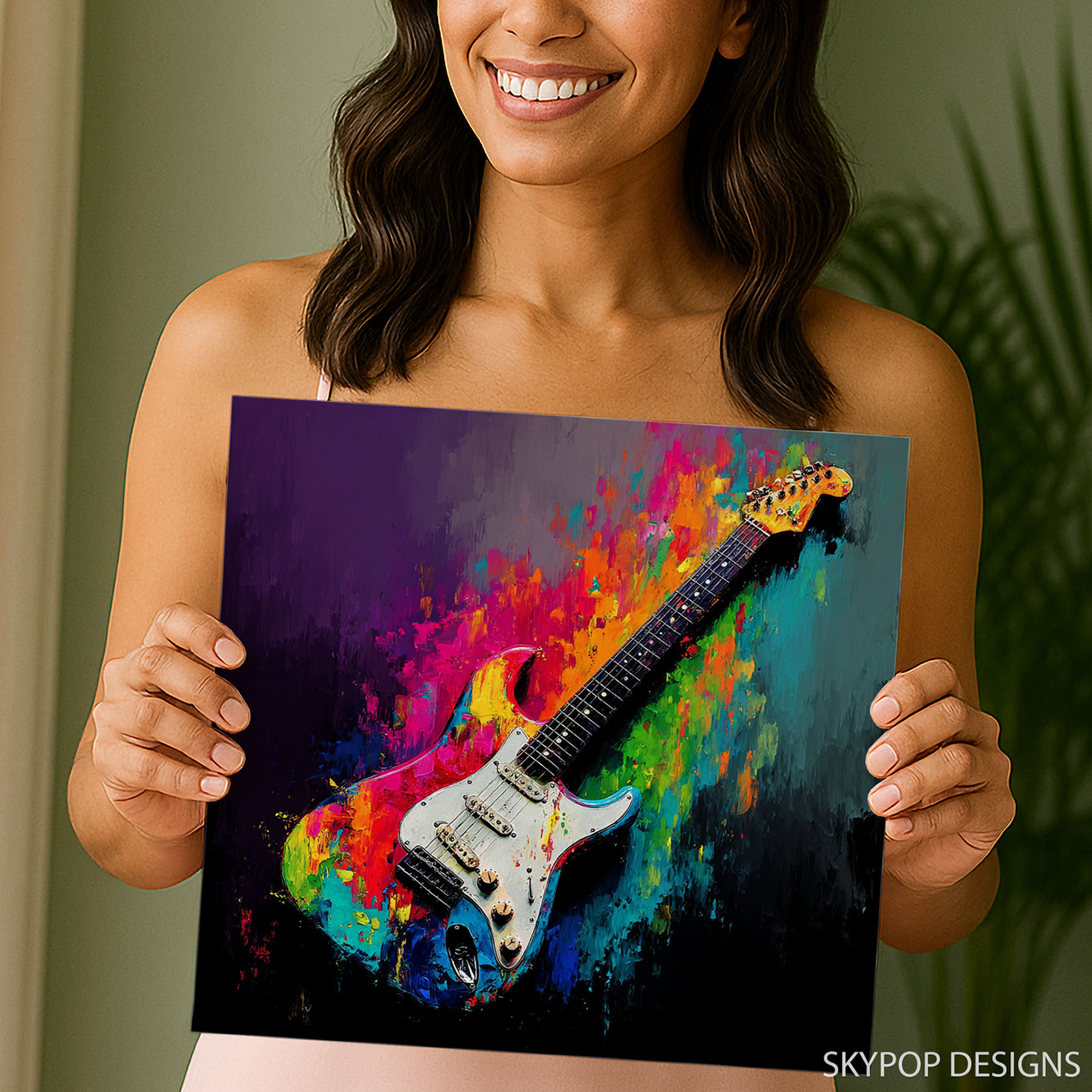 Ignite your space with this electric guitar canvas wall art, a true celebration of music and vibrant expression. This stunning poster or canvas wall art transforms any room into a dynamic visual symphony, perfect for living rooms or game rooms seeking an energetic focal point. The multicolor explosions of paint, featuring bold blues, hot pinks, and fiery oranges, create a captivating backdrop for the iconic guitar. Ideal for modern and bohemian decor styles, this artwork elevates contemporary spaces with its striking aesthetic. The abstract splashes of color behind the crisp guitar design add depth and movement, making this canvas art a true conversation starter. Showcase your passion for music and art with this high-impact poster that inspires creativity and vibrant living room wall decor. The contrast between the detailed guitar and the expressive brushwork creates a unique visual rhythm. Perfect as a gift for musicians, music lovers, or anyone who appreciates bold, modern wall art, this piece brings joy and excitement. It’s an ideal addition to home offices or entertainment spaces, bringing a touch of rock and roll flair. High-quality printing ensures the colors remain vivid and the details sharp for years to come. Elevate your home decor with this unique piece of music wall art that captures the soul of rock and roll. Transform your walls and let the rhythm of this guitar canvas art inspire you every day.