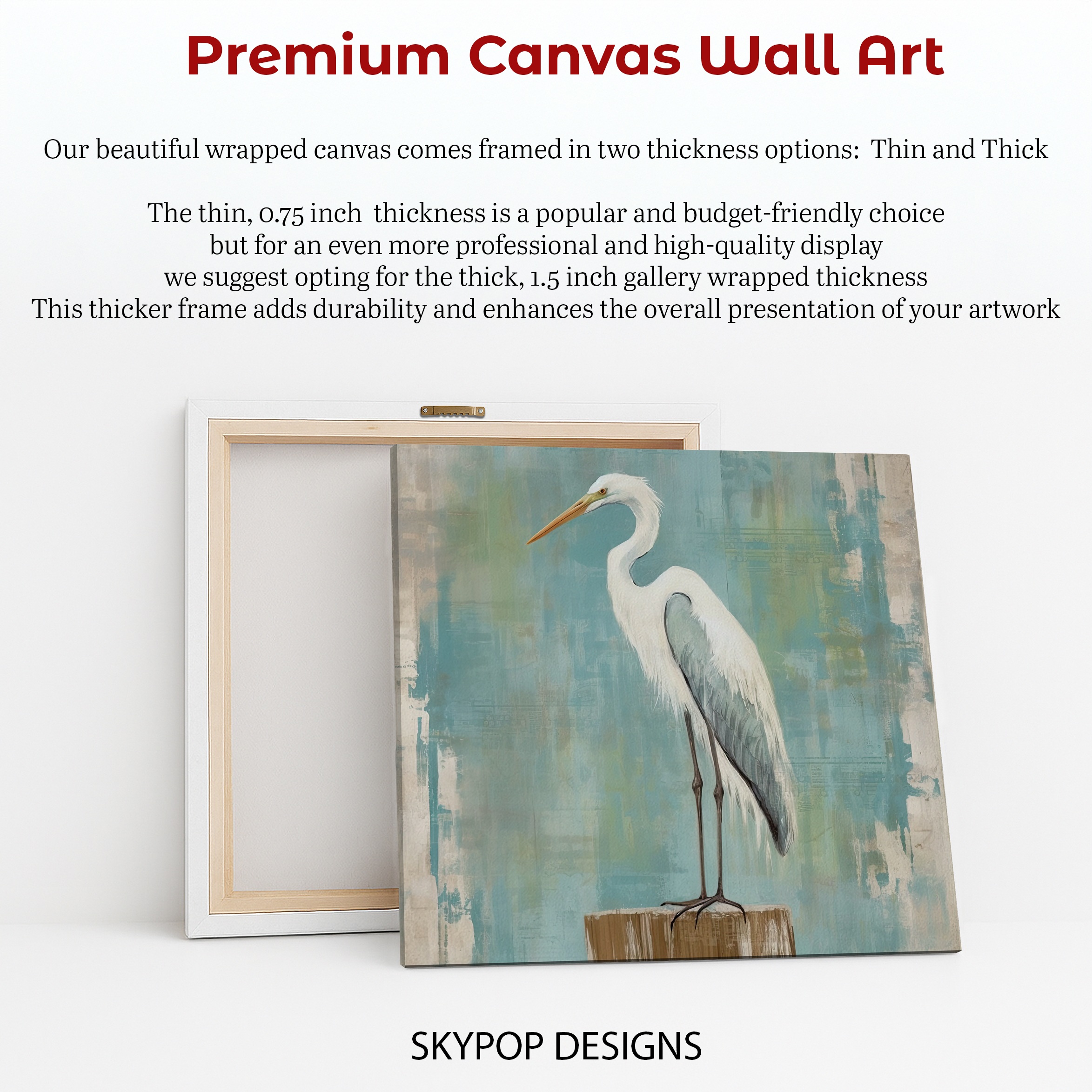 Keywords: Heron Canvas Art, Coastal Wall Art, Nature Art, Abstract Art, Contemporary Art, Modern Decor, Minimalist Decor, Living Room Art, Entryway Art, Bedroom Art, Bathroom Art, Blue Teal Art, Beige White Art, Heron Print, Wildlife Art, Elegant Wall Decor, Tranquil Home Art, Serene Artwork, Coastal Landscape, Waterside Retreat, Rustic Wood Post Art, Fine Art Print, Home Decor Gift, Housewarming Gift, Birthday Gift, Avian Art, Calm Aesthetic, Statement Wall Art, Interior Design Art