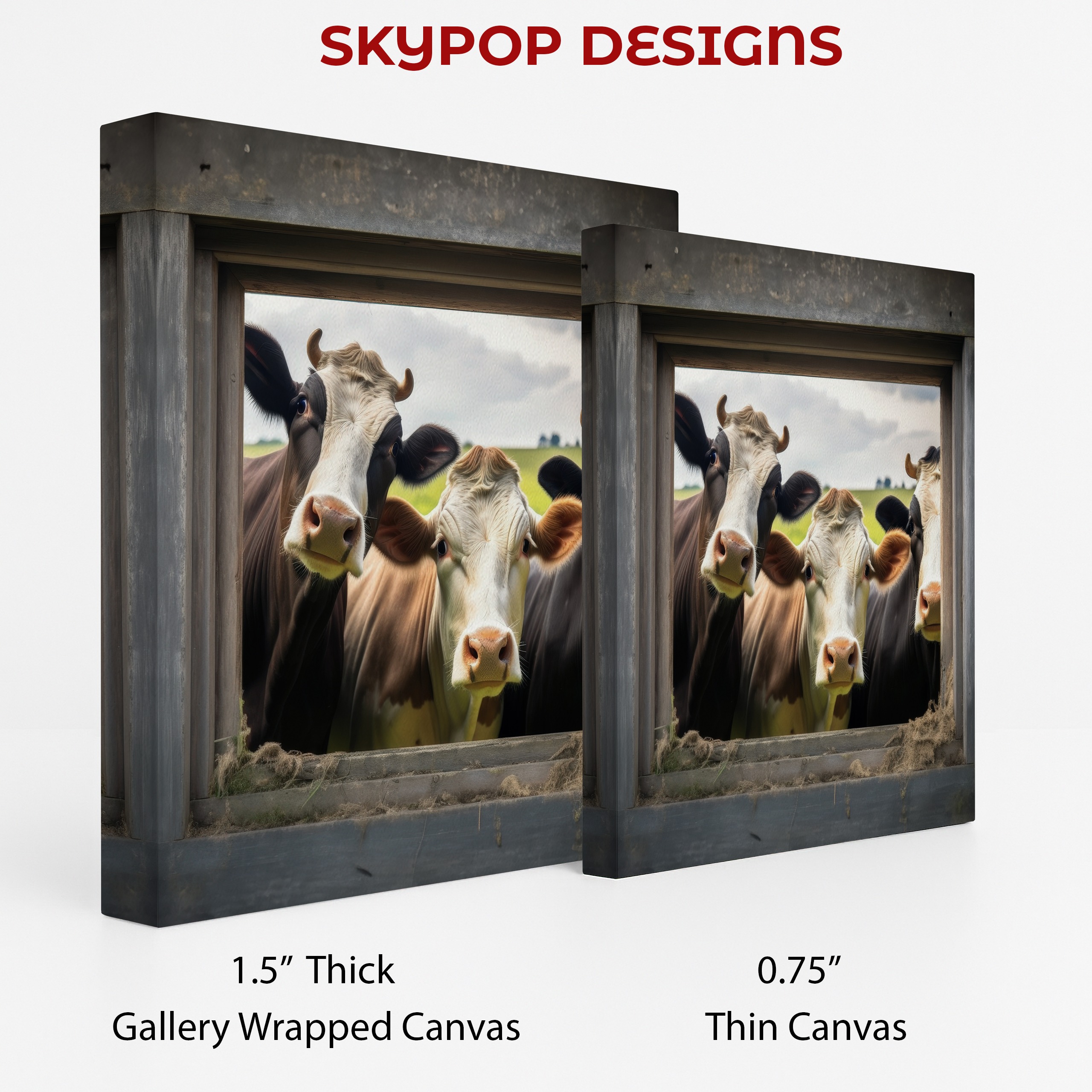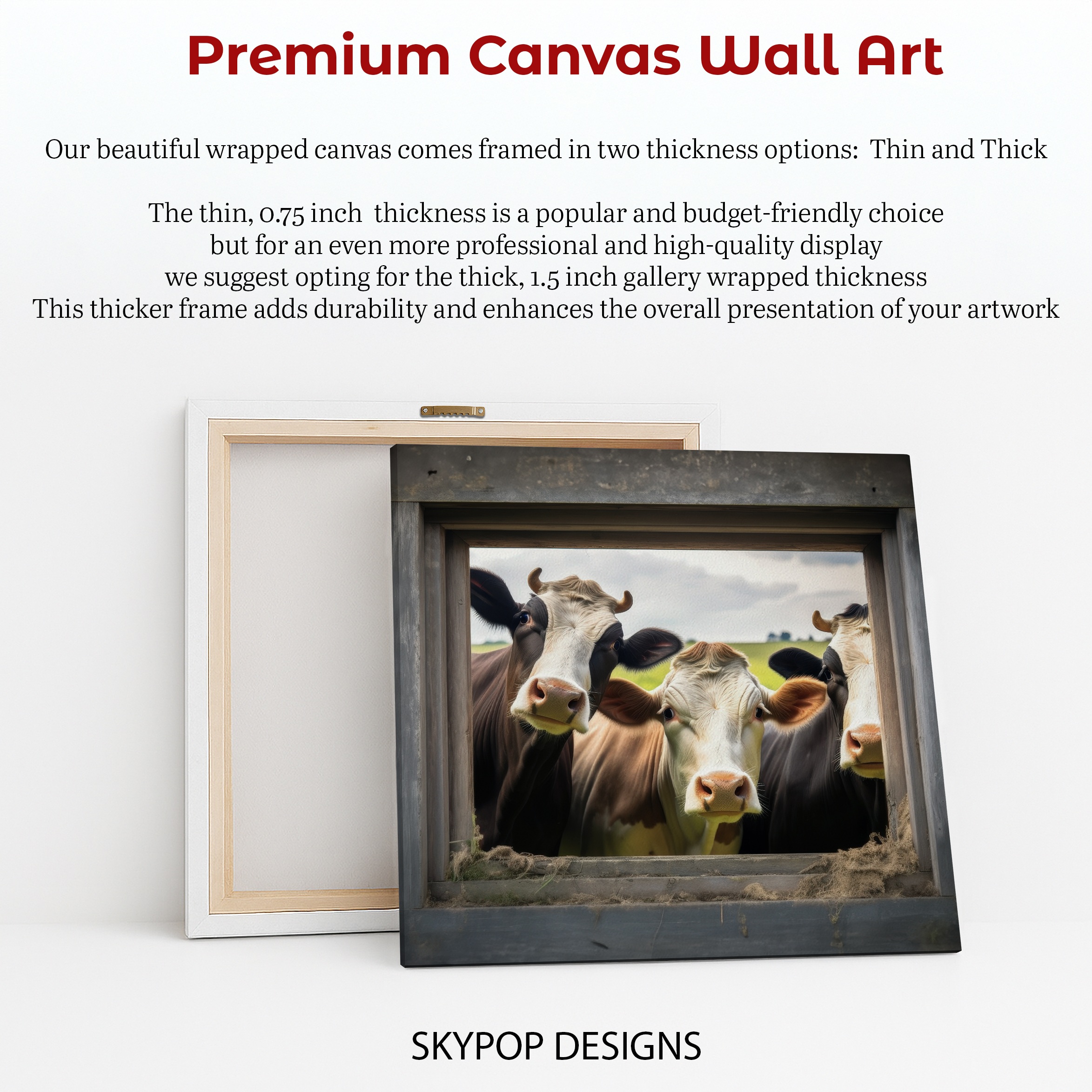 Bring the charm of the countryside into your home with this captivating cow canvas wall art. This striking poster features a group of curious Highland cows peeking through a rustic wooden frame, creating an engaging and heartwarming scene. The natural colors and farm-inspired theme make this canvas wall art a perfect addition to farmhouse or rustic decor styles, ideal for your kitchen, living room, or entryway. This animal art poster showcases vibrant details and a sense of gentle curiosity that will transform your space and inspire conversation. Elevate your home decor with this unique and charming piece that celebrates the beauty of farm life. The textured look of the wood and the realistic portrayal of the cows add a touch of authenticity, making it a standout canvas for your wall art collection. This versatile artwork suits various rooms, from a cozy dining room to a welcoming farmhouse kitchen. It makes a wonderful gift for animal lovers, farmers, or anyone appreciating country living. Unframed canvas wall art options ensure a flexible and stylish addition to any aesthetic. Enhance your home’s atmosphere with this delightful cow wall art, a piece that embodies warmth and rustic appeal. Showcase your love for nature and farm animals with this eye-catching poster, a true testament to country charm. Make this unique cow artwork the centerpiece of your home decor today and let its rustic beauty shine.