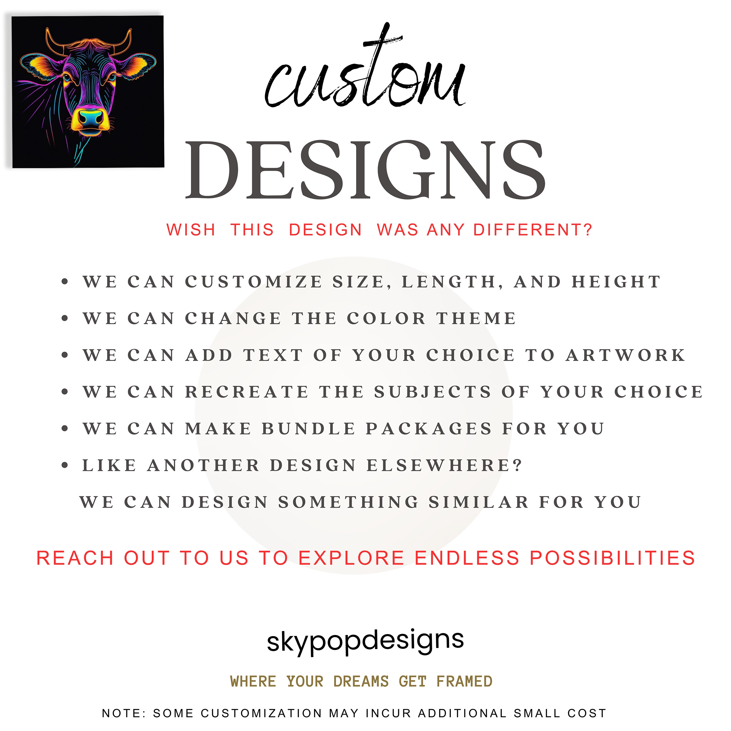 Looking for a custom design, or do you love a particular design but need it in a different size or orientation? Perhaps you’ve found a design elsewhere and wish for us to create something similar for you? Drop us a message! We’re dedicated to meeting your needs and will work closely with you to ensure your vision comes to life.