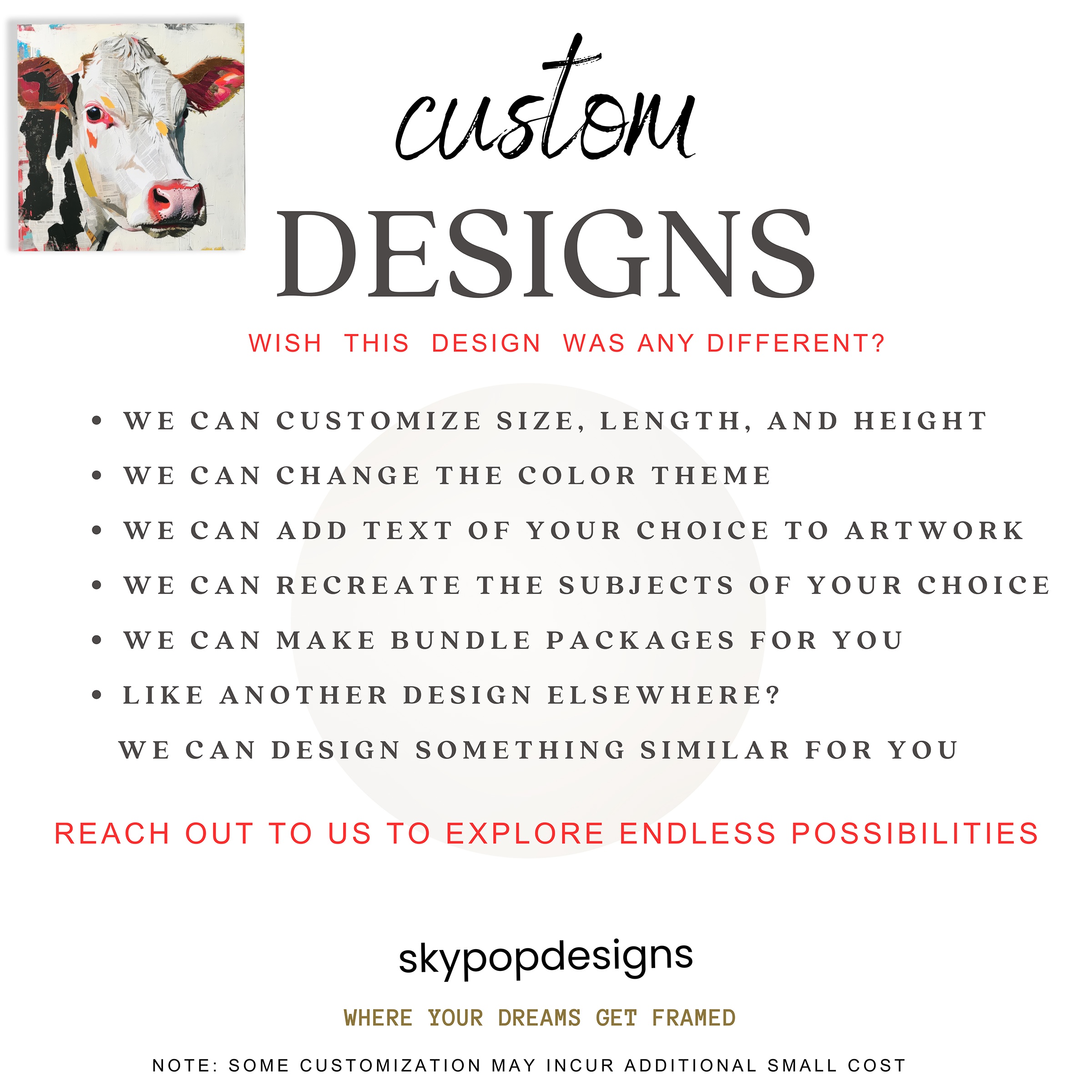 Looking for a custom design, or do you love a particular design but need it in a different size or orientation? Perhaps you’ve found a design elsewhere and wish for us to create something similar for you? Drop us a message! We’re dedicated to meeting your needs and will work closely with you to ensure your vision comes to life.