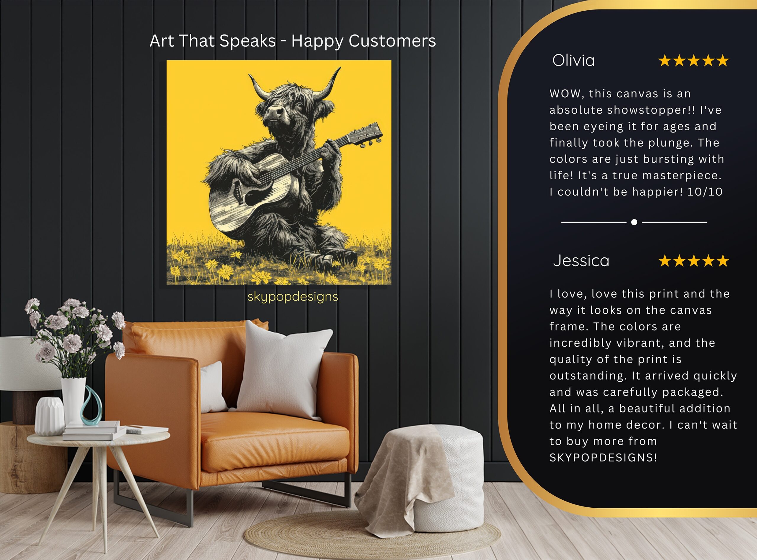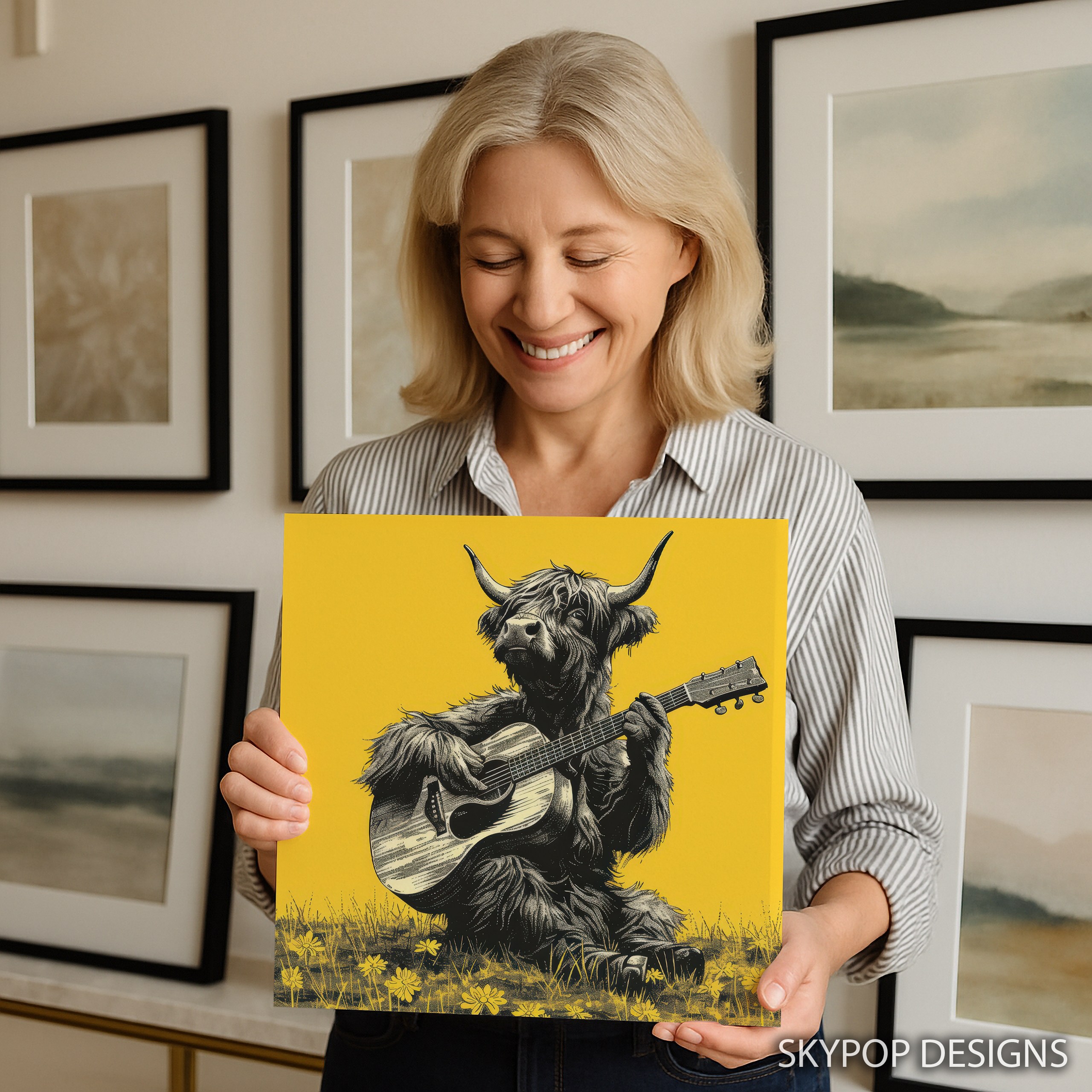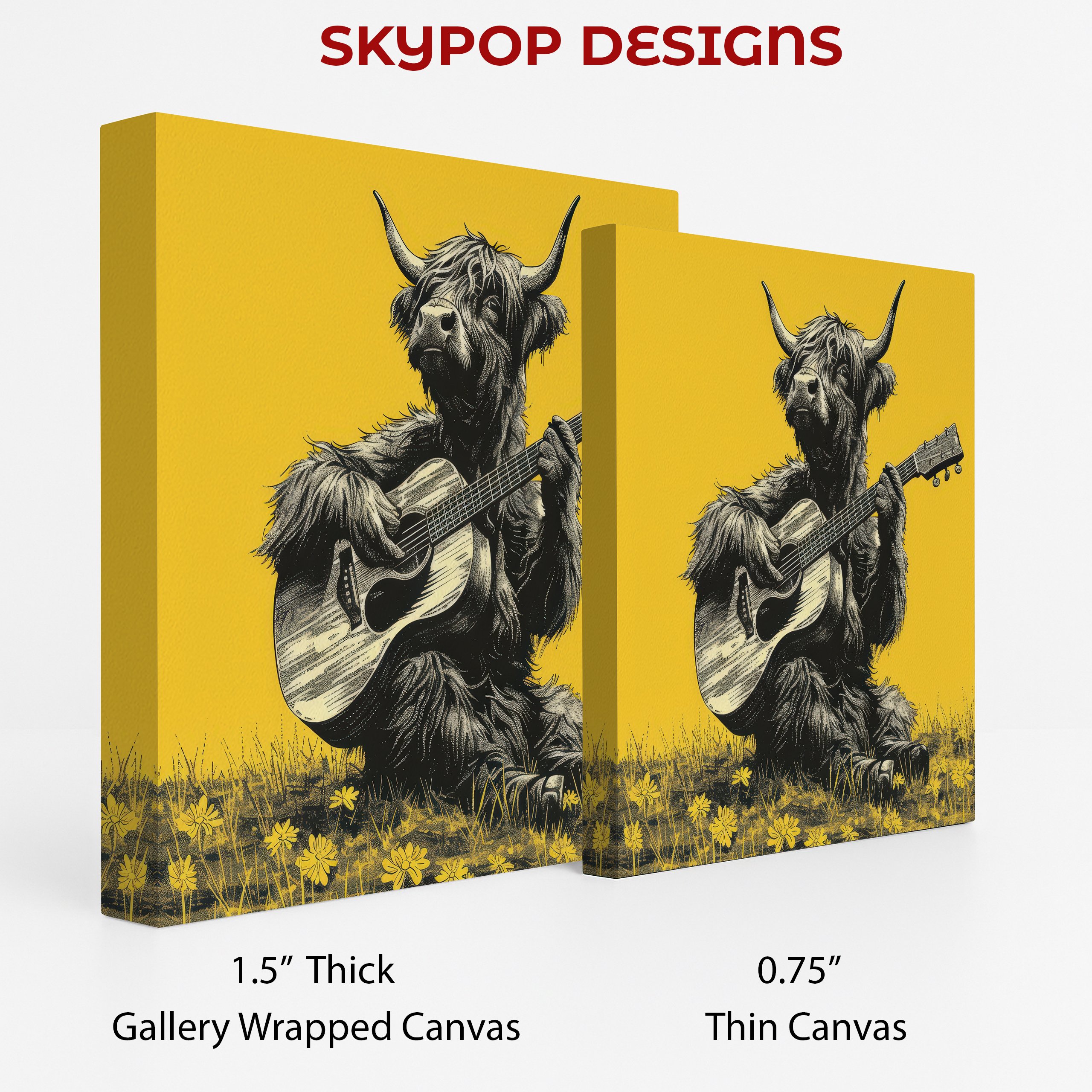 Keywords: Highland Cow Art, Canvas Wall Art, Animal Art, Vintage Art, Whimsical Art, Rustic Decor, Farmhouse Decor, Bohemian Decor, Living Room Art, Bedroom Art, Entryway Decor, Craft Room Art, Multicolor Art, Yellow Art, Black and White Art, Jam Session Art, Guitar Art, Music Lover Gift, Animal Illustration, Wall Decor, Home Decor, Unique Art Print, Captivating Poster, Joyful Art, Creative Decor, Charming Animal Art, Nature Inspired Art, Farmhouse Style, Bohemian Style, Highland Cow Poster