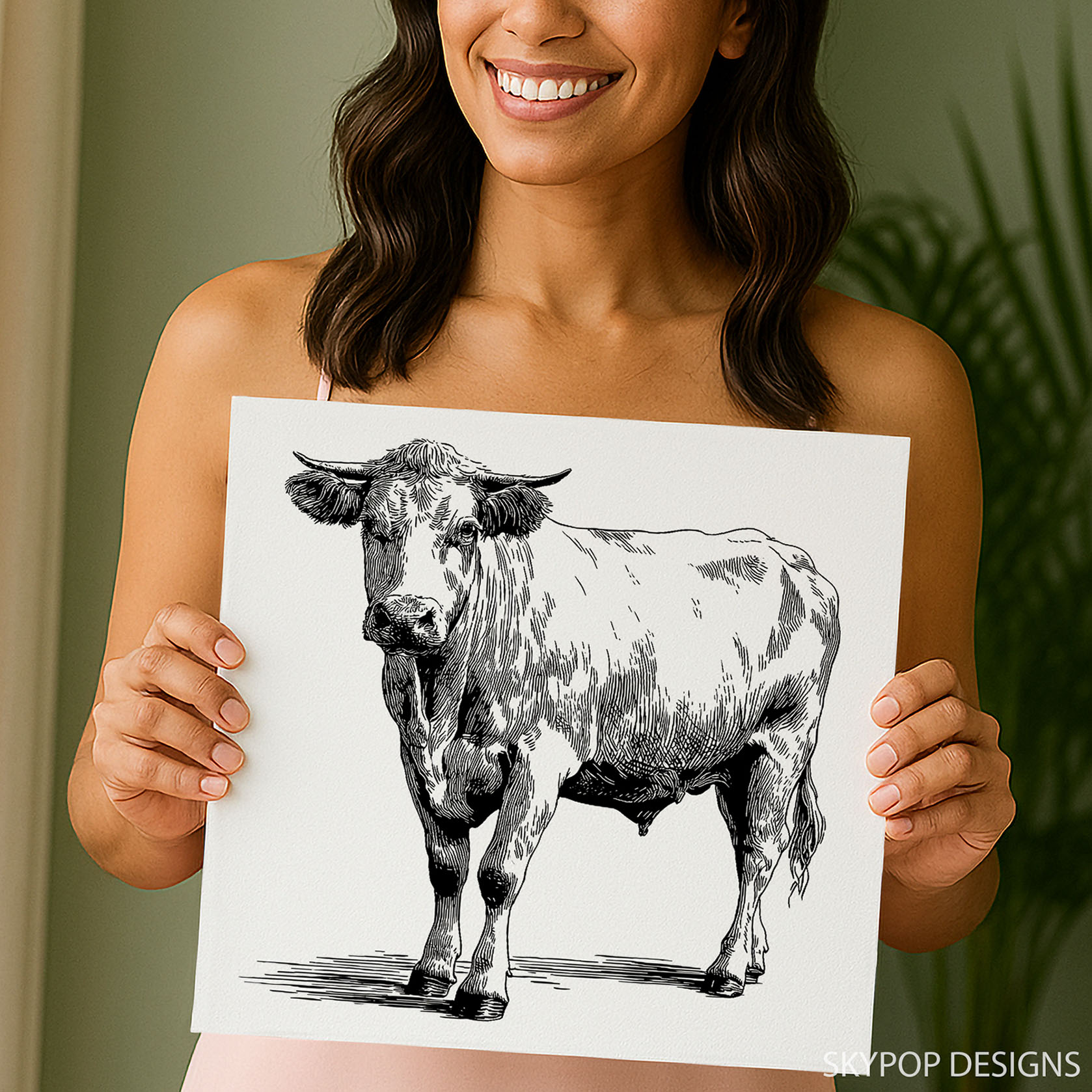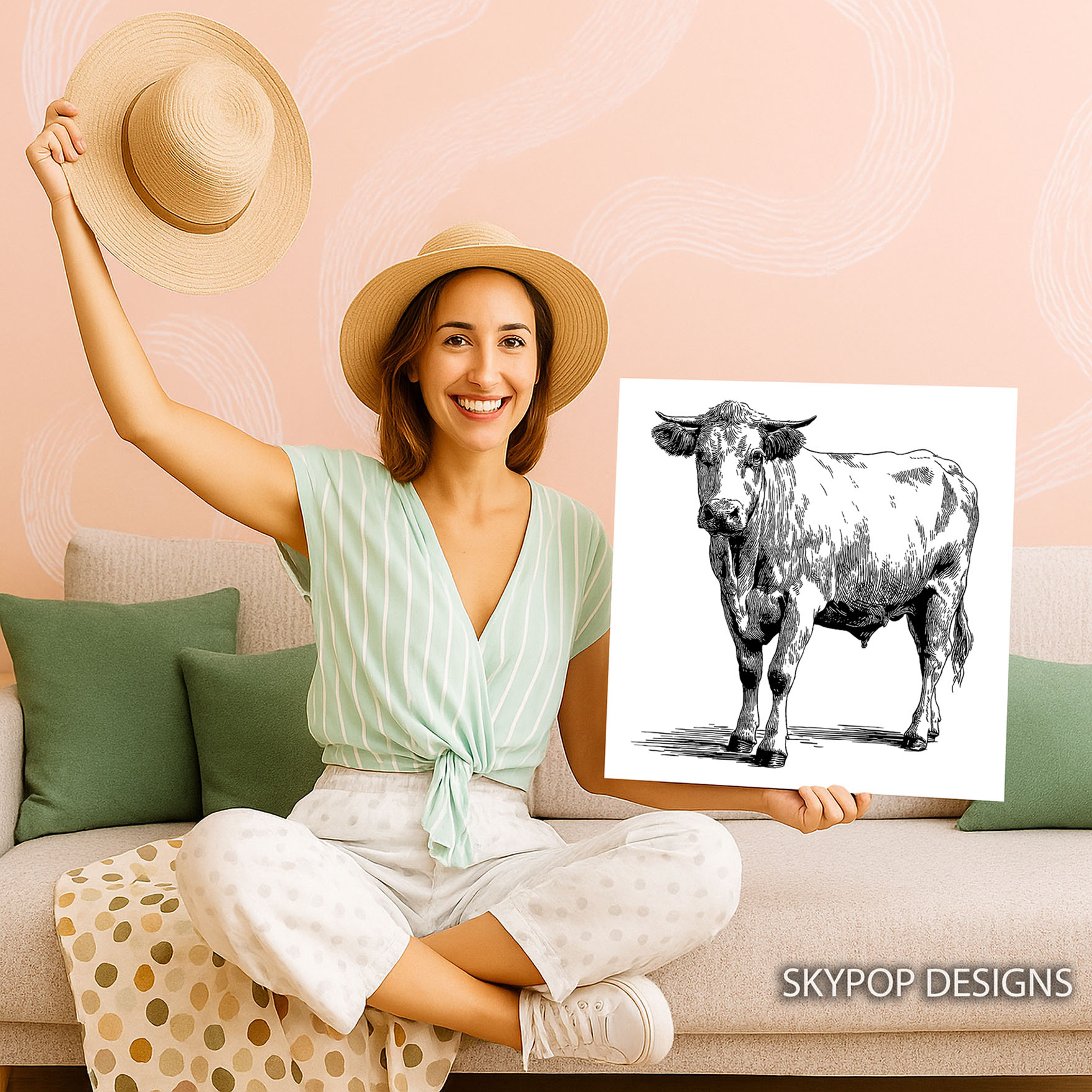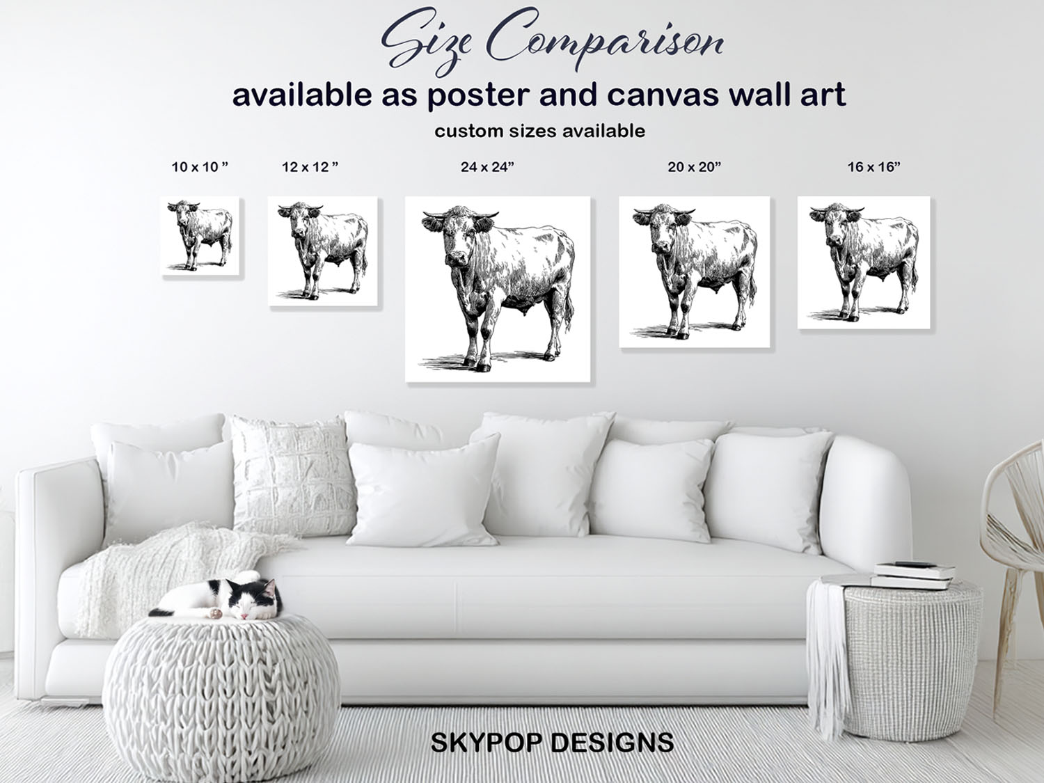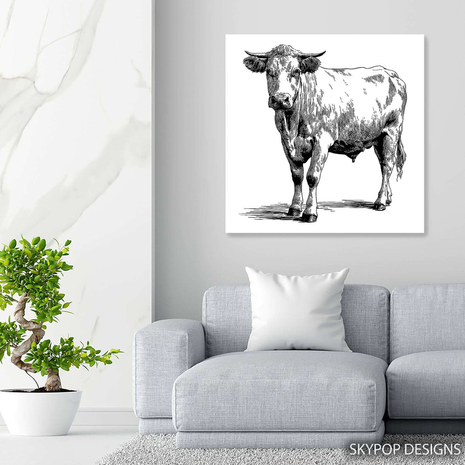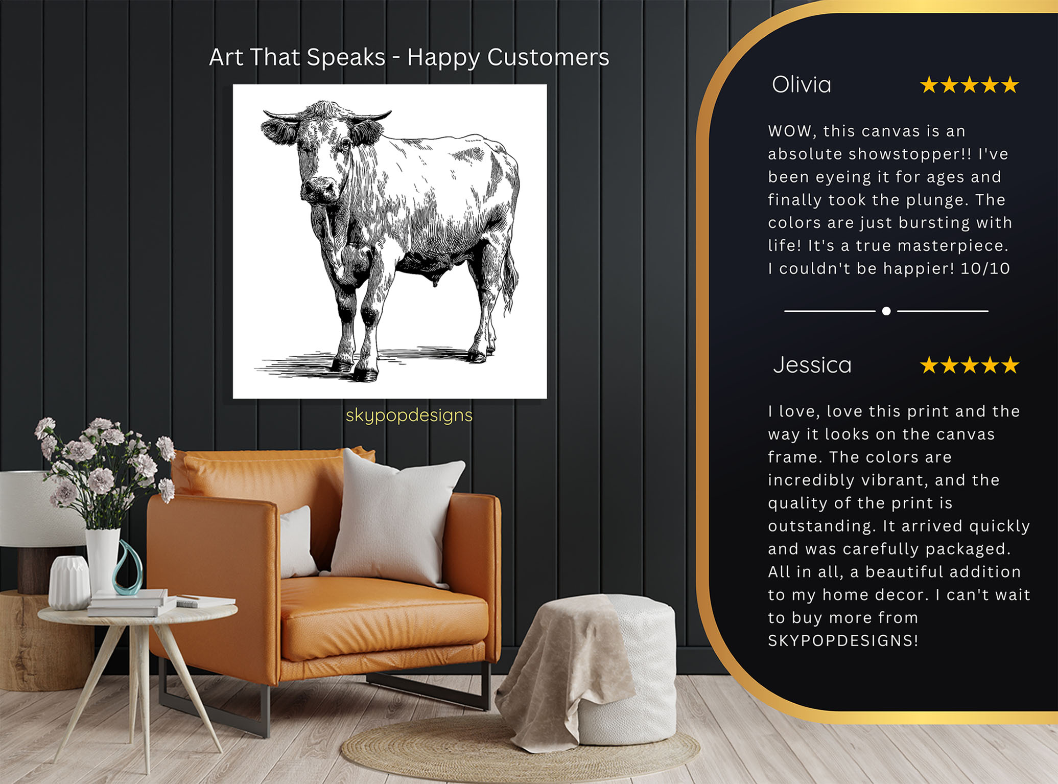 Bring the charm of the countryside into your home with this striking Highland Cow canvas wall art. This classic animal art piece, rendered in a detailed black and white sketch style, showcases the majestic presence of a Highland Cow. Perfect for adding rustic character to your living room decor or creating a warm farmhouse feel in your kitchen, this poster or canvas wall art is a true statement piece. The intricate linework and tonal shading give depth and texture to the artwork, celebrating the natural beauty of these iconic animals. Ideal for country-style homes, this cow wall art also complements farmhouse settings with its timeless appeal. This versatile canvas wall art works wonderfully in entryways to welcome guests or as a rustic touch in a cozy bedroom. High-quality printing ensures the detailed linework and subtle shading of the cow are captured with impressive clarity. Whether you’re looking for a unique gift for animal lovers, a housewarming present, or simply want to refresh your wall decor, this Highland Cow artwork is an excellent choice. The monochromatic palette makes it a perfect addition to a variety of color schemes, enhancing any room’s existing decor. Elevate your space with the enduring beauty of farm animals and natural landscapes. Enhance your home with this captivating Highland Cow poster that offers both artistic elegance and a connection to rural life. Transform your walls today with this beautiful canvas art that celebrates the spirit of the land.