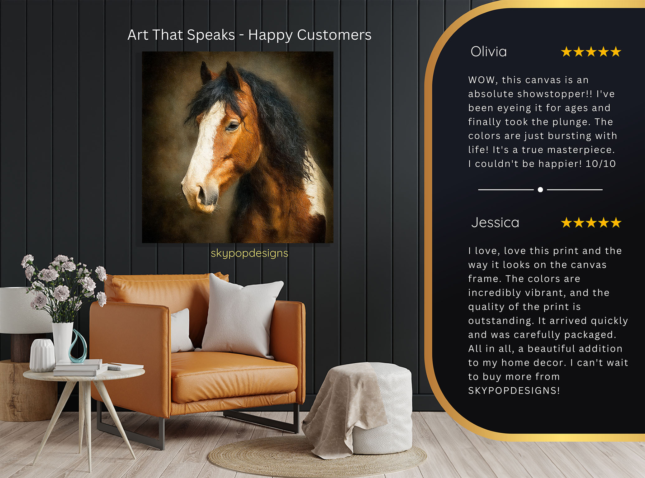 At SKYPOPDESIGNS, we specialize in high-quality canvas and poster prints designed to bring sophistication and style to your space. Please note that our designs are not created with 3D textures or as original oil, acrylic, or watercolor paintings; they are instead HD reproductions of original artwork. This approach allows us to offer these visually stunning pieces at competitive prices, ensuring you receive top-tier, maintenance-free art that’s easy to enjoy.