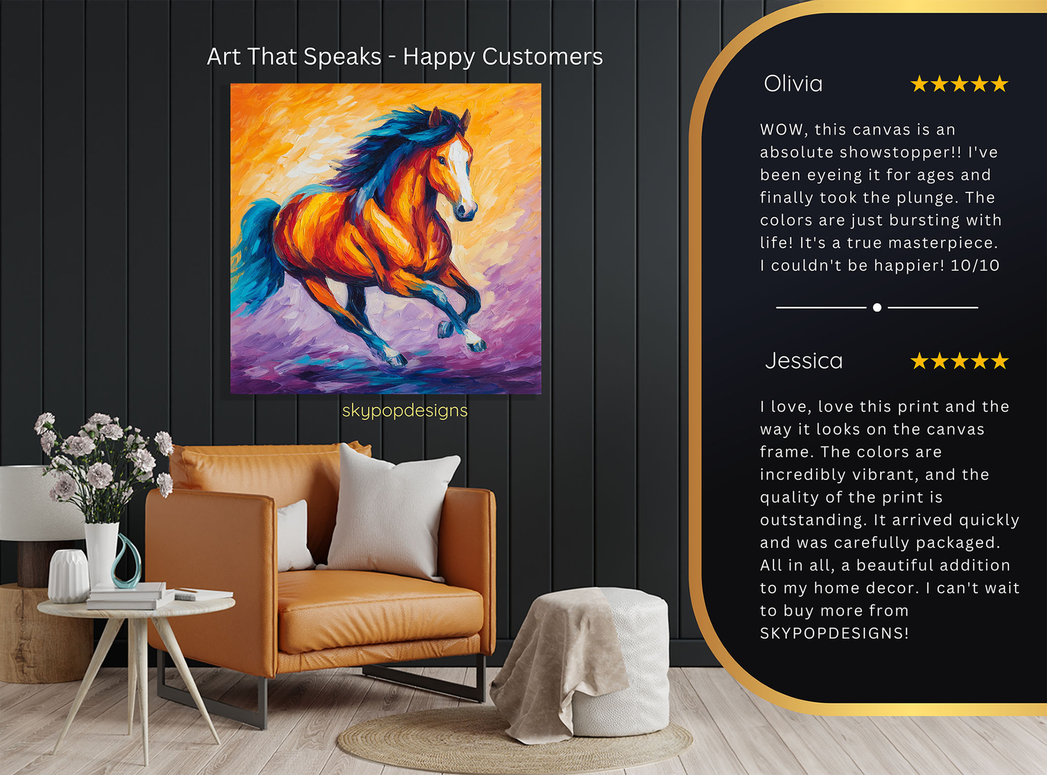 At SKYPOPDESIGNS, we specialize in high-quality canvas and poster prints designed to bring sophistication and style to your space. Please note that our designs are not created with 3D textures or as original oil, acrylic, or watercolor paintings; they are instead HD reproductions of original artwork. This approach allows us to offer these visually stunning pieces at competitive prices, ensuring you receive top-tier, maintenance-free art that’s easy to enjoy.