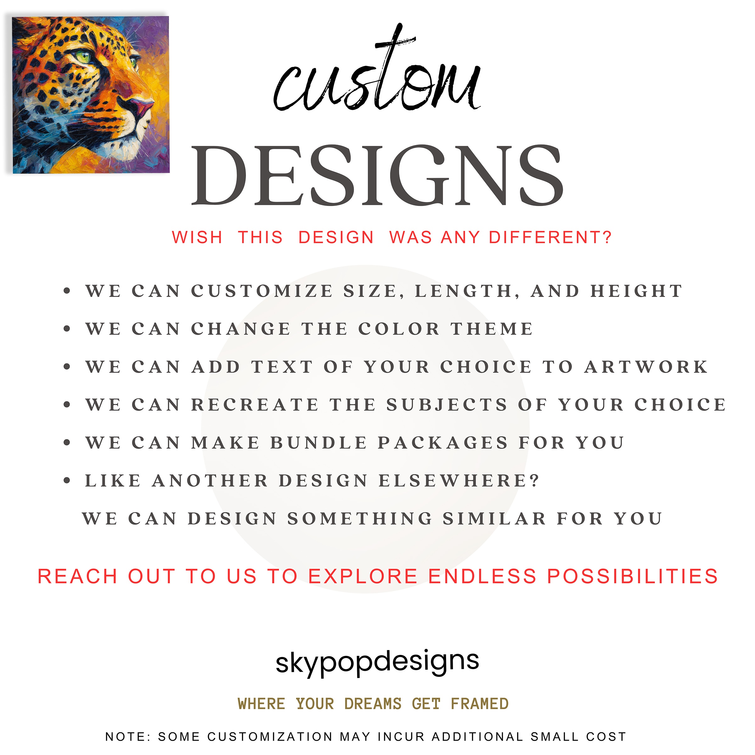 Welcome to SKYPOPDESIGNS, where we blend art, precision, and affordability. Our collection showcases stunning, high-quality images meticulously printed on canvas or posters, ensuring a flawless and consistent finish that captures the essence of various art styles.