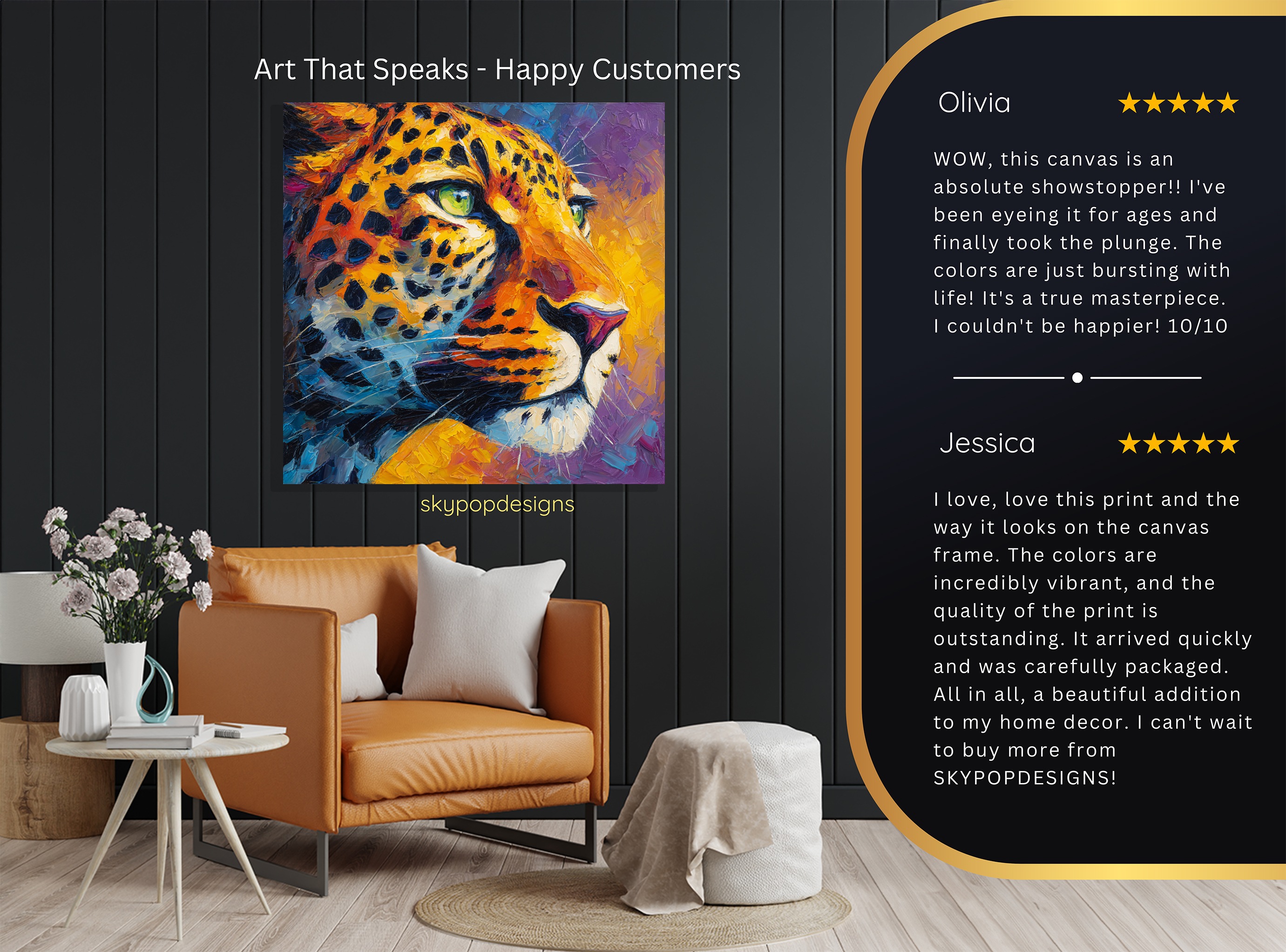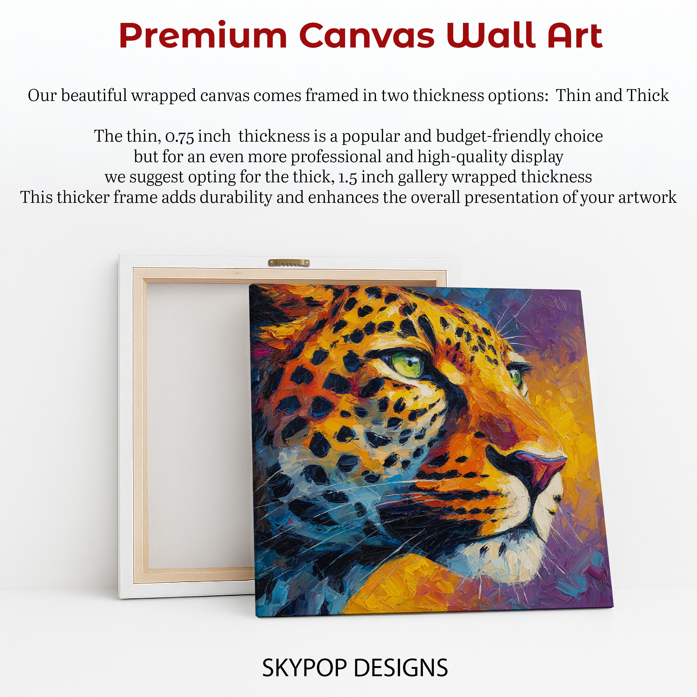 At SKYPOPDESIGNS, we specialize in high-quality canvas and poster prints designed to bring sophistication and style to your space. Please note that our designs are not created with 3D textures or as original oil, acrylic, or watercolor paintings; they are instead HD reproductions of original artwork. This approach allows us to offer these visually stunning pieces at competitive prices, ensuring you receive top-tier, maintenance-free art that’s easy to enjoy.