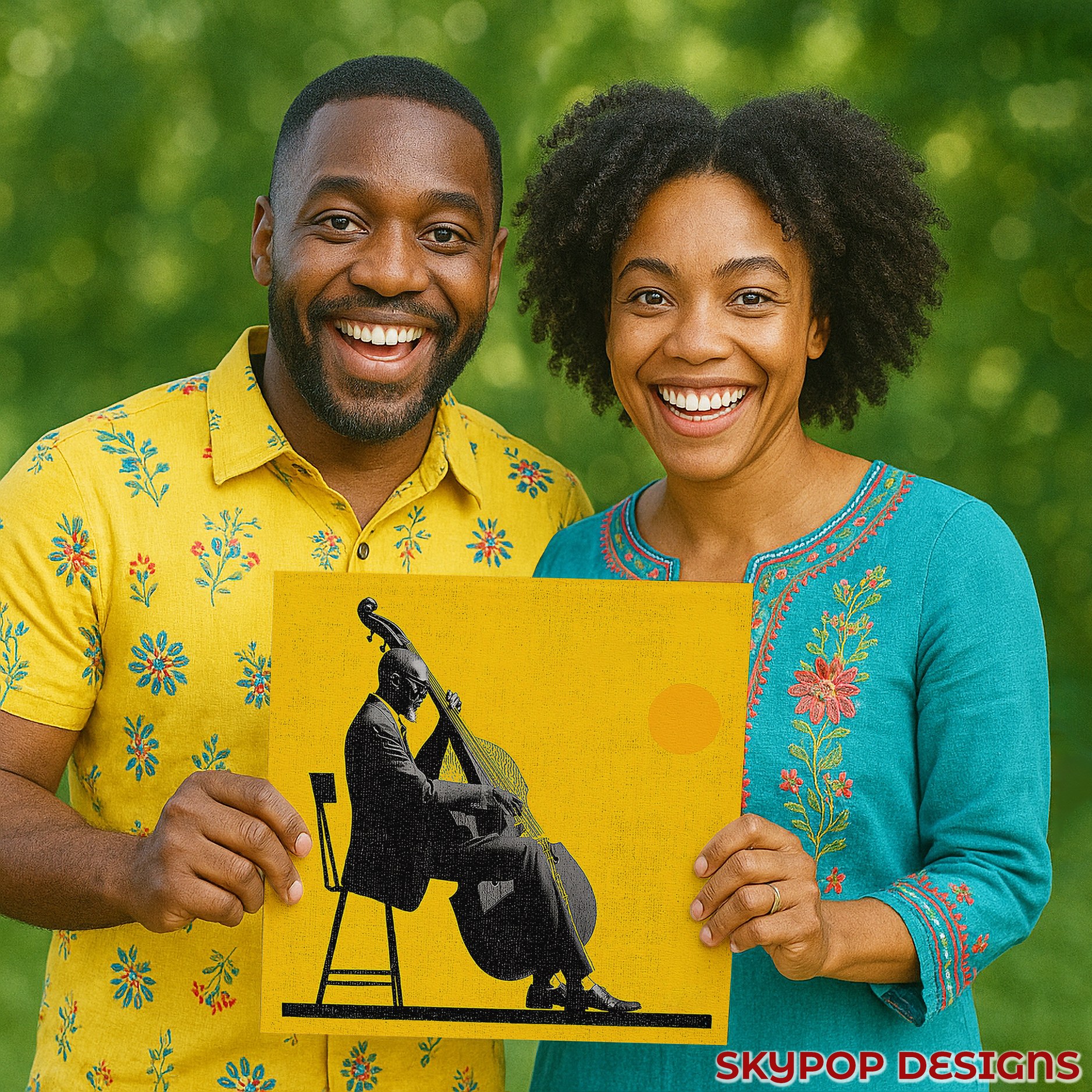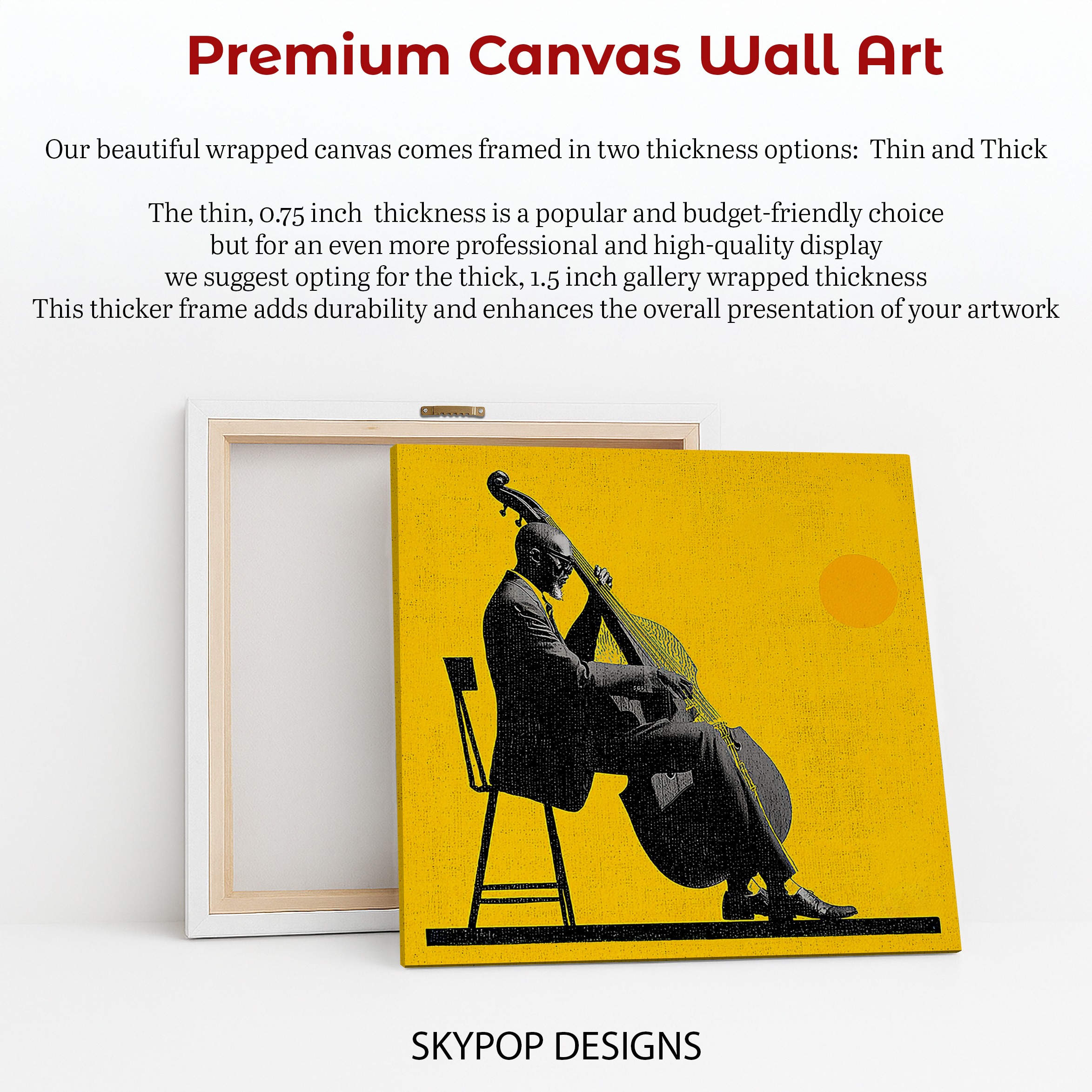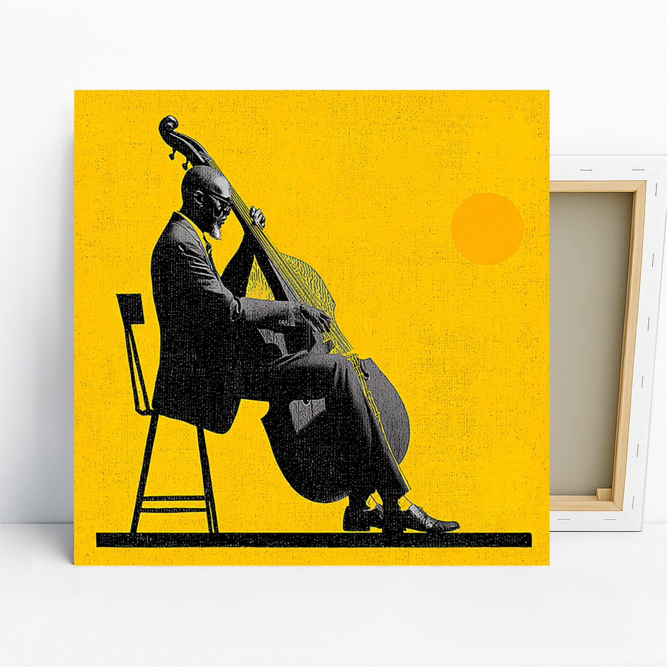 Elevate your space with this striking jazz-inspired canvas wall art featuring a silhouetted bass player against a vibrant yellow background. This eye-catching poster captures the essence of vintage jazz, perfect for music lovers and art enthusiasts alike. The bold contrast between the black figure and the sunny yellow backdrop creates a visually stunning piece that instantly draws attention in any room. Ideal for contemporary living rooms, home offices, or dining areas, this canvas art adds a touch of sophistication and rhythm to your decor. The minimalist design celebrates the artistry of jazz, making it a fantastic conversation starter for dinner parties or gatherings. Transform your walls with this homage to musical heritage, expertly balancing retro charm with modern aesthetics. The large-scale instrument and player silhouette convey a sense of movement and energy, bringing the spirit of live jazz performance into your home. This versatile artwork complements various interior styles, from sleek modern to eclectic bohemian. Whether you’re a music aficionado or simply appreciate powerful wall art, this canvas poster offers a timeless appeal that resonates with viewers. Create a focal point in your space that celebrates creativity, rhythm, and the enduring legacy of jazz. Enhance your home’s ambiance with this captivating piece of music-inspired art today.