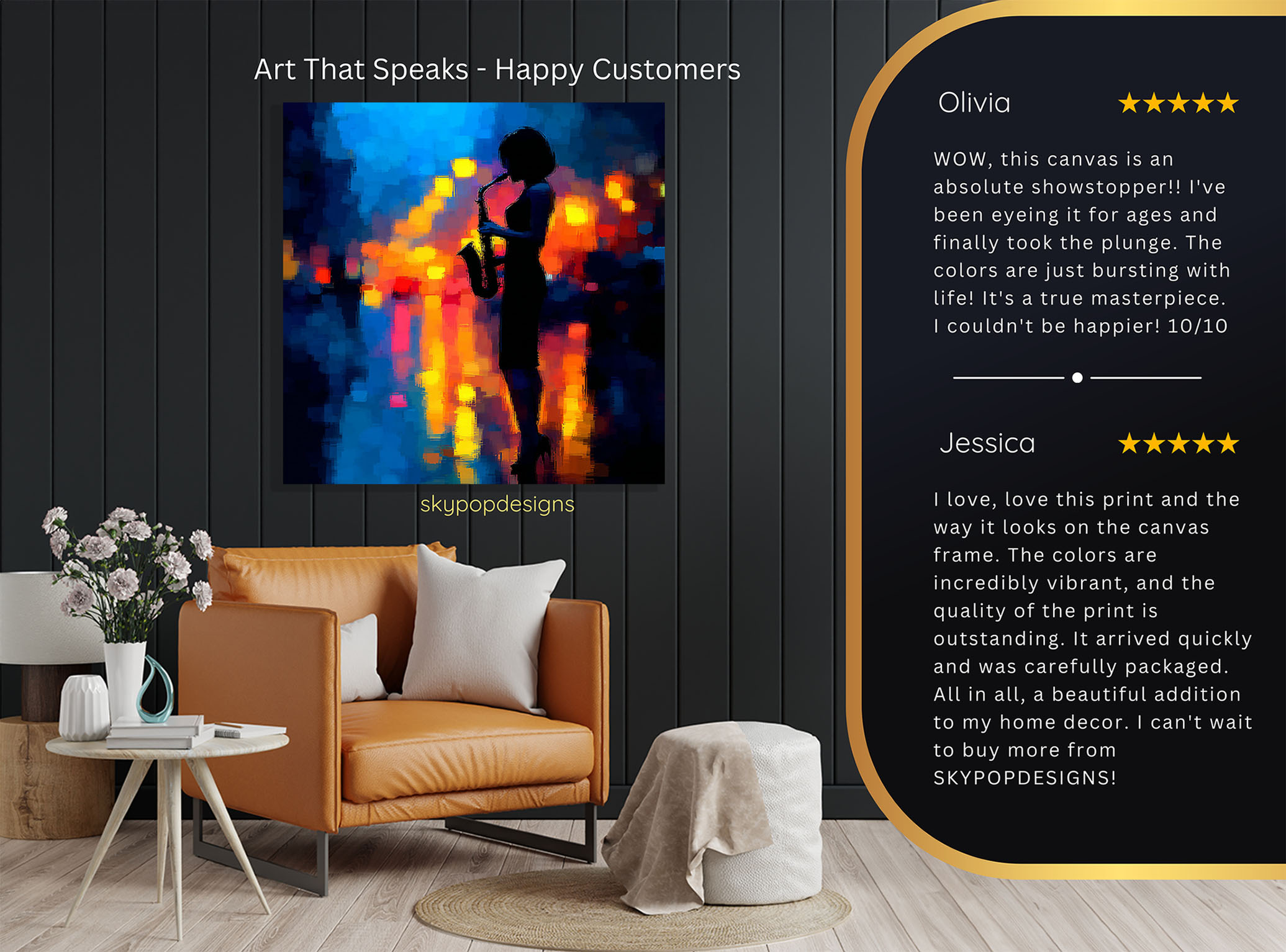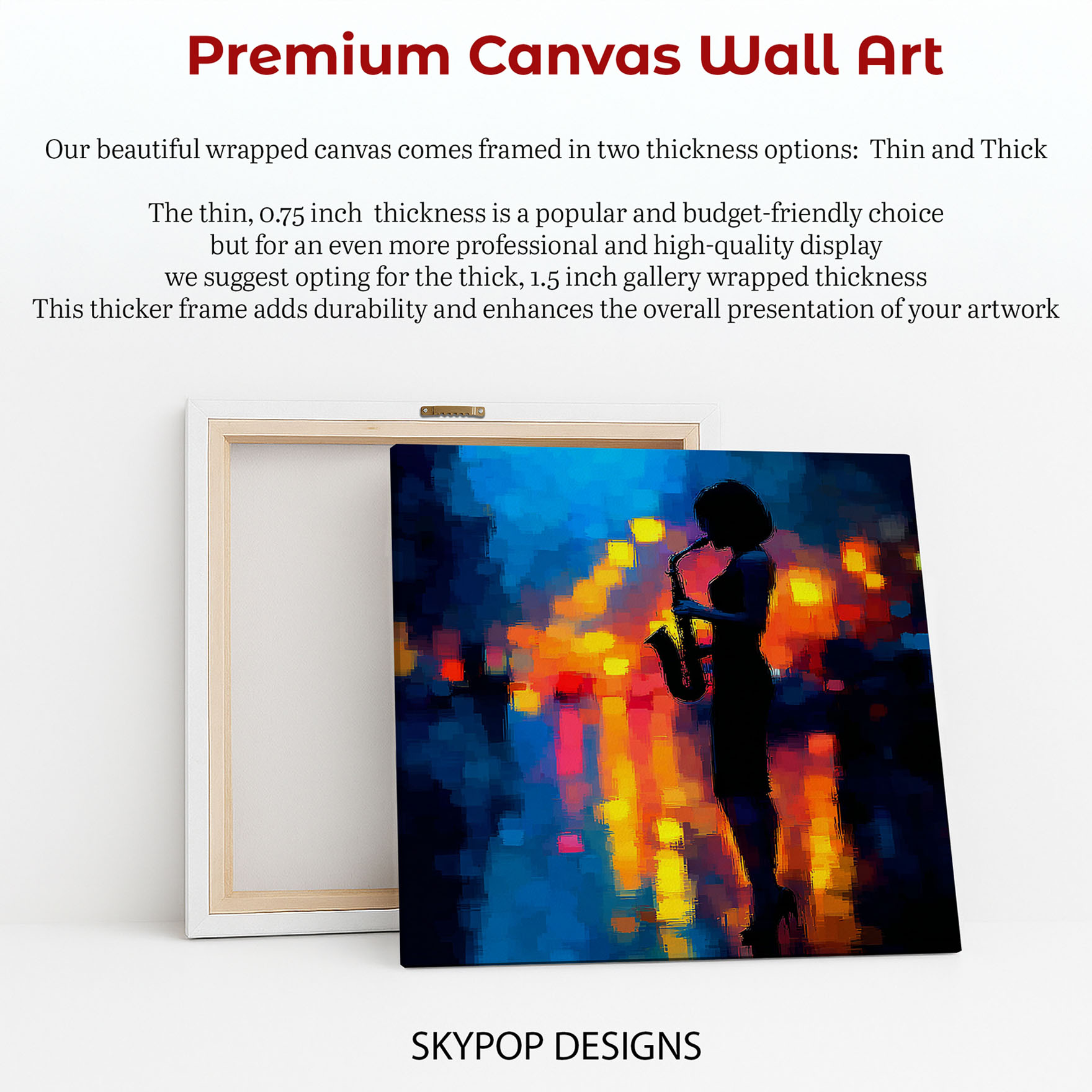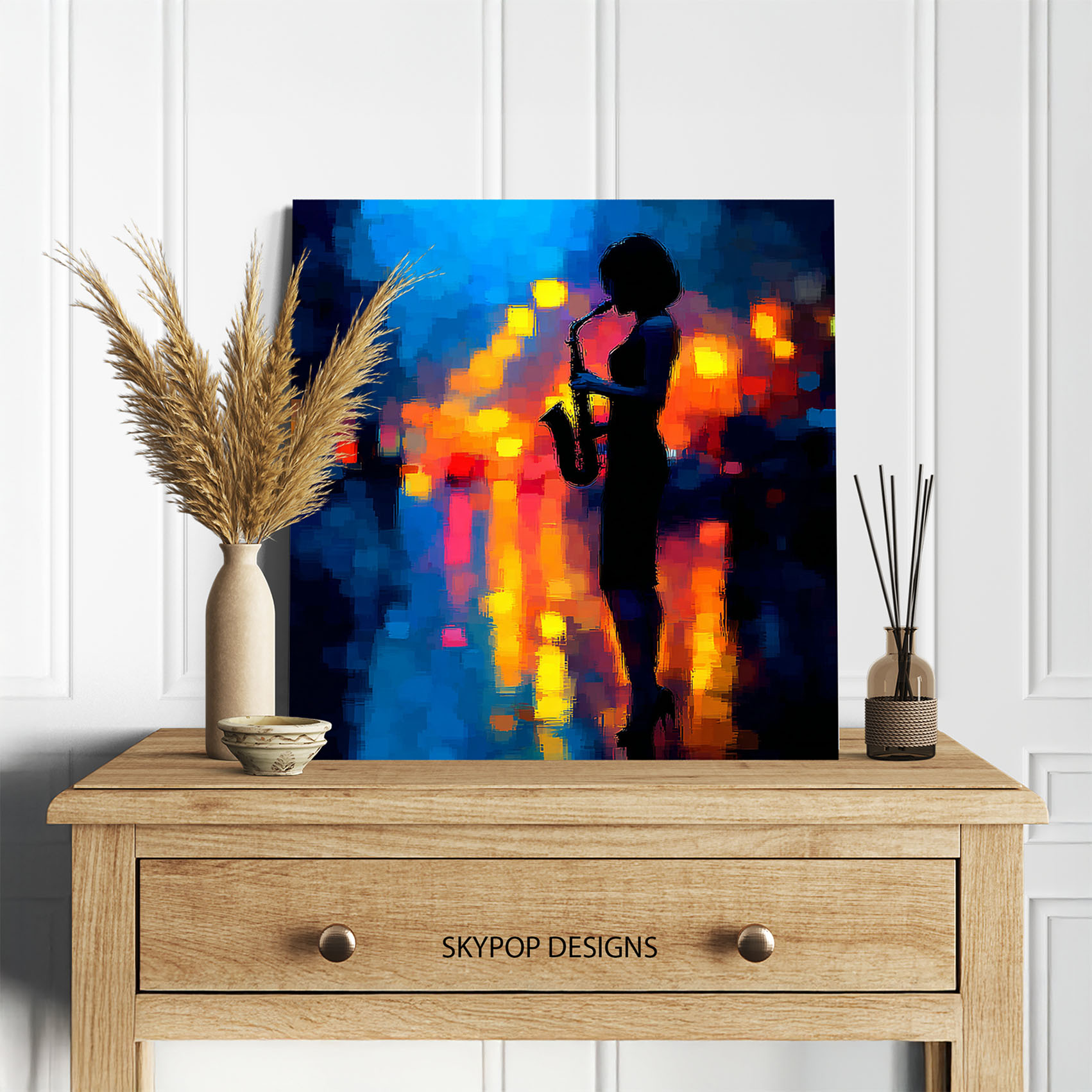 Capture the soulful rhythm of the night with this captivating jazz canvas wall art, featuring a silhouetted saxophonist against a vibrant urban backdrop. This stunning poster or canvas wall art transforms any space into a sophisticated musical escape, perfect for modern living room wall decor or creating an exciting entryway vibe. The striking combination of deep blues, fiery oranges, and radiant yellows evokes the electrifying atmosphere of a late-night jazz club, infusing your home with energy and passion. Ideal for bohemian interiors willing to add a pop of color or glam decor for a touch of sophisticated allure, this music art piece is a conversation starter. High-quality printing ensures the textured, abstract background and the sharp silhouette pop with incredible detail, making this canvas wall art a dynamic focal point. This versatile artwork transcends traditional decor, making it an excellent choice for a home theater, a stylish bar area, or an inspiring office. It’s a perfect gift for music lovers, musicians, or anyone looking to add a touch of artistic flair to their home for birthdays or holidays. Elevate your home’s ambiance with this striking piece of wall art that celebrates the power and beauty of jazz music. Bring the captivating energy of a live performance into your home with this unforgettable canvas artwork. Add this eye-catching poster or canvas wall art to your collection and let the melody fill your rooms.