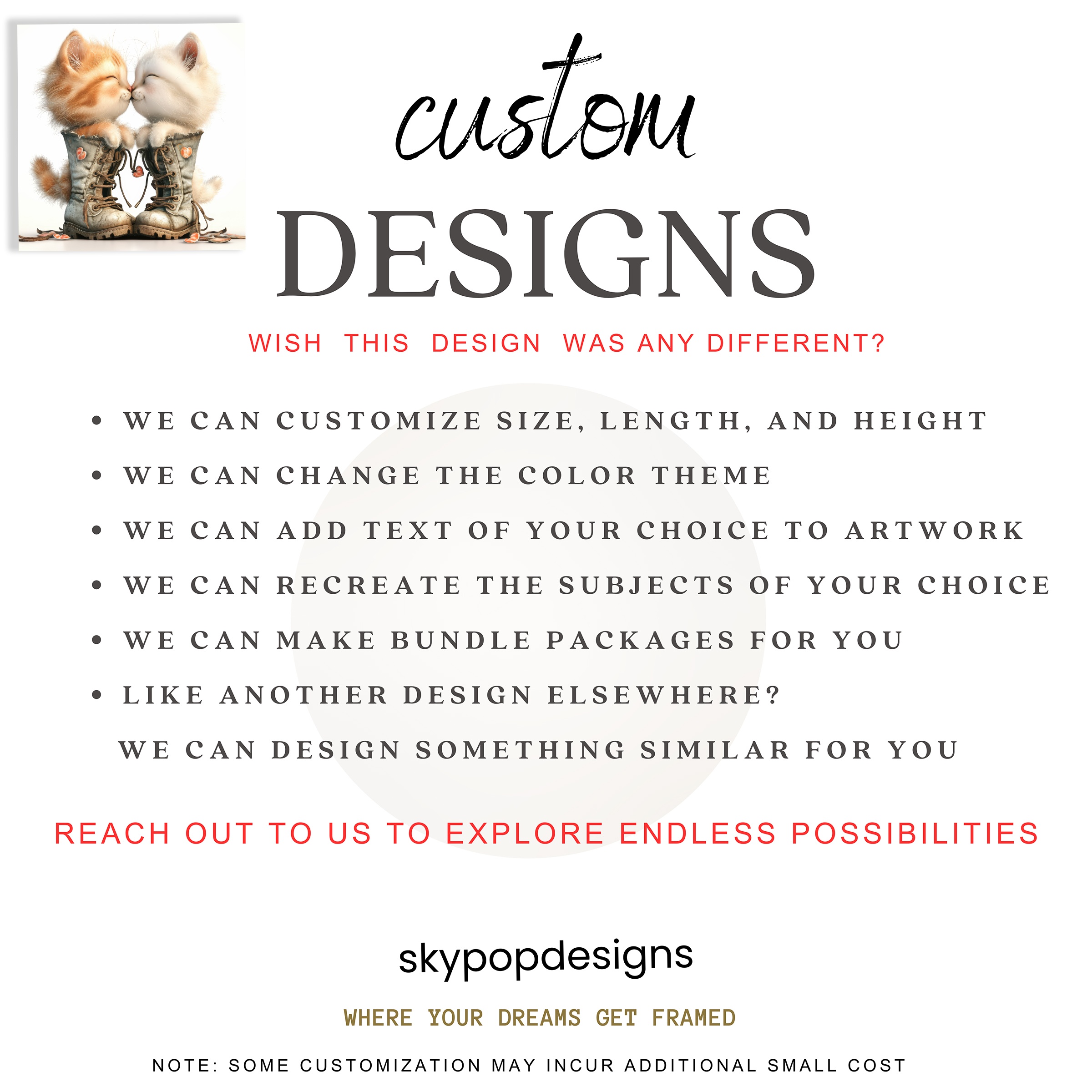Looking for a custom design, or do you love a particular design but need it in a different size or orientation? Perhaps you’ve found a design elsewhere and wish for us to create something similar for you? Drop us a message! We’re dedicated to meeting your needs and will work closely with you to ensure your vision comes to life.