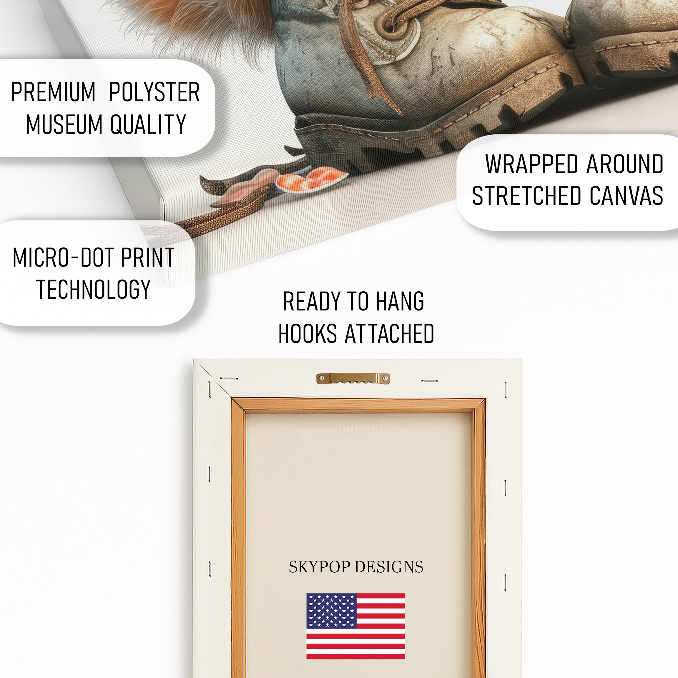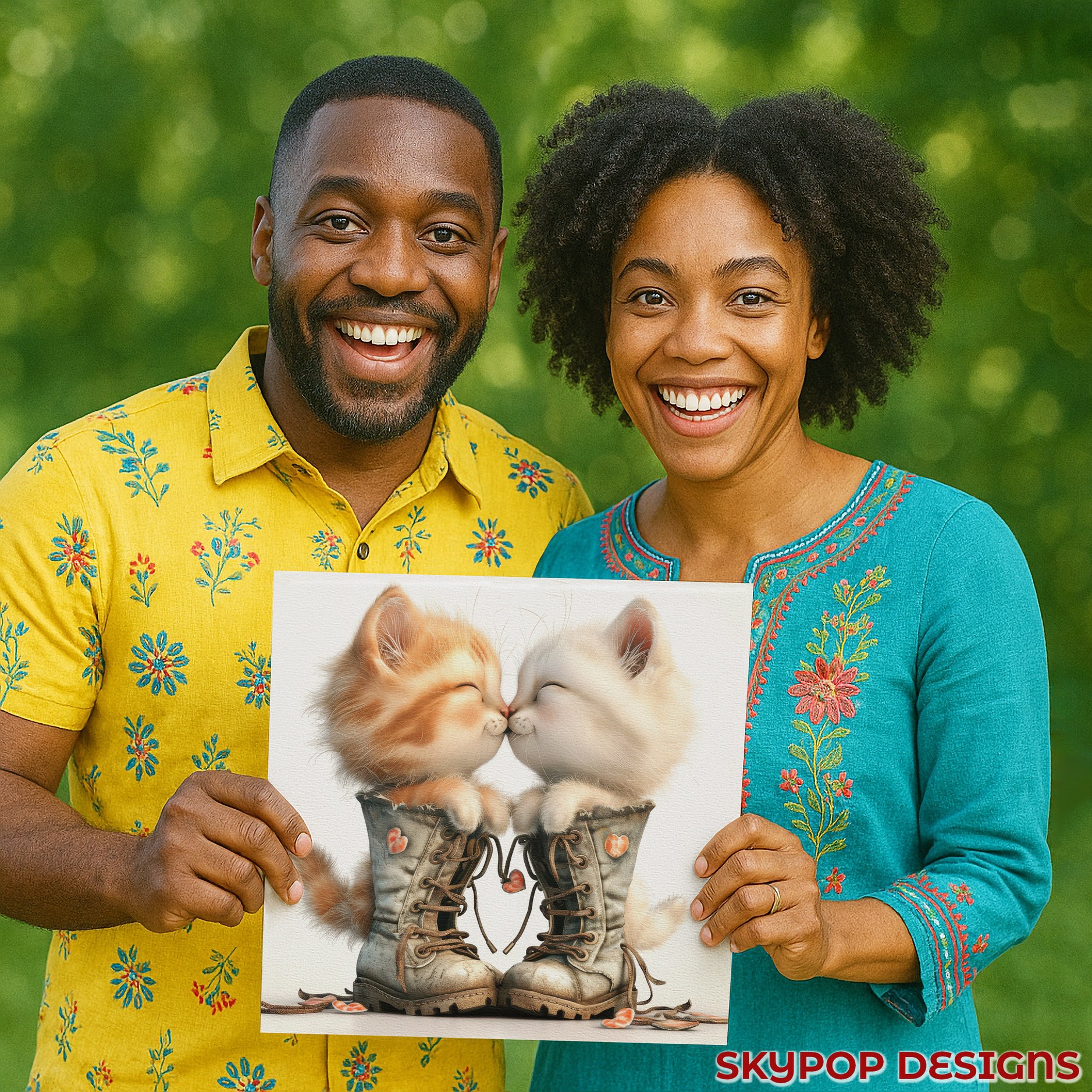 Keywords: Kitten Canvas Art, Animal Wall Art, Whimsical Art, Cat Lover Gift, Rustic Home Decor, Farmhouse Bedroom Art, Bohemian Living Room, Nursery Wall Decor, Multicolor Art Print, Brown and White Art, Cute Kitten Poster, Love Boots Art, Pet Wall Decor, Cozy Atmosphere, Heartwarming Art, Sentimental Gifts, Children’s Room Decor, Playful Charm, Housewarming Gift, Contemporary Art, Animal Companionship, Soft Colors Art, High-Quality Canvas, Unique Wall Art, Blissful Moments, Adorable Art, Romantic Art, Pet Portrait, Sweet Sentiment, Joyful Decor