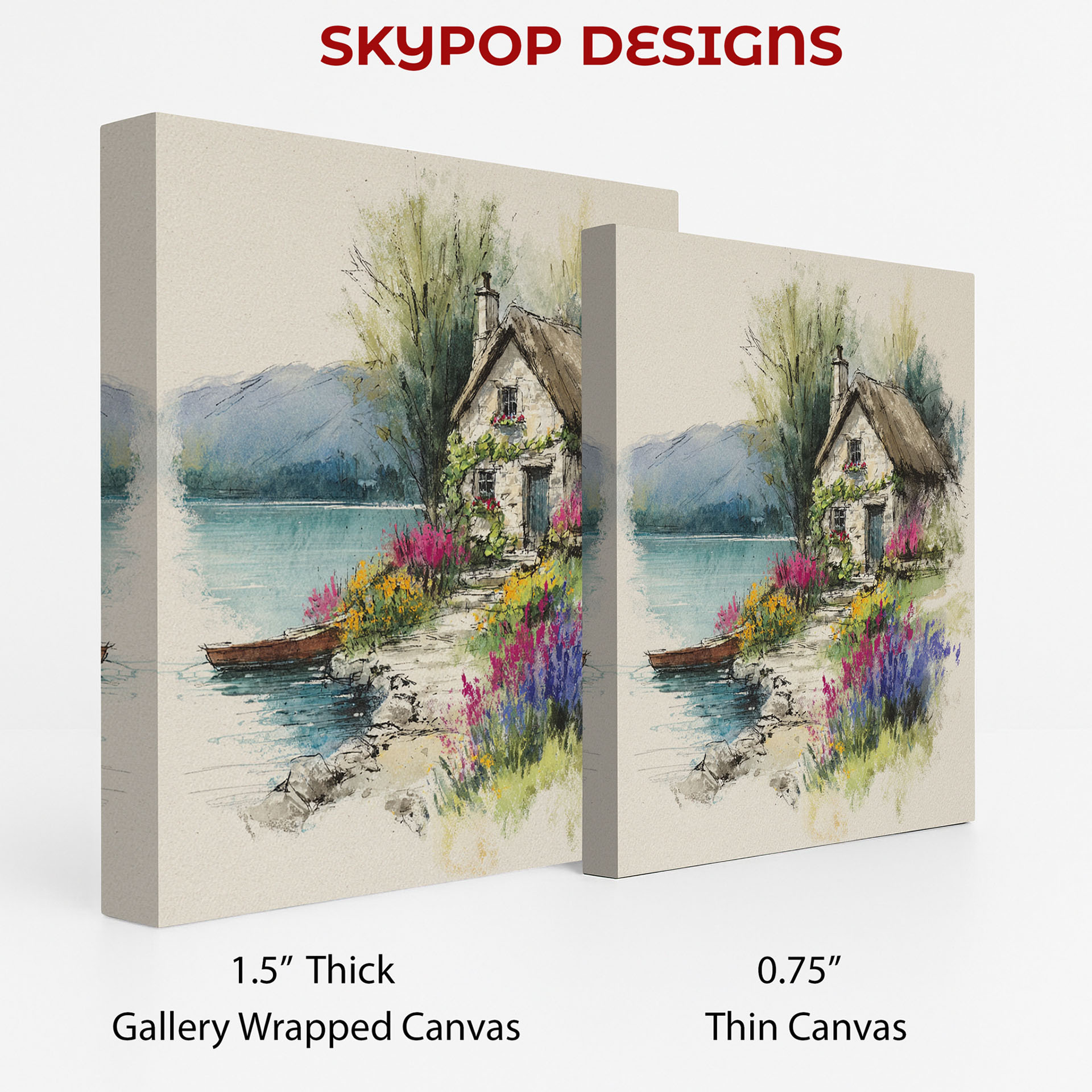 Bring the charm of a rustic getaway into your home with this enchanting lakeside cottage canvas wall art.