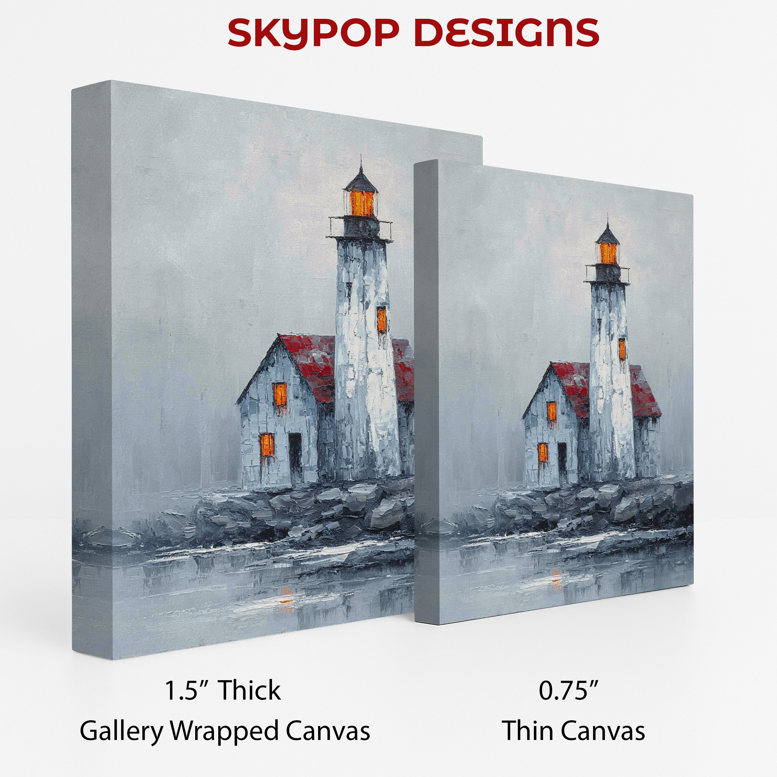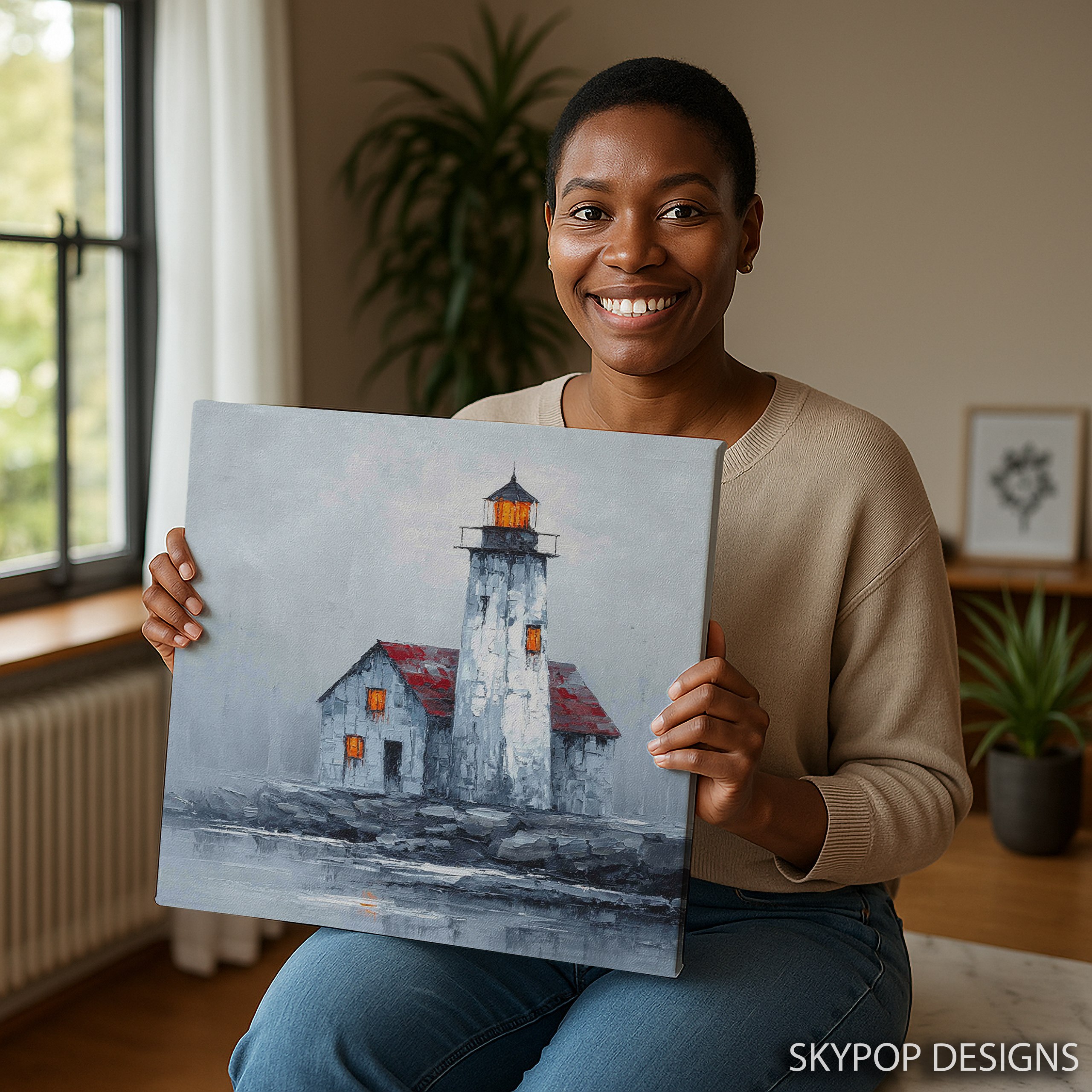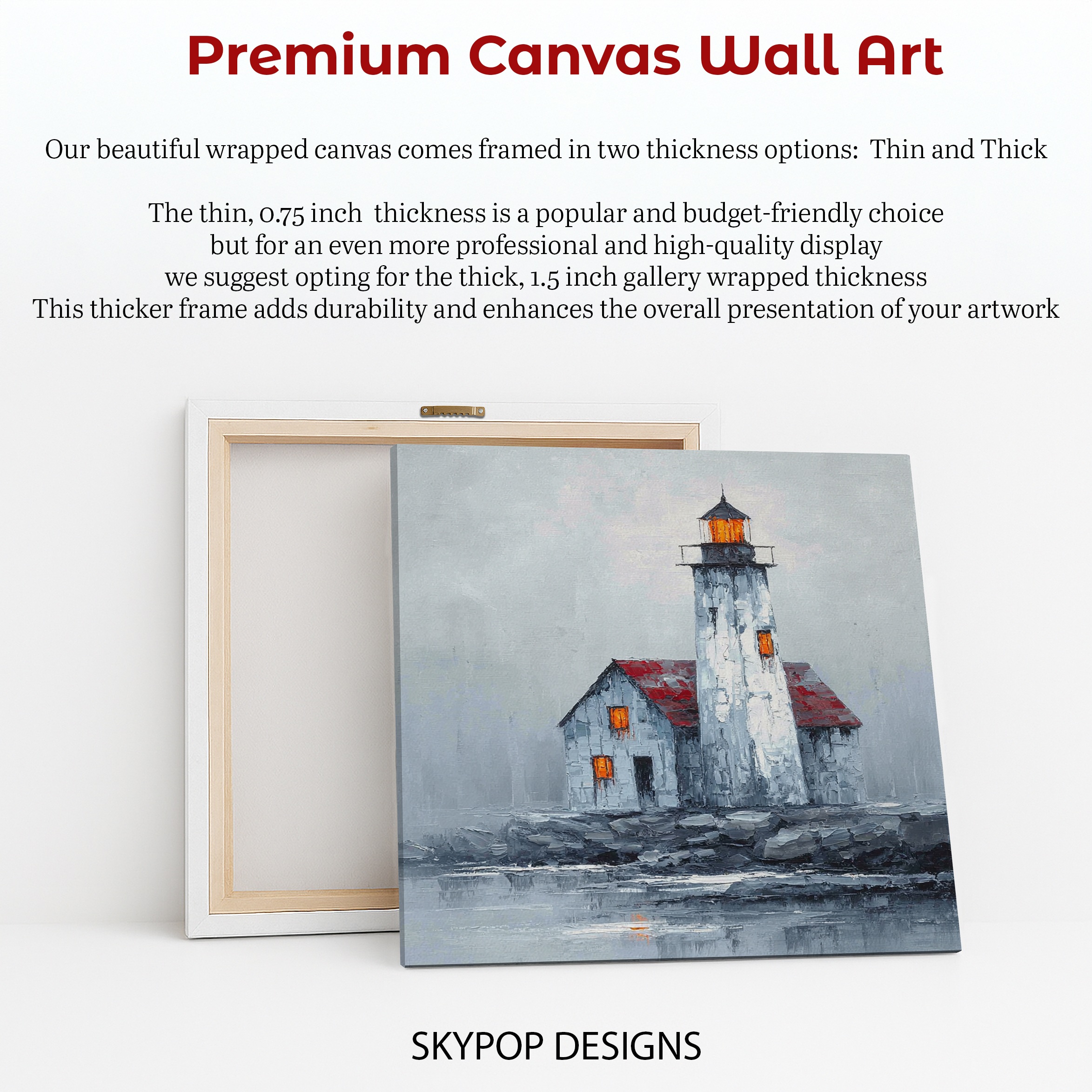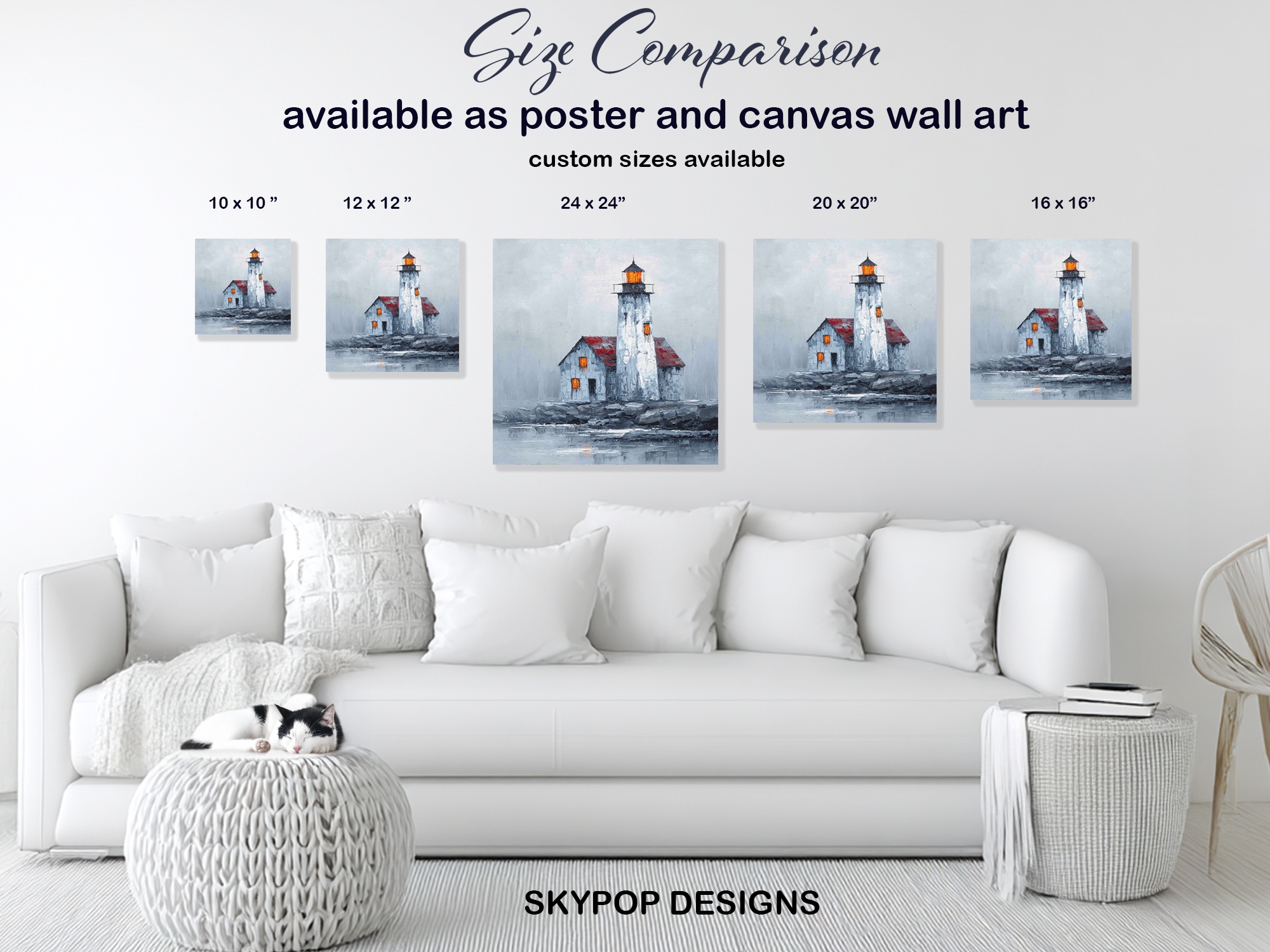 Illuminate your space with this striking lighthouse canvas wall art, capturing the timeless allure of coastal living. This captivating poster transforms any room into a serene seaside retreat, perfect for those seeking a touch of maritime charm. The impressionistic brushstrokes bring the weathered lighthouse to life, its brilliant white tower standing tall against a misty grey backdrop. Vibrant splashes of orange from the warm beacon and glowing windows create a welcoming contrast, drawing the eye and evoking a sense of safety and guidance. Ideal for coastal-inspired living rooms or as a focal point in a nautical-themed bedroom, this canvas art adds depth and character to your decor. The rustic red roof and rocky shoreline enhance the authentic, weathered feel, making it a perfect fit for traditional or farmhouse interiors. Whether you’re decorating a beach house or bringing coastal vibes to an urban apartment, this versatile piece adapts beautifully to various styles. As a thoughtful housewarming gift or a personal indulgence, this lighthouse artwork inspires calm and reflection. The high-quality printing ensures every textured brushstroke is preserved, allowing you to appreciate the artist’s technique up close. Elevate your home office with this serene seascape or create a welcoming entryway that hints at adventures to come. Transform your living space today with this timeless lighthouse canvas art, a beacon of style and tranquility for any home.