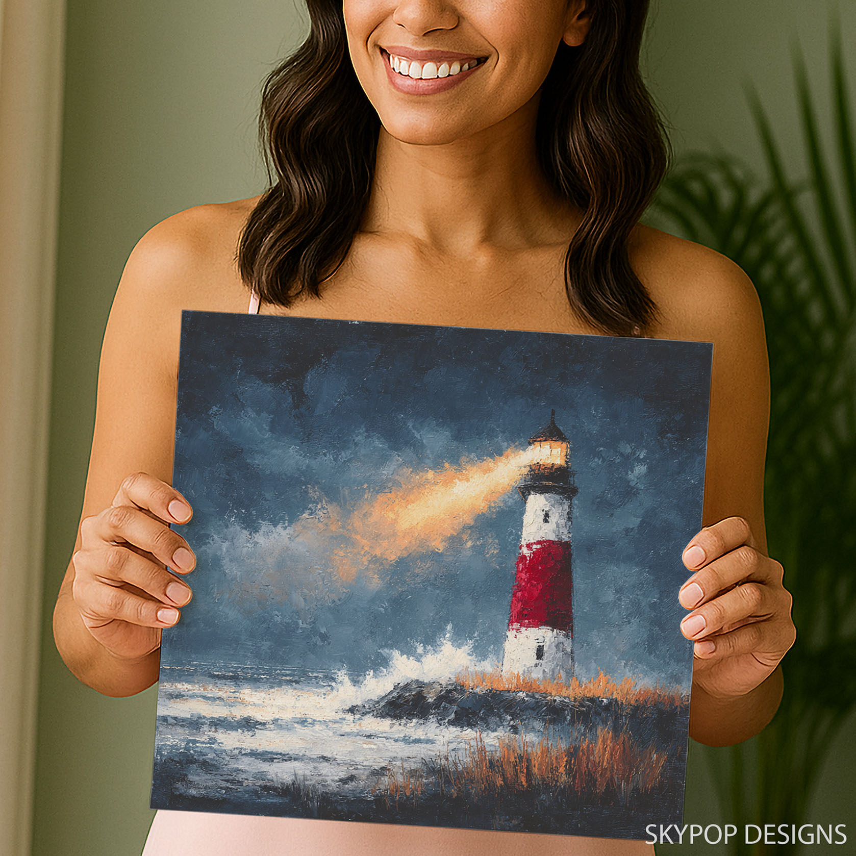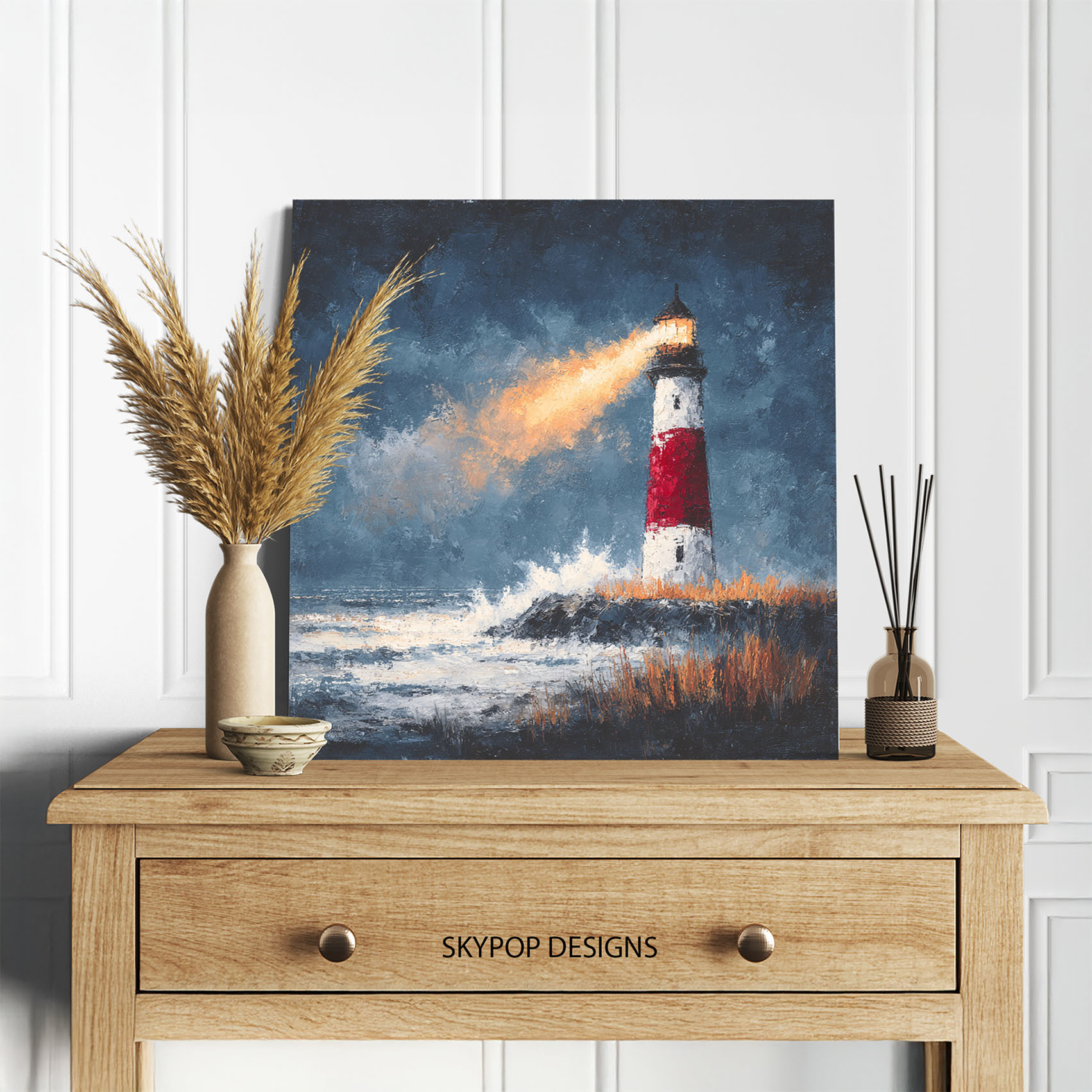 Illuminate your living space with this striking lighthouse canvas wall art, a powerful symbol of guidance and hope. This poster or canvas wall art perfectly captures the dramatic coastal scene with a vibrant beam cutting through stormy skies, transforming any room into a captivating seascape. The rich blues, greys, and whites create a dramatic atmosphere, while the warm light of the beacon adds a touch of reassurance, making it ideal for creating a serene bedroom or a welcoming entryway. This piece enhances coastal and traditional decor styles, bringing the enduring charm of the seaside into your home. The textured brushstrokes and bold imagery offer a stunning focal point, providing a sense of depth and movement that draws the eye. Perfect for those who love nature art and classic maritime themes, this canvas wall art is a versatile addition to rustic interiors as well. It’s an ideal gift for housewarmings, birthdays, or holidays for anyone who appreciates the allure of the ocean. High-quality printing ensures every detail of this captivating scene is rendered with clarity and brilliance, making it a standout piece of wall decor. Elevate your home with this inspiring lighthouse artwork that evokes feelings of strength and steadfastness. Make this breathtaking canvas print a cornerstone of your home decor collection today.