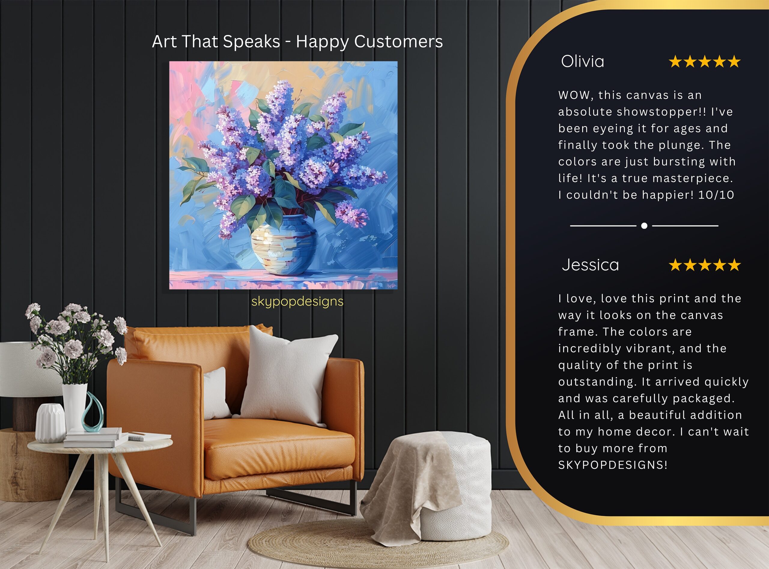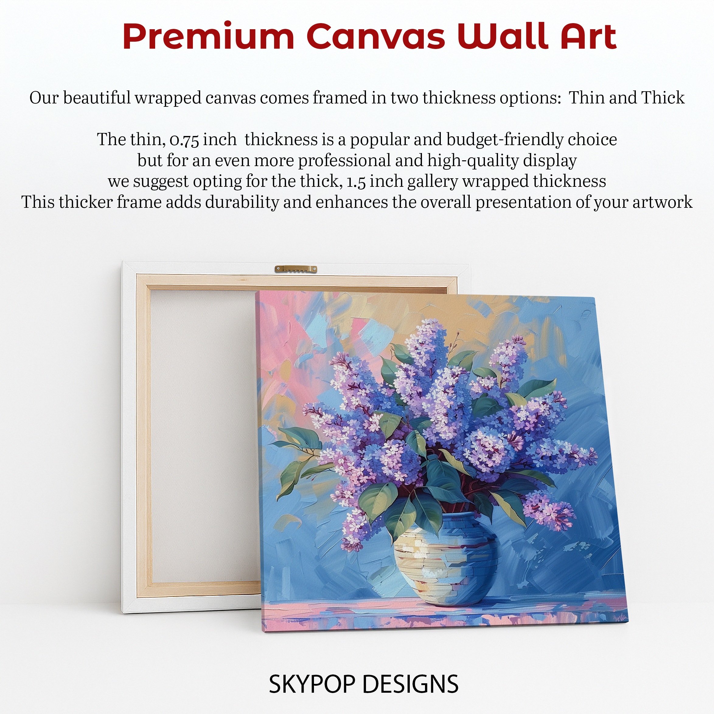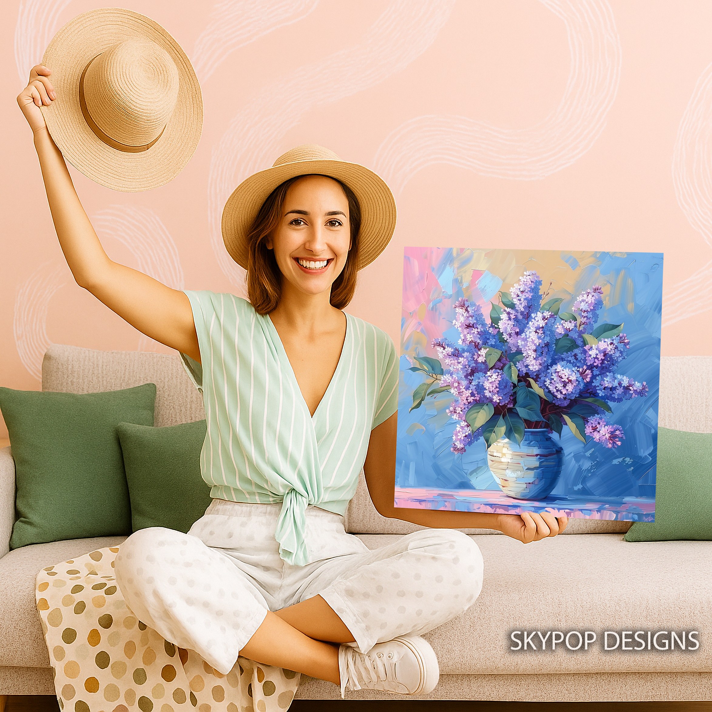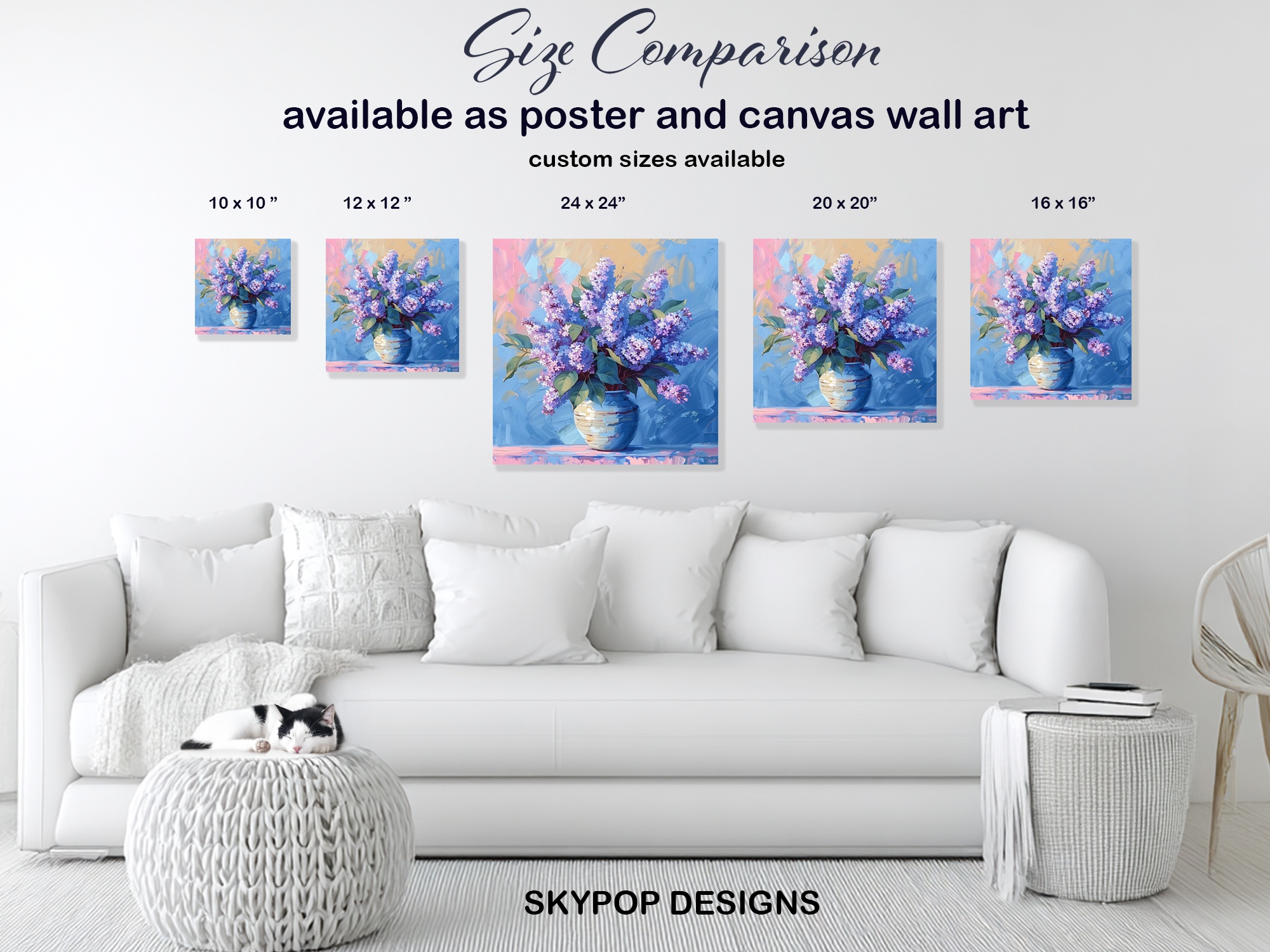 Transform your home with this exquisite Lilac canvas wall art, capturing the delicate beauty of spring blooms in a vibrant impressionistic style. This striking poster or canvas wall art is perfect for refreshing your modern living room decor, adding a serene touch to a bedroom, or brightening up a dining room. The captivating blend of blues, purples, and subtle pinks evokes a sense of calm and renewal, making it ideal for Scandinavian or bohemian settings. This floral artwork showcases the essence of lilac flowers, symbolizing enchantment and first love, adding a touch of natural elegance to any space. The textural brushstrokes of this impressionistic art create depth and visual interest, ensuring this canvas wall art is a stunning focal point. High-quality printing preserves the vibrant colors and intricate details of the lilac blossoms and their lush green leaves. This versatile wall art piece is excellent for hallways, creating an inviting and cheerful atmosphere for guests, or as a beautiful addition to your kitchen or entryway. It makes a thoughtful gift for housewarmings, birthdays, or Mother’s Day, bringing lasting beauty and joy. The rich color palette complements a variety of interior design trends, from minimalist to more eclectic styles. Elevate your interior design with this stunning floral canvas wall art that merges classic floral motifs with contemporary artistic expression. Make this breathtaking lilac artwork the highlight of your wall decor collection today.
