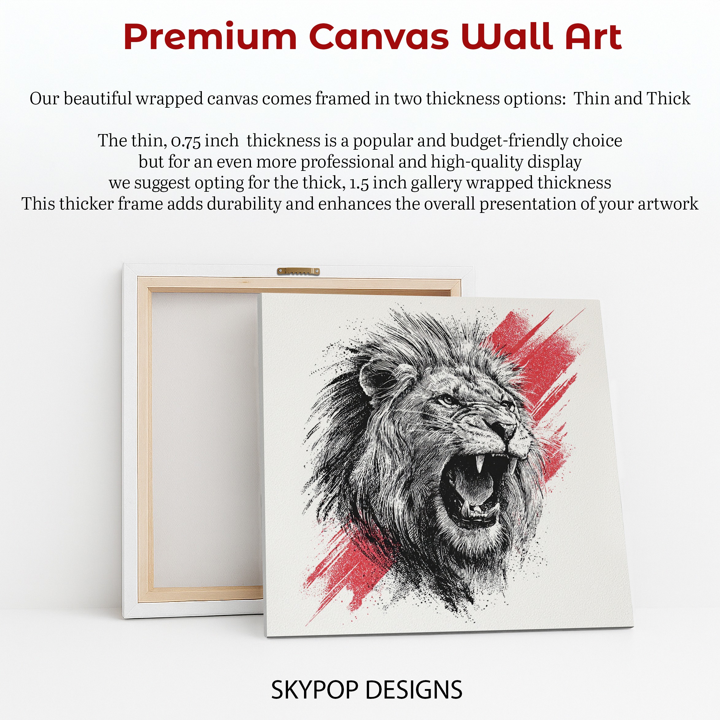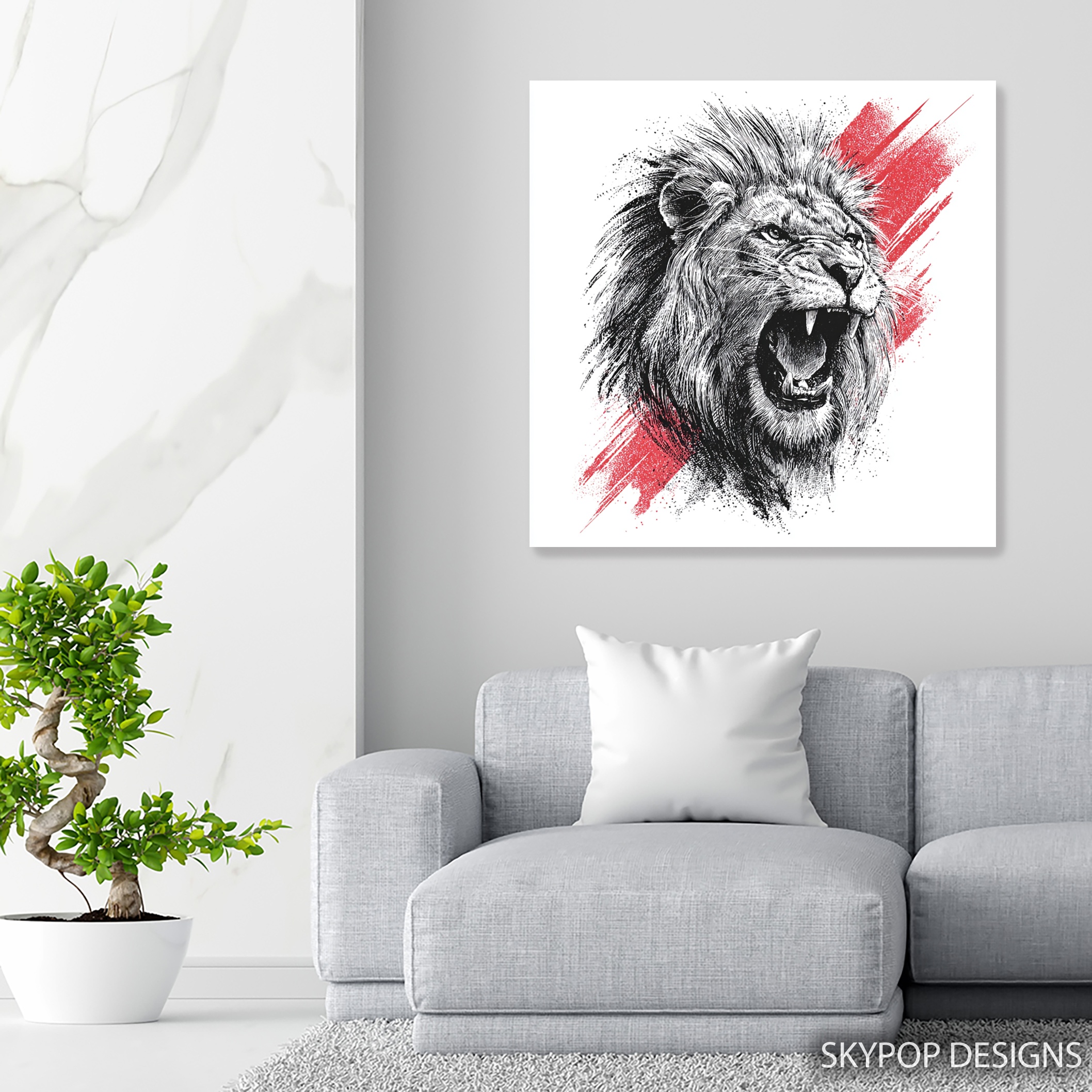 Make a bold statement with this striking lion canvas wall art that commands attention in any room. The powerful black and white portrait of a roaring lion, accented with dynamic red brushstrokes, creates an intense focal point that instantly elevates your space. Perfect for modern living rooms or urban-inspired offices, this contemporary animal art piece combines raw energy with sleek design. The lion’s fierce expression and detailed mane capture the essence of strength and courage, making it an inspiring addition to your home or workspace. Ideal for minimalist decor enthusiasts, this canvas poster adds drama and personality without overwhelming your existing style. The contrasting red accents inject vitality into the monochrome artwork, symbolizing passion and determination. Whether displayed in a stylish bedroom, motivational home gym, or edgy game room, this versatile wall art adapts to various interior themes. High-quality printing ensures every intricate detail of the lion’s face and texture is preserved, from the penetrating eyes to the individual whiskers. This artwork serves as a conversation starter and a daily reminder of inner strength. Transform your walls with this captivating blend of nature and urban art that celebrates the wild spirit within. Enhance your decor with this fierce lion canvas art today and feel the energy it brings to your space.