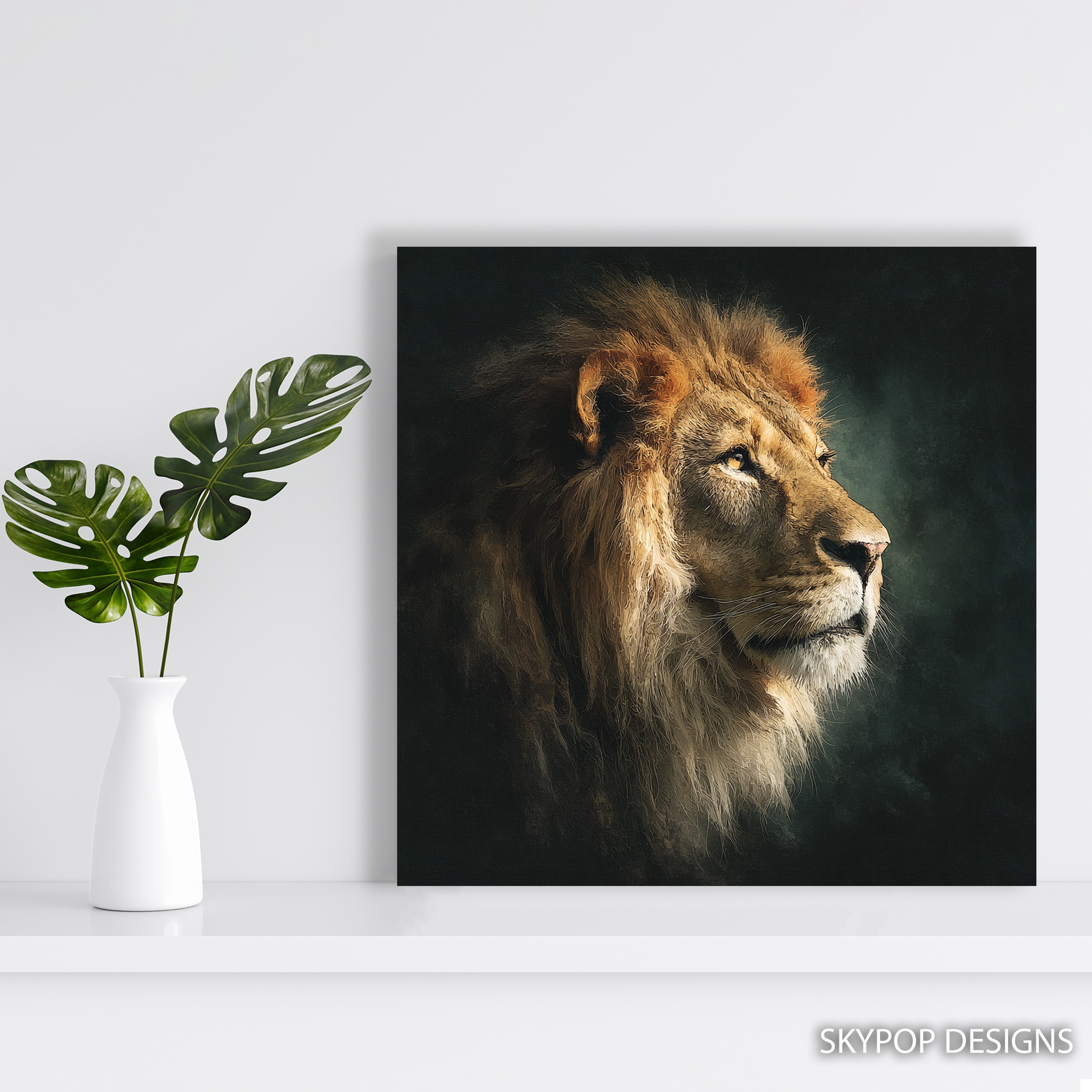 Elevate your space with this stunning lion canvas wall art, featuring a majestic close-up portrait that commands attention. This striking piece transforms any room with its powerful presence and realistic detail. The golden hues of the lion’s mane contrast beautifully against the dark background, creating a dramatic focal point perfect for modern living room wall decor or an inspiring office space. The intense gaze of the lion captures the essence of strength and nobility, making this poster an ideal choice for those seeking to add a touch of wild elegance to their home. The fine details in the fur and facial features showcase the artistry and quality of this canvas print, ensuring it becomes a conversation starter in any setting. Whether displayed in a minimalist bedroom or a rustic dining room, this lion wall art adapts seamlessly to various decor styles. The earthy tones and natural subject matter make it an excellent choice for nature enthusiasts and animal lovers alike. This versatile piece works well as a standalone statement or as part of a gallery wall, offering flexibility in your decorating choices. Gift this impressive lion portrait to someone special or treat yourself to a daily dose of inspiration. With its timeless appeal and high-quality craftsmanship, this canvas art is sure to be a cherished addition to your home for years to come. Bring the wild into your living space and experience the transformative power of nature-inspired wall art today.