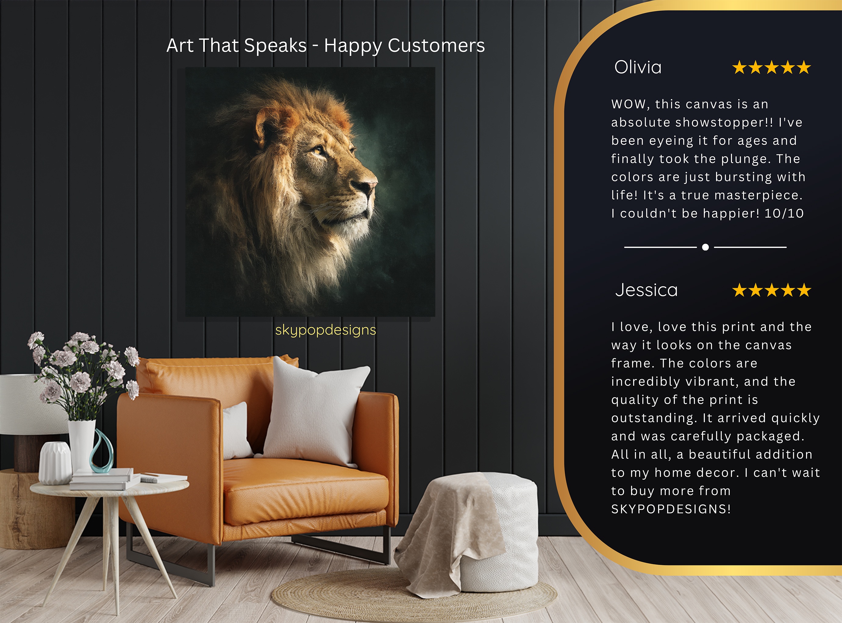 At SKYPOPDESIGNS, we specialize in high-quality canvas and poster prints designed to bring sophistication and style to your space. Please note that our designs are not created with 3D textures or as original oil, acrylic, or watercolor paintings; they are instead HD reproductions of original artwork. This approach allows us to offer these visually stunning pieces at competitive prices, ensuring you receive top-tier, maintenance-free art that’s easy to enjoy.
