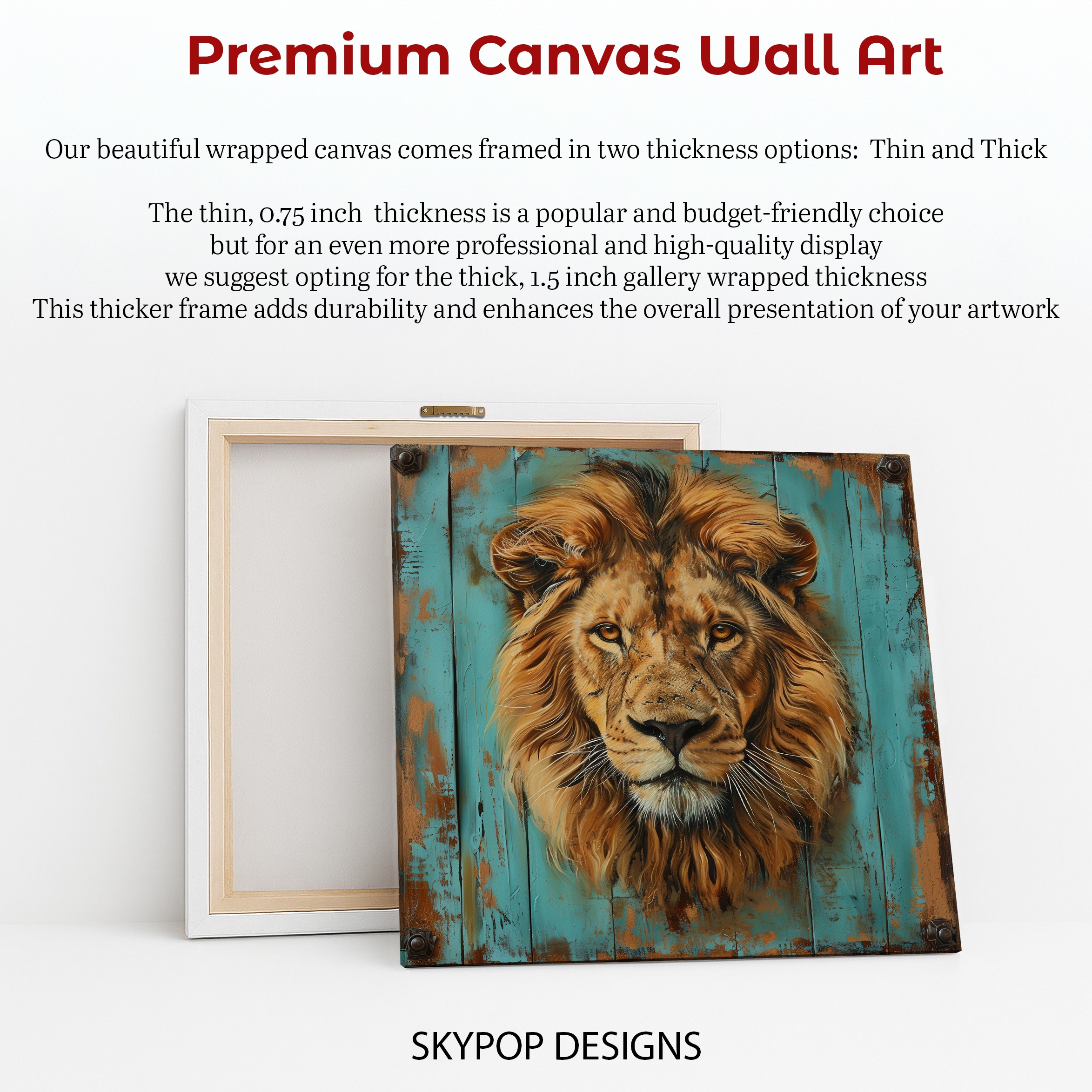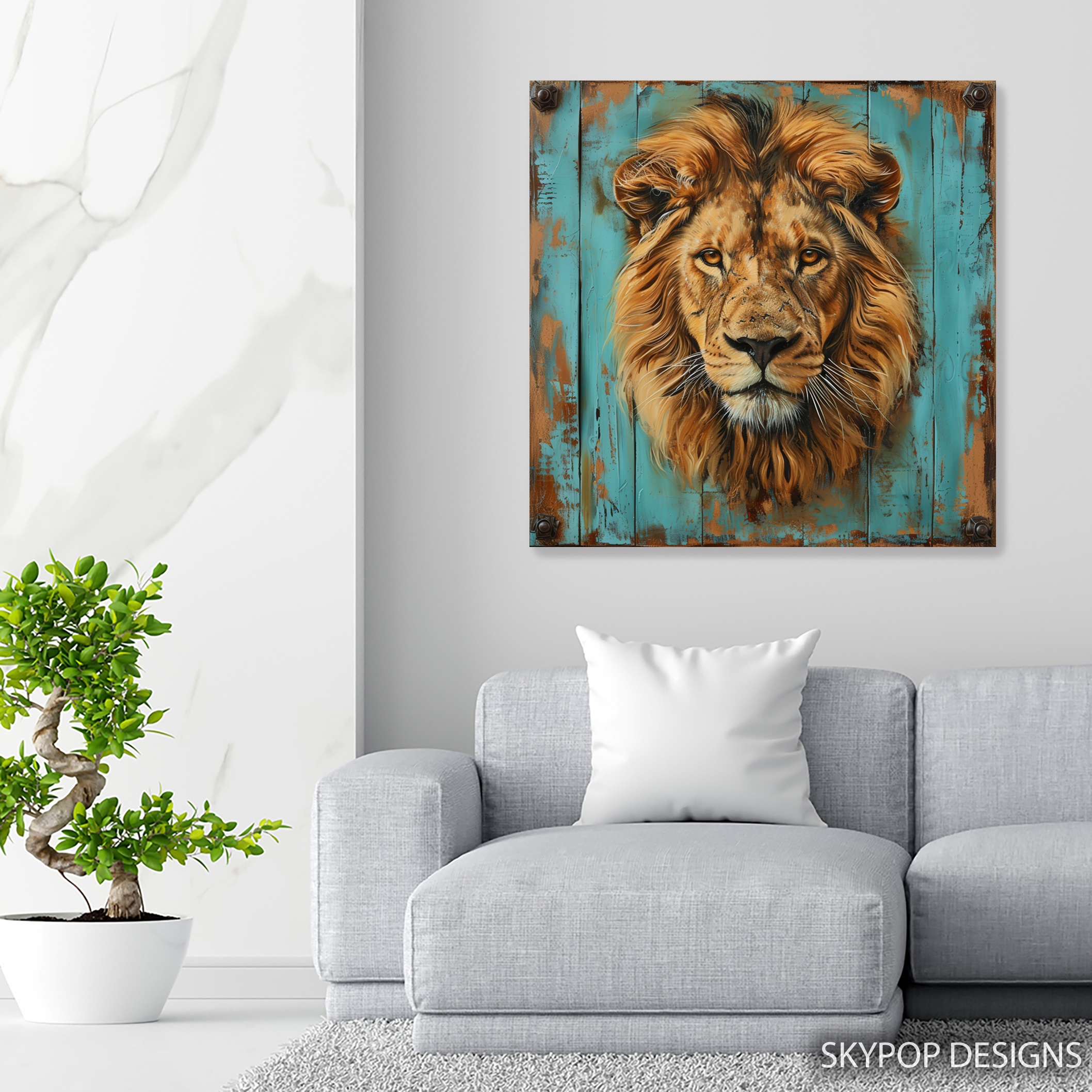 Keywords: Animal Art, Rustic Decor, Contemporary Art, Farmhouse Style, Living Room Decor, Bedroom Art, Entryway Art, Office Wall Art, Lion Wall Art, Brown Teal Art, Gold Accents, Black and White Art, Majestic Lion, Canvas Wall Art, Wildlife Decor, Animal Lover Gift, Nature Art, Home Decor, Modern Interiors, Rustic Charm, Housewarming Gift, Bold Wall Art, Statement Piece, King of the Jungle, Strength and Nobility, Inspiring Decor, Textured Art, High-Quality Print, Wildlife Artwork, Nature’s Beauty