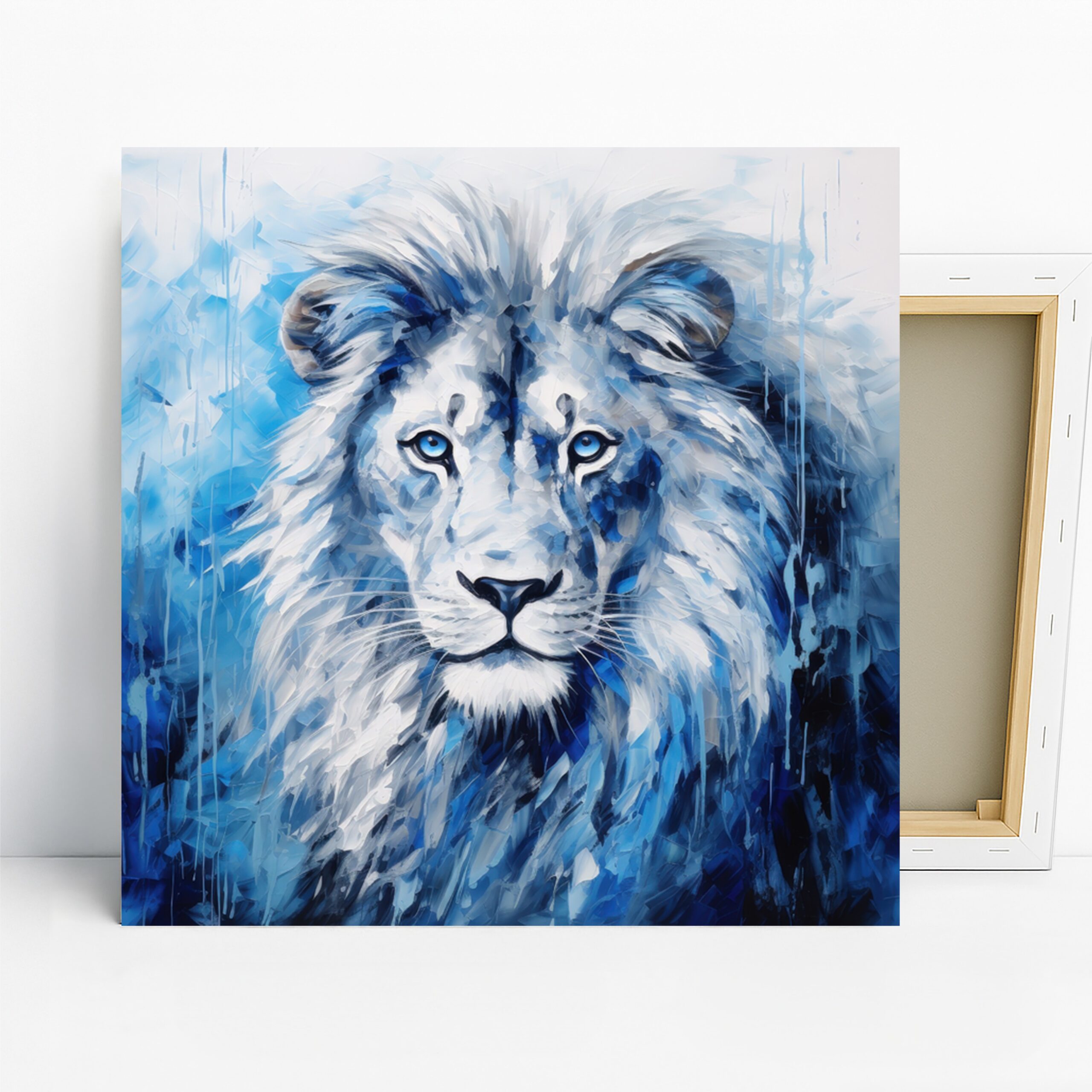 Transform any space with this stunning lion canvas wall art that captures the untamed spirit of the king of the jungle. The striking use of blue and white hues, blended with abstract brushstrokes, creates a captivating and powerful focal point for your decor. This powerful poster is perfect for adding a touch of modern elegance to your living room or creating an inspiring atmosphere in your office. The vibrant blues evoke a sense of calm and sophistication, while the detailed rendering of the lion’s features, particularly its piercing blue eyes, adds a dramatic flair. This canvas print is ideal for contemporary and minimalist decor styles, effortlessly elevating your interior design. It’s a fantastic piece of animal art that also works beautifully in transitional spaces like hallways or bedrooms. Printed on high-quality canvas, this artwork offers incredible detail and longevity, making it a standout choice for your wall decor. Whether you’re a wildlife enthusiast or simply appreciate bold, abstract designs, this lion wall art is sure to impress. Inspire your guests and enhance your home’s aesthetic with this breathtaking piece of abstract animal art. This versatile print is a thoughtful gift for birthdays, housewarmings, or any occasion to celebrate strength and beauty. Elevate your home with the commanding presence of this unique lion canvas art today.