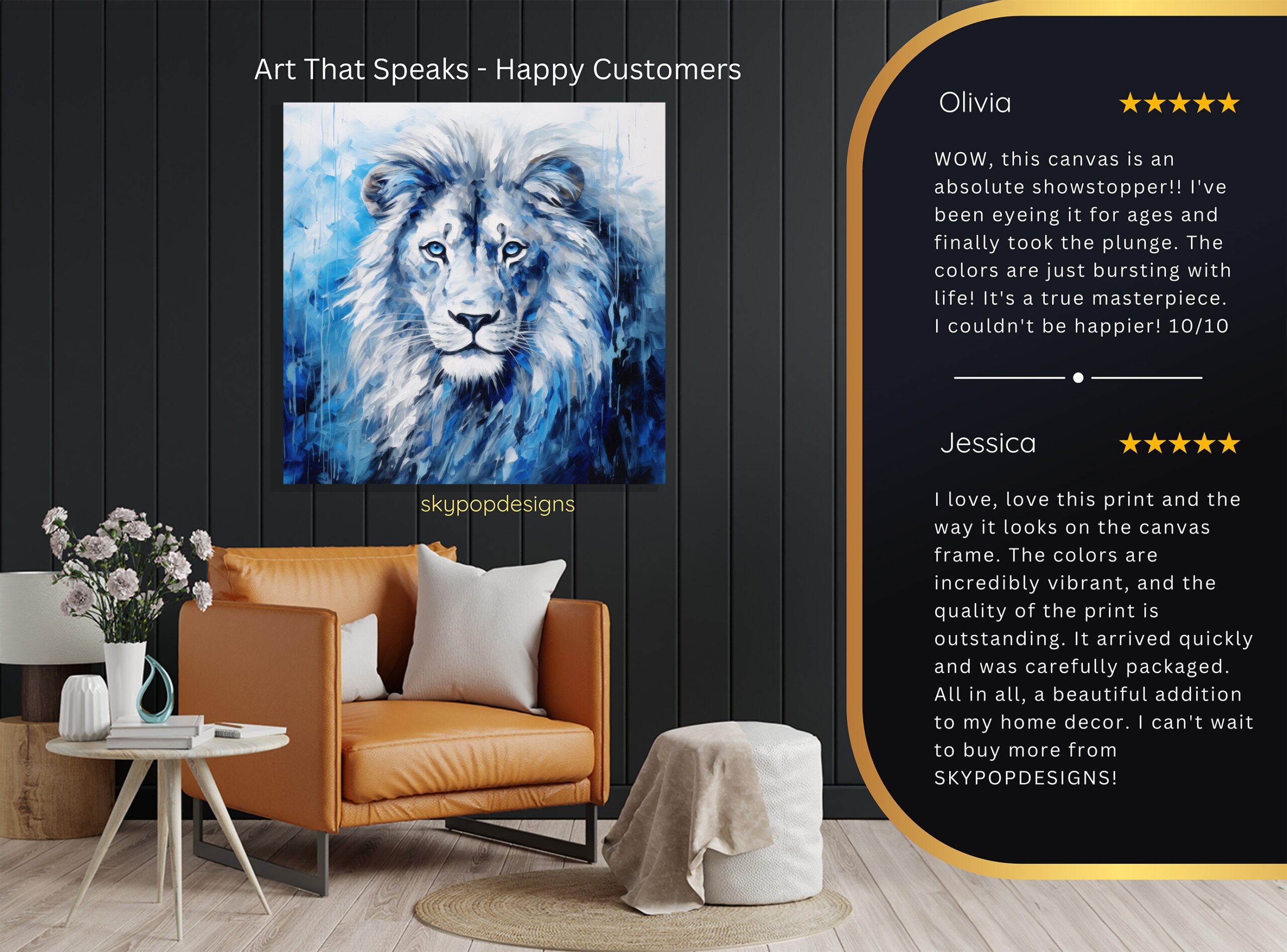 At SKYPOPDESIGNS, we specialize in high-quality canvas and poster prints designed to bring sophistication and style to your space. Please note that our designs are not created with 3D textures or as original oil, acrylic, or watercolor paintings; they are instead HD reproductions of original artwork. This approach allows us to offer these visually stunning pieces at competitive prices, ensuring you receive top-tier, maintenance-free art that’s easy to enjoy.
