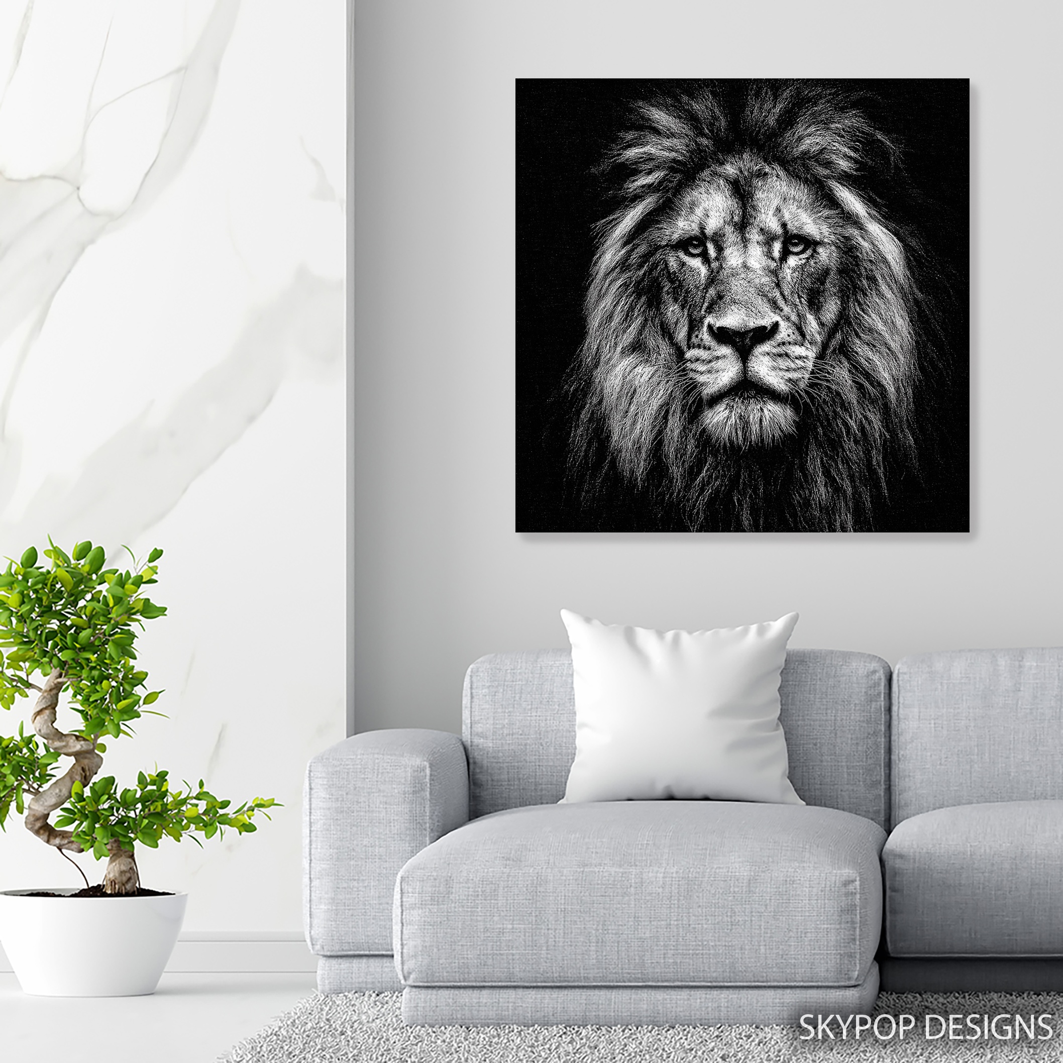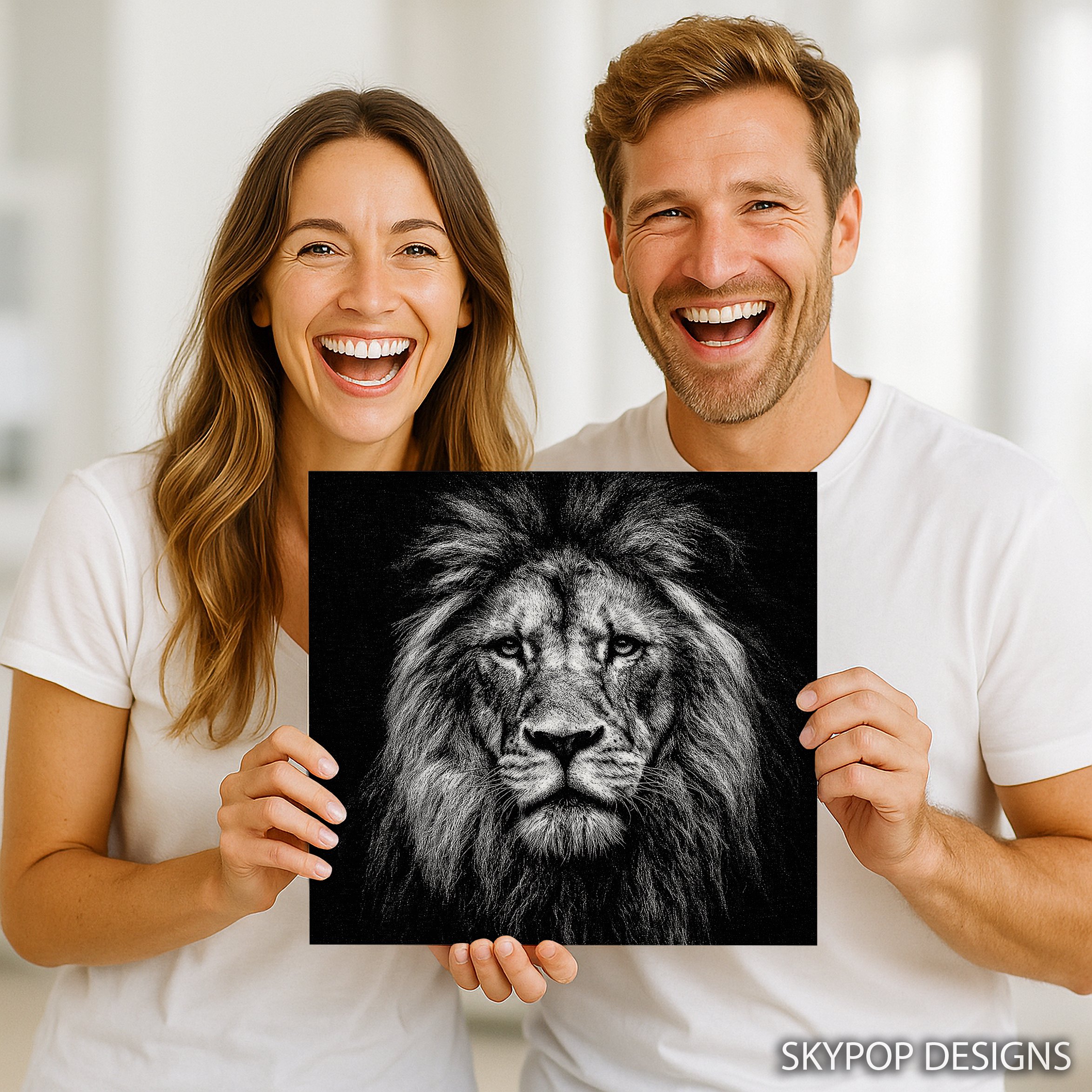 Make a bold statement with this striking lion canvas wall art, featuring an intense close-up portrait in stunning black and white. This powerful poster captures the majestic essence of the king of the jungle, with every intricate detail of the lion’s mane and piercing gaze brought to life. Perfect for modern living room wall decor or as an eye-catching centerpiece in a minimalist office space, this canvas art commands attention and respect. The high-contrast monochrome palette adds a timeless, sophisticated touch to any room, while the lion’s intense expression evokes a sense of strength and determination. Ideal for nature enthusiasts or those looking to add a touch of wild elegance to their home or workspace. The fine detail and texture of the lion’s fur create a sense of depth and realism, making this wall art a conversation starter in any setting. Whether displayed as a standalone piece or as part of a gallery wall, this lion portrait elevates your decor with its striking presence. Suitable for various room styles, from rustic bedrooms to contemporary hallways, this versatile artwork adapts seamlessly to different interior designs. High-quality printing ensures every whisker and glint in the lion’s eye is captured with precision, bringing the raw power of nature into your living space. Transform your walls and inspire strength in your daily life with this captivating lion wall art today.