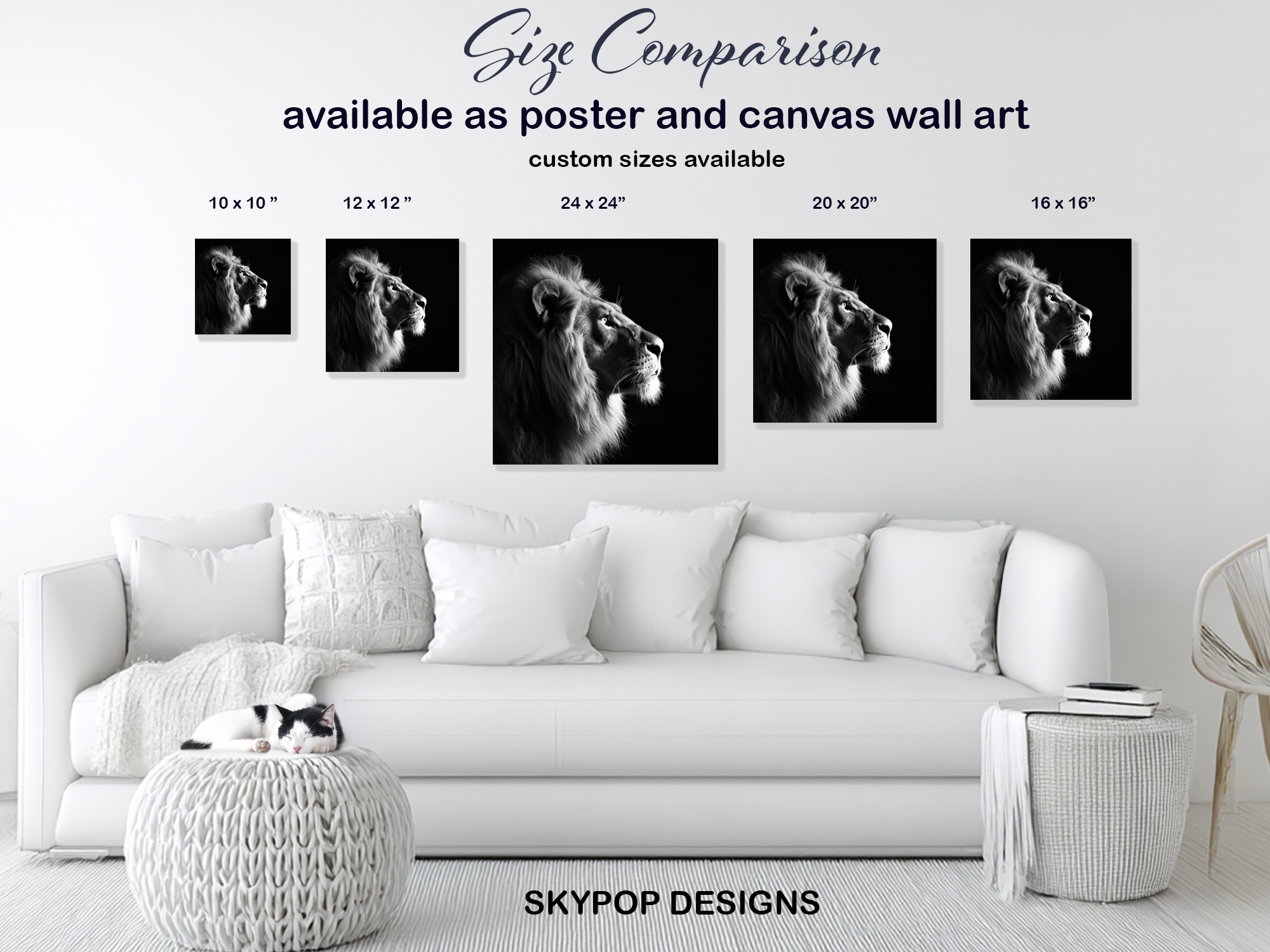 Keywords: Lion Wall Art, Black and White Art, Canvas Print, Animal Portrait, Contemporary Art, Modern Decor, Minimalist Art, Living Room Art, Bedroom Wall Art, Office Decor, Entryway Art, Wildlife Art, Nature Art, Majestic Lion, Regal Artwork, Statement Piece, Home Decor, Black White Canvas, Lion Poster, Glam Decor, Sophisticated Art, Wild Elegance, Powerful Image, Strength Art, Confidence Art, Wildlife Enthusiast Gift, Contemporary Design, Monochromatic Art, High-Contrast Art, Inspirational Art