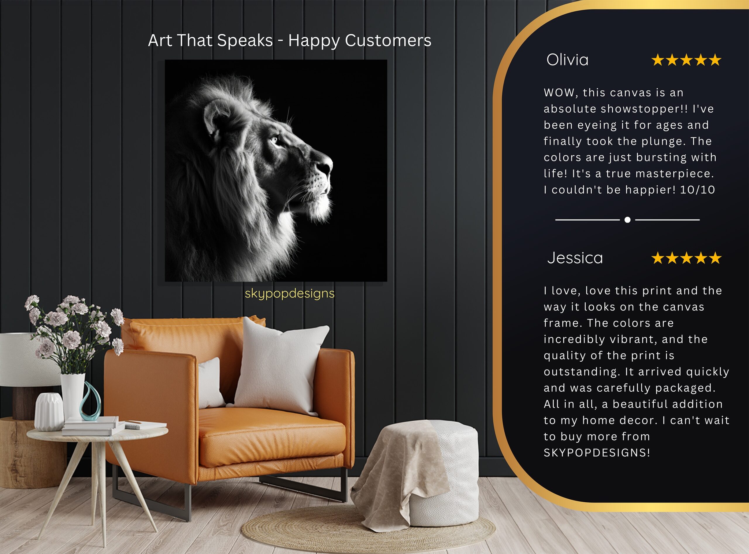 At SKYPOPDESIGNS, we specialize in high-quality canvas and poster prints designed to bring sophistication and style to your space. Please note that our designs are not created with 3D textures or as original oil, acrylic, or watercolor paintings; they are instead HD reproductions of original artwork. This approach allows us to offer these visually stunning pieces at competitive prices, ensuring you receive top-tier, maintenance-free art that’s easy to enjoy.