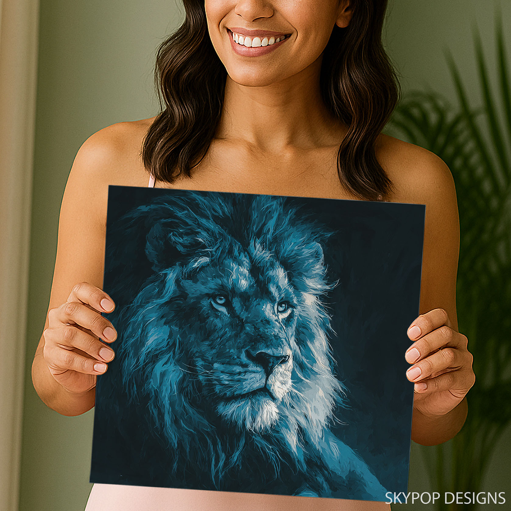 Transform your space with this powerful lion canvas wall art, a striking piece that embodies strength and regality. This captivating poster or canvas wall art showcases a majestic lion in a contemporary style, perfect for adding a sophisticated touch to modern living rooms or creating an inspiring atmosphere in your office. The bold blue and teal hues against a dark background create a dramatic visual impact, making this animal art a true statement piece. Ideal for minimalist or glam decor styles, this lion artwork brings an element of untamed beauty and confidence to your home. The intense blue eyes and flowing mane are rendered with visible brushstrokes, adding texture and depth to the composition, ensuring this canvas wall art is a focal point in any setting. This versatile wall art also suits entryway decor, making a bold first impression on guests. Consider this stunning lion print as a remarkable gift for birthdays, holidays, or housewarmings, celebrating the spirit of the wild. High-quality printing guarantees vivid colors and intricate details, making this poster a lasting addition to your art collection. Elevate your interiors with wall art that inspires courage and commands attention. Discover the captivating allure of this contemporary lion canvas wall art and bring the spirit of the king of the jungle into your home today.