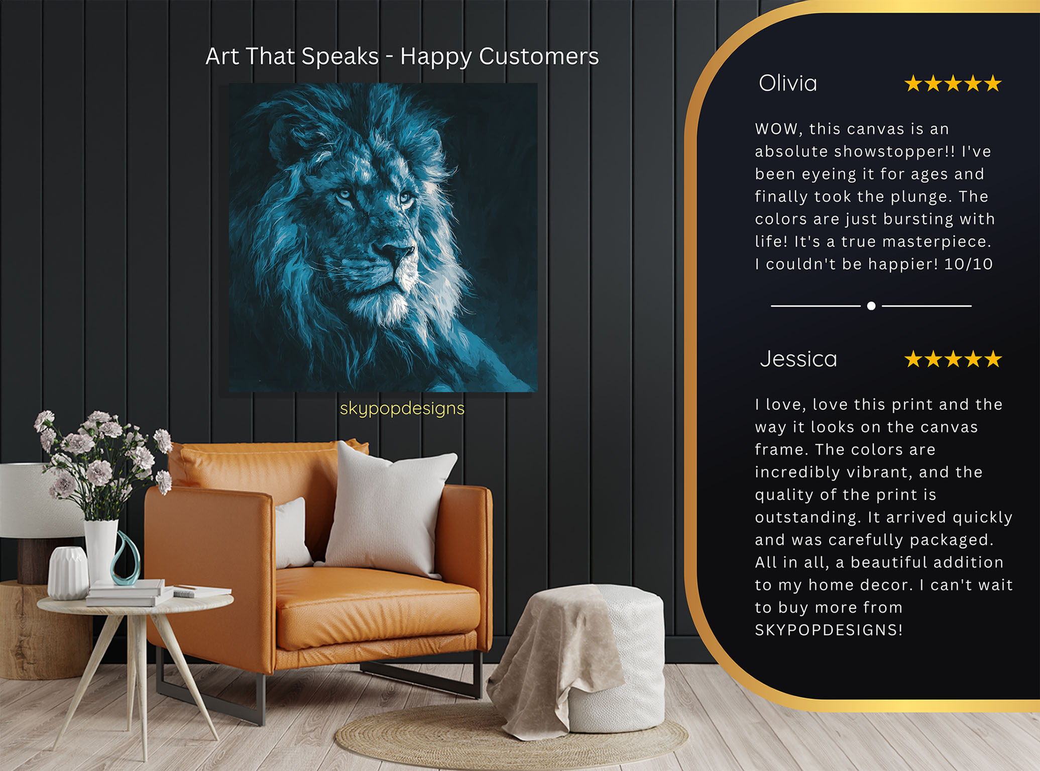At SKYPOPDESIGNS, we specialize in high-quality canvas and poster prints designed to bring sophistication and style to your space. Please note that our designs are not created with 3D textures or as original oil, acrylic, or watercolor paintings; they are instead HD reproductions of original artwork. This approach allows us to offer these visually stunning pieces at competitive prices, ensuring you receive top-tier, maintenance-free art that’s easy to enjoy.