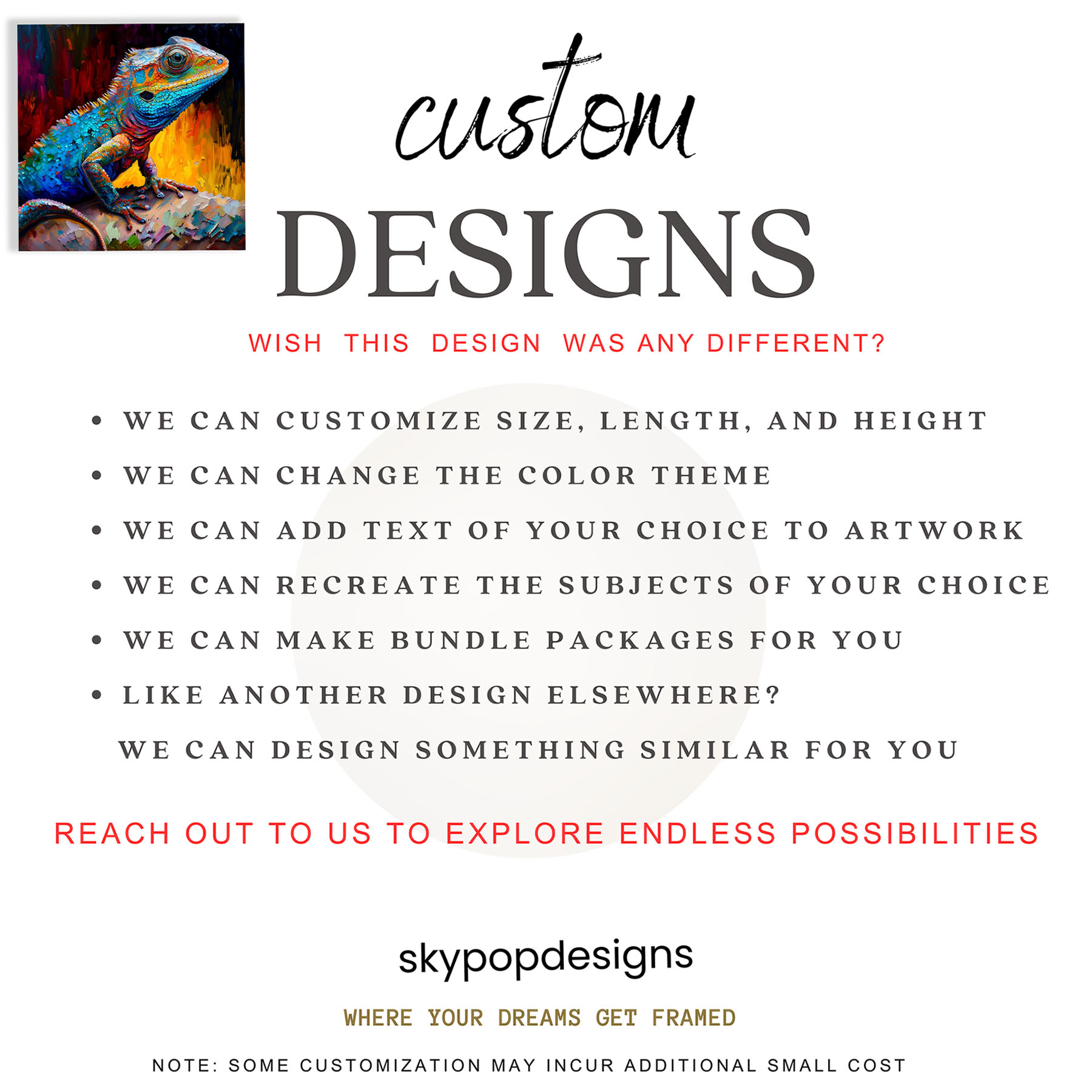 At SKYPOPDESIGNS, we specialize in high-quality canvas and poster prints designed to bring sophistication and style to your space. Please note that our designs are not created with 3D textures or as original oil, acrylic, or watercolor paintings; they are instead HD reproductions of original artwork. This approach allows us to offer these visually stunning pieces at competitive prices, ensuring you receive top-tier, maintenance-free art that’s easy to enjoy.
