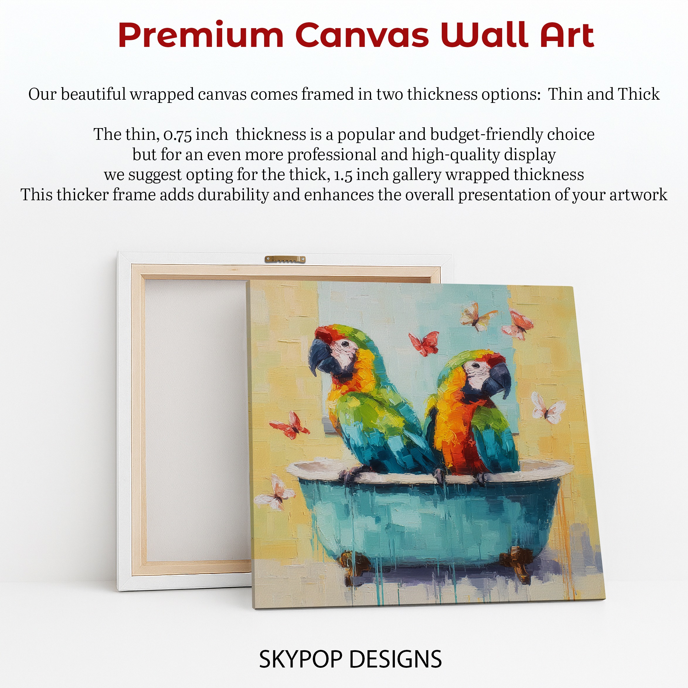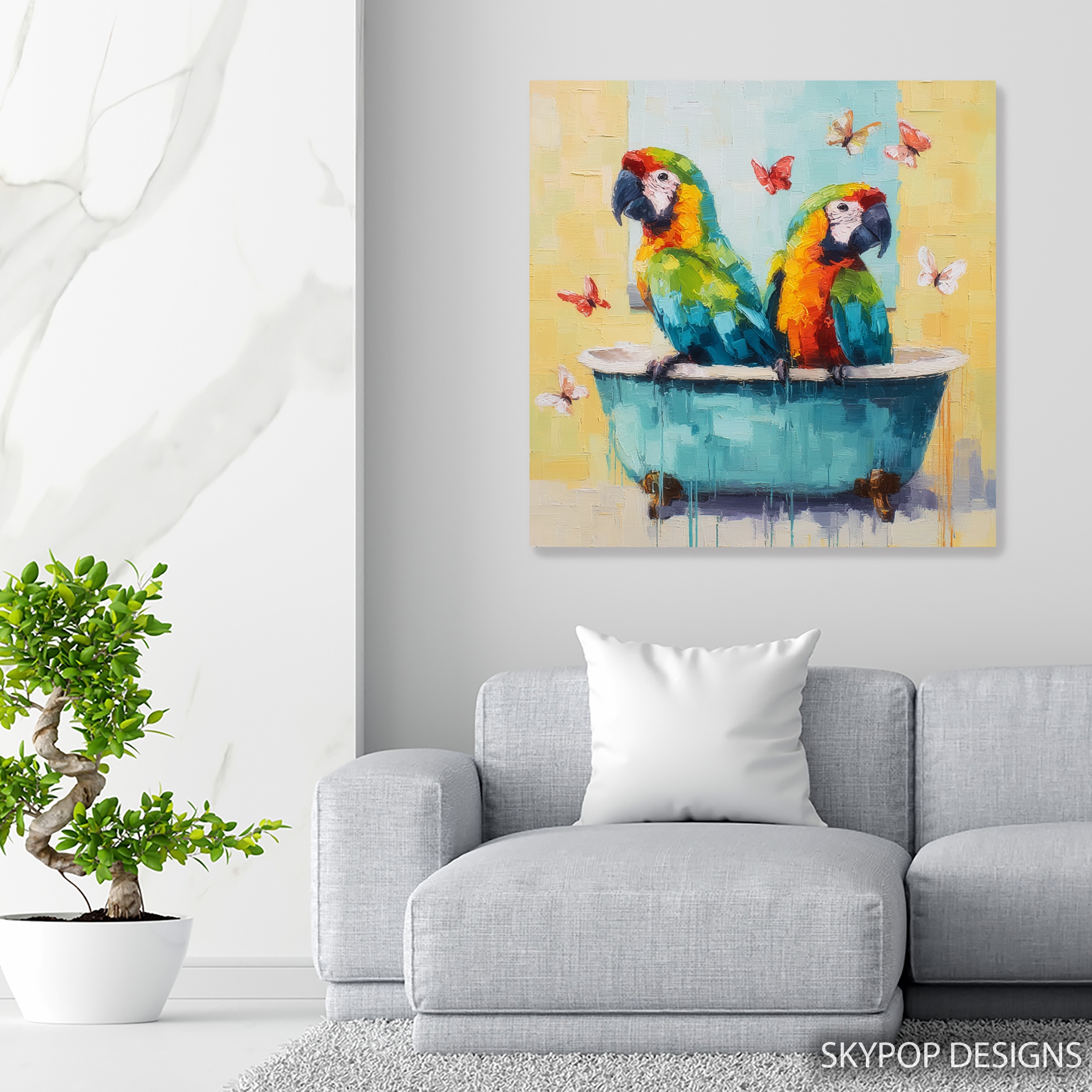 Keywords: Macaw Wall Art, Parrot Canvas, Animal Art, Whimsical Art, Bohemian Decor, Modern Farmhouse, Teal Bathroom Art, Multicolor Art, Blue Yellow Art, Butterfly Art, Tropical Wall Decor, Living Room Art, Children’s Room Art, Sunroom Decor, Abstract Parrot Art, Contemporary Art, Vintage Bathtub Art, Playful Art, Joyful Home Decor, Vibrant Wall Art, Bird Lover Gift, Animal Art Collector, Unique Wall Art, Canvas Poster, Home Decor Accent, Happiness Art, Wonder Art, Transitional Decor, Colorful Macaw, Nature Art