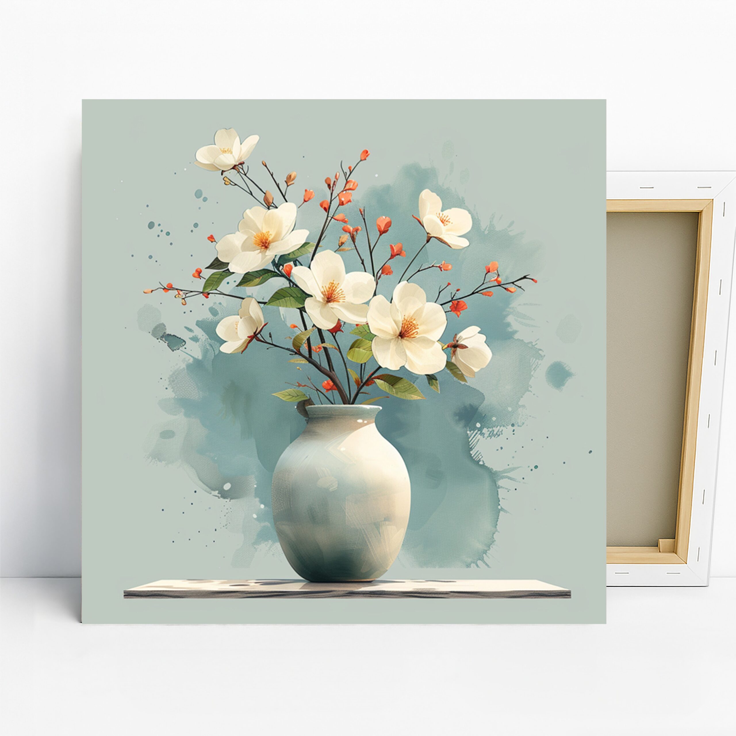 Brighten your home with this exquisite Magnolia canvas wall art, a stunning example of contemporary floral still life. This beautiful poster or canvas wall art brings the serene beauty of blooming magnolias into your living space. The delicate white petals and vibrant green leaves, set against a soft blue watercolor-style background, create a captivating focal point for any room. Perfect for modern living room wall decor, it also adds a touch of elegance to bedrooms or entryway spaces. The minimalist aesthetic of this floral artwork complements Scandinavian and modern interiors, creating a calming and airy atmosphere. Ideal for those seeking sophisticated wall art, this piece celebrates the timeless appeal of nature with a refined touch. The subtle color palette of white, green, and muted blue enhances tranquility and brings a refreshing natural element indoors. High-quality printing on this canvas wall art ensures every petal and leaf is rendered with exquisite detail and clarity. This versatile poster is an ideal gift for housewarmings, birthdays, or any occasion where you want to offer a piece of lasting beauty. Elevate your home decor with this captivating Magnolia canvas art today, adding a splash of natural elegance and artistic grace to your walls.