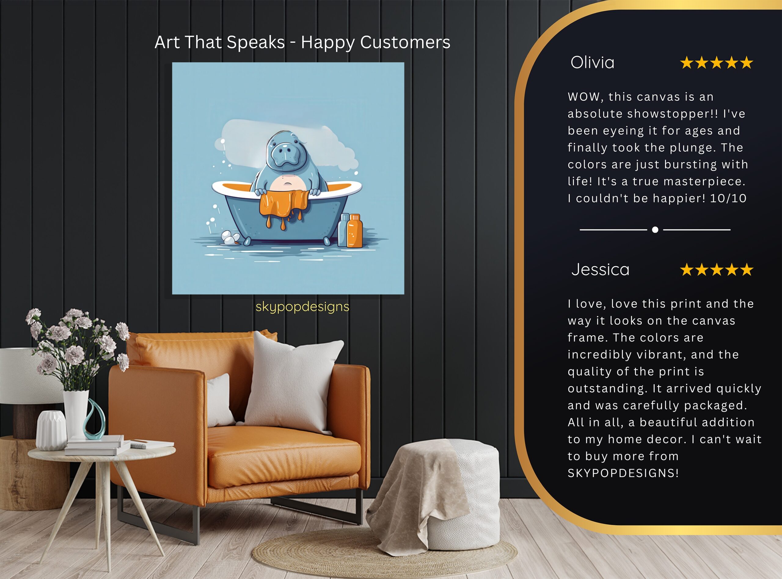 Keywords: Manatee Art, Whimsical Art, Animal Wall Art, Contemporary Art, Minimalist Decor, Modern Decor, Children’s Room Decor, Bathroom Art, Bedroom Art, Living Room Art, Blue Art, Orange Art, Multicolor Art, White Base Art, Manatee Poster, Canvas Wall Art, Bath Time Joy, Whimsical Illustration, Joyful Atmosphere, Playful Decor, Child’s Bathroom Art, Modern Living Room Art, Relaxing Art, Calm Art, Birthday Gift, Housewarming Gift, Unique Home Decor, Versatile Art, Lighthearted Fun, Coastal Decor