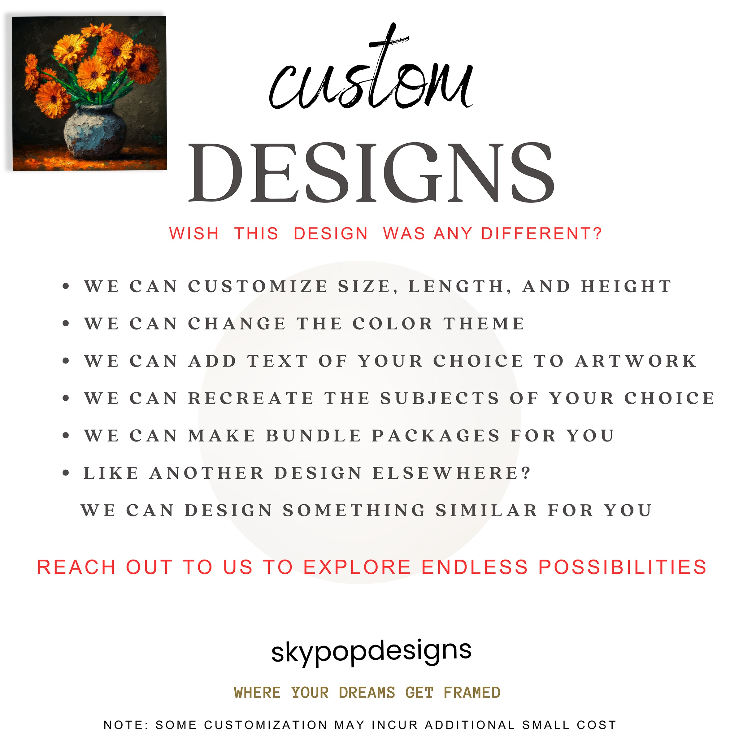 At SKYPOPDESIGNS, we specialize in high-quality canvas and poster prints designed to bring sophistication and style to your space. Please note that our designs are not created with 3D textures or as original oil, acrylic, or watercolor paintings; they are instead HD reproductions of original artwork. This approach allows us to offer these visually stunning pieces at competitive prices, ensuring you receive top-tier, maintenance-free art that’s easy to enjoy.