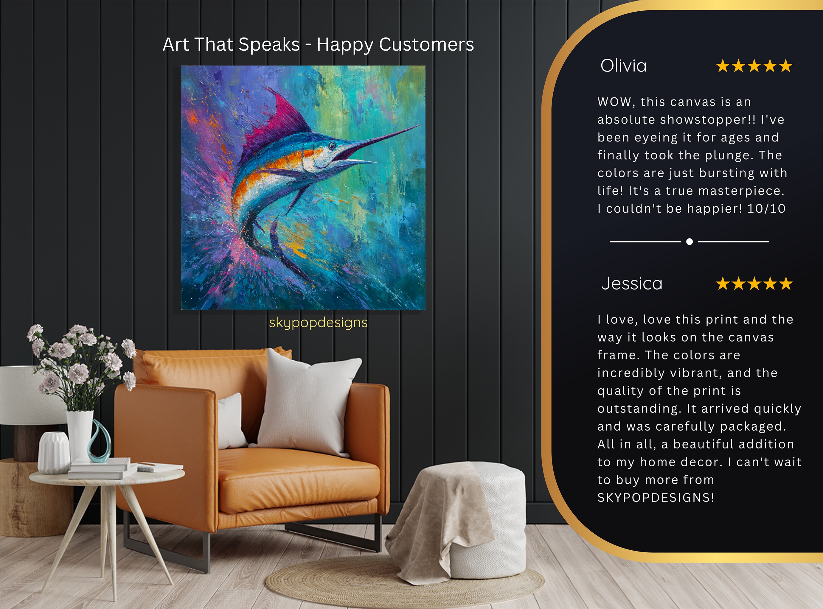At SKYPOPDESIGNS, we specialize in high-quality canvas and poster prints designed to bring sophistication and style to your space. Please note that our designs are not created with 3D textures or as original oil, acrylic, or watercolor paintings; they are instead HD reproductions of original artwork. This approach allows us to offer these visually stunning pieces at competitive prices, ensuring you receive top-tier, maintenance-free art that’s easy to enjoy.