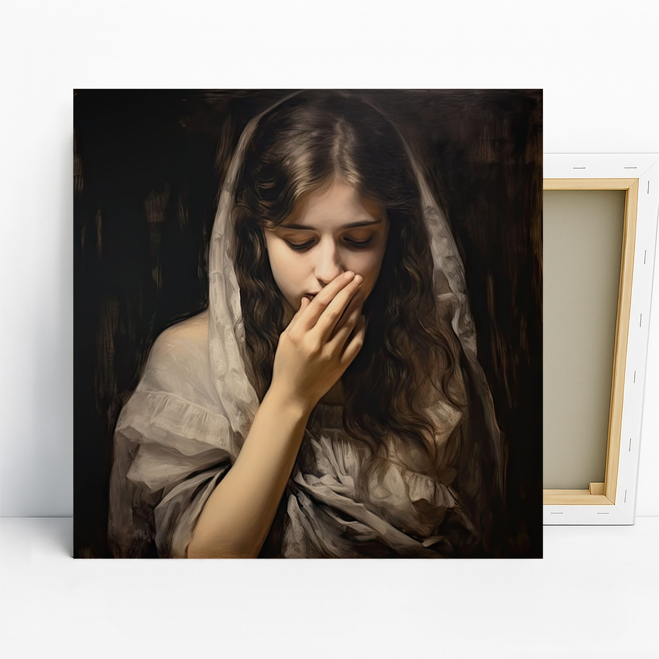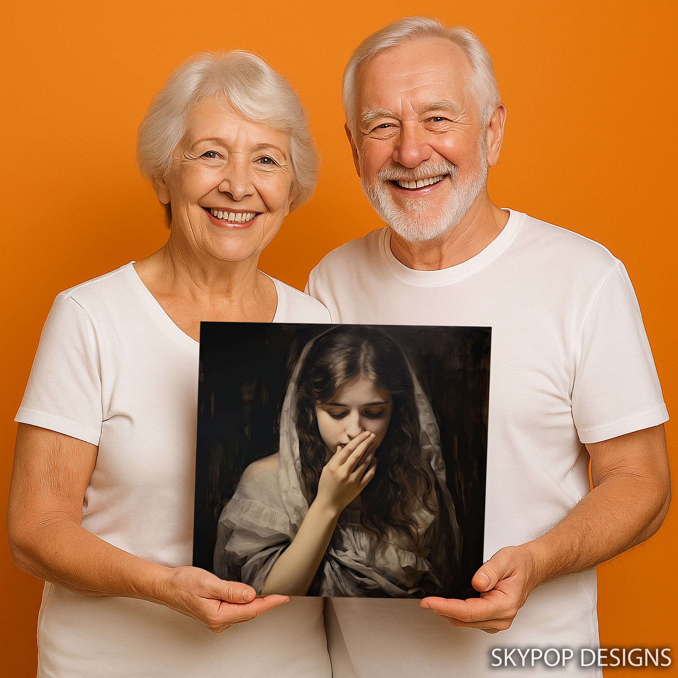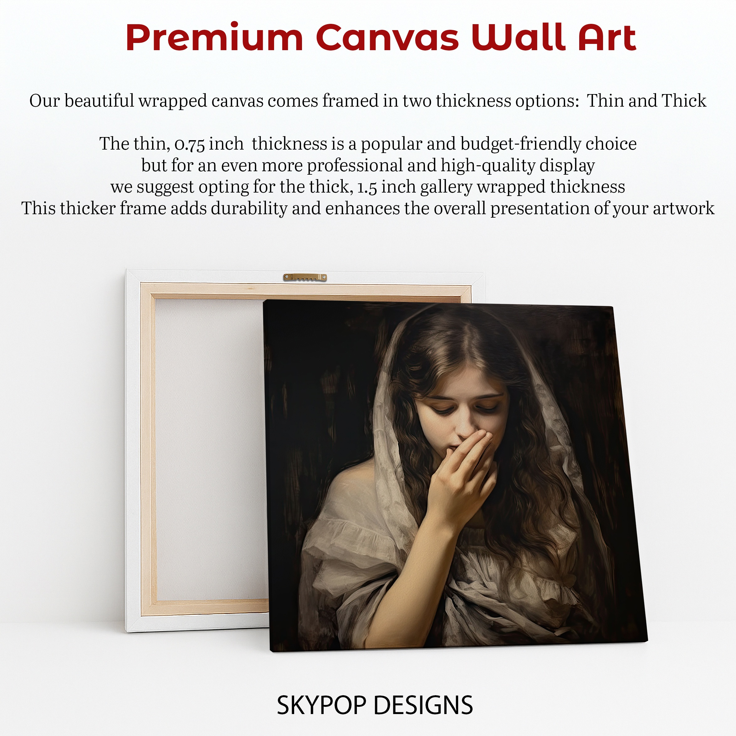 Keywords: Melancholy Portrait Art, Figurative Canvas Wall Art, Classical Art Print, Contemporary Art Decor, Traditional Home Decor, Victorian Style Art, Glam Decor Accents, Bedroom Wall Art, Living Room Artwork, Entryway Decor Piece, Dining Room Art, Black and White Art, Grey Tone Artwork, Brown Accent Art, Woman Portrait Canvas, Veil Portrait Art, Quiet Contemplation Art, Moody Atmosphere Decor, Introspection Art Style, Calm Interior Design, Elegant Wall Hanging, Statement Art Piece, Gallery Wall Art, Accent Wall Decor, Art Lover Gift, Housewarming Present, Birthday Gift Idea, Sophisticated Home Art, Timeless Wall Poster, Emotional Resonance Art